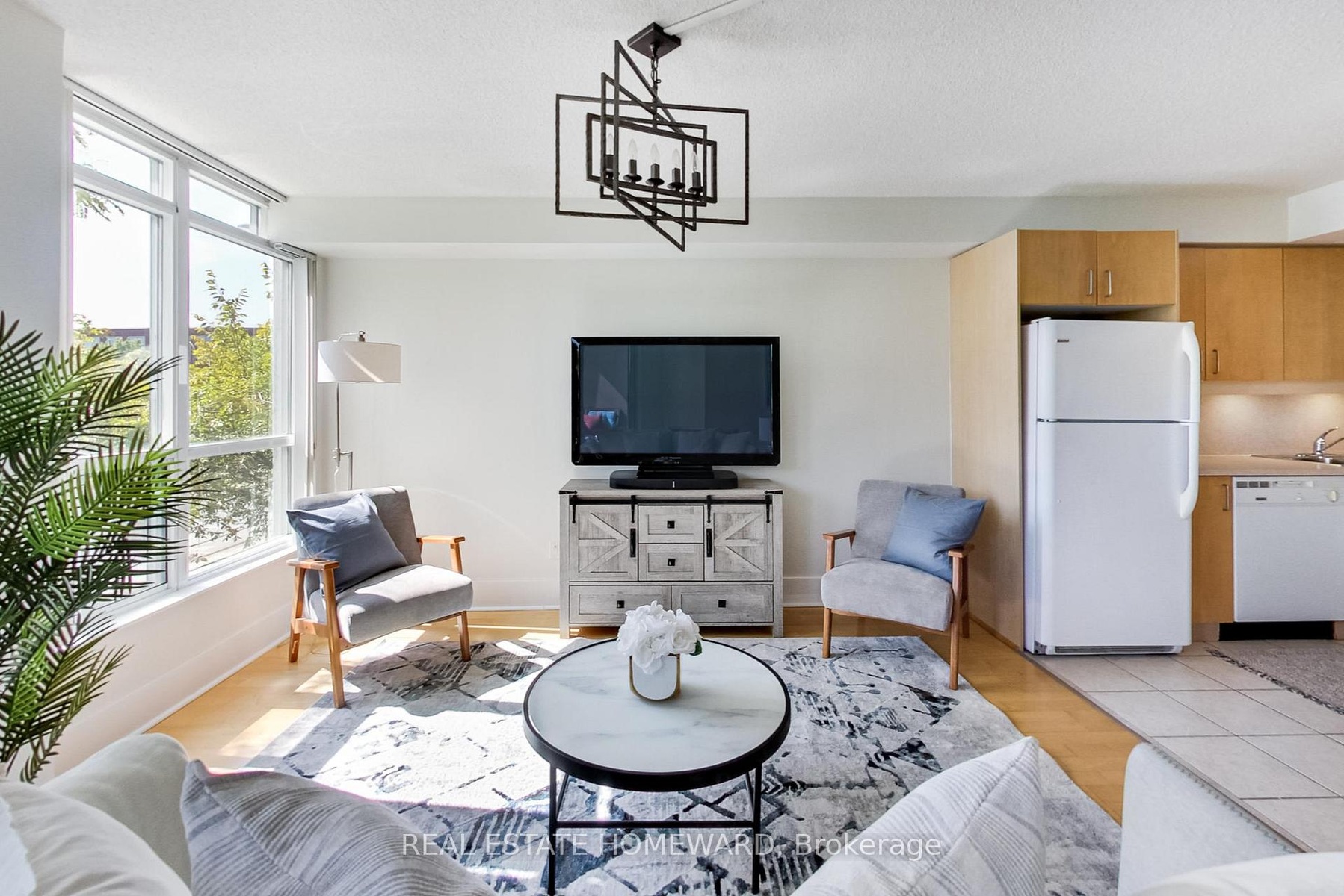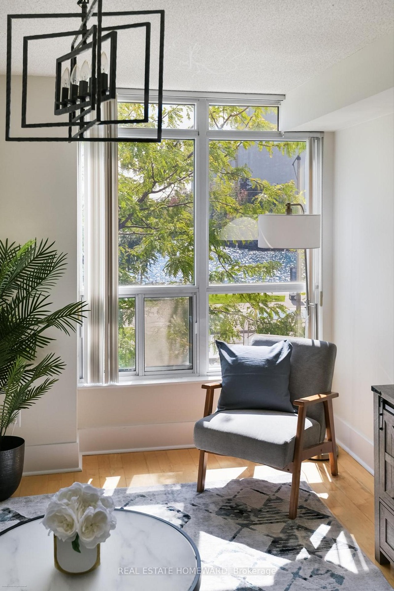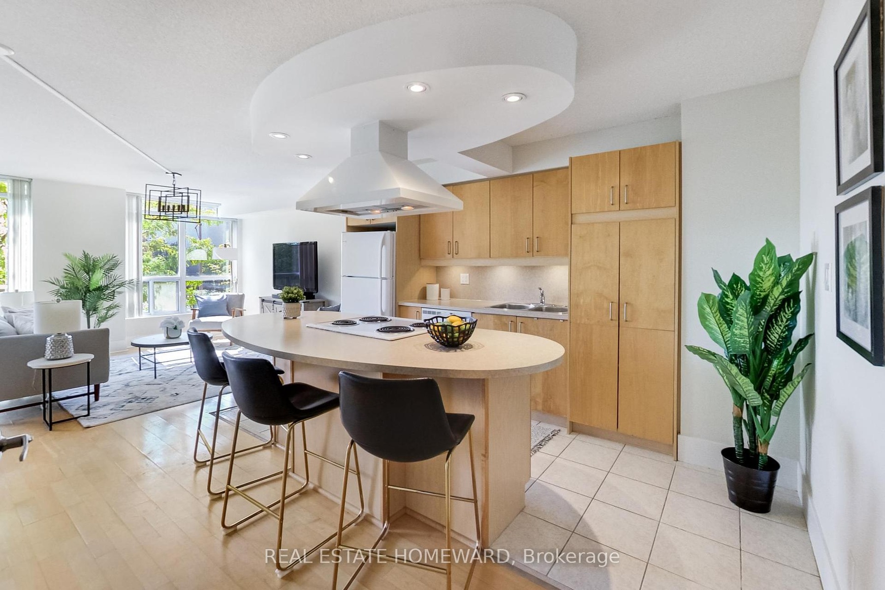 DescriptionLive by the Lake in this Highly Sought After, Mid-Rise Boutique Building on the Waterfront. This Rarely Offered Layout is truly South-Facing with an unobstructed view of the Lake, park, trail. With an Open Concept, Bright + Spacious Floor Plan + Floor to Ceiling Windows along with a Spacious and Private Balcony, you'll love living here. The generous Primary Bedroom - King-Size Bed ready, has a spacious walk-in closet and entrance to Bath (note: Separate 2-piece for extra privacy). All rooms (kitchen/dining/living/bedroom have a great view). The privacy of the balcony is extra special (adding 66 sq ft of lifestyle space). The Unit also comes with 1 parking spot and 1 locker. What the Sellers (who have outgrown the space) love most about their UNIT: 1. View of the Lake. 2. Island in the Kitchen. 3. Large Bedroom. 4. Balcony is a good size. 5. Extra bathroom sink with a 2nd entrance through Bedroom. 6. Primary parking spot. 7. Easy access to the stairs. The LOCATION: 1. Water + TTC at our doorstep with the Streetcar having a designated lane that goes right to Union. 2. Walking/Running/Cycling the waterfront trail. 3. Walking distance to Rogers Center, Scotiabank Arena, Bud Stage, King West, Water Taxis to the Island, Walk-in clinic next door, Billy Bishop Airport, 3 grocery stores + Shoppers Drug Mart. 3. The pedestrian bridge in Garrison park makes it very easy to access numerous neighbourhoods including Queen West, the Ossington strip + Trinity Bellwoods. Liberty Village and the exhibition grounds are also within walking distance. What they love about the CONDO BUILDING: 1. Clean, well-managed + well-maintained. 2. The Rooftop BBQ's + space for lounging/entertaining with an unobstructed view of the Lake + the Toronto city skyline. 3. The Party Room is a great party/event/work from home space. 4. The gym is welcoming, has updated equipment + includes a sauna + steam room. 5. 24-Hour knowledgeable concierge + security is a big perk. 6. Visitor ParkingVirtual Tour: https://real.vision/550-queens-quay-201?o=uAmenities- Bike Storage