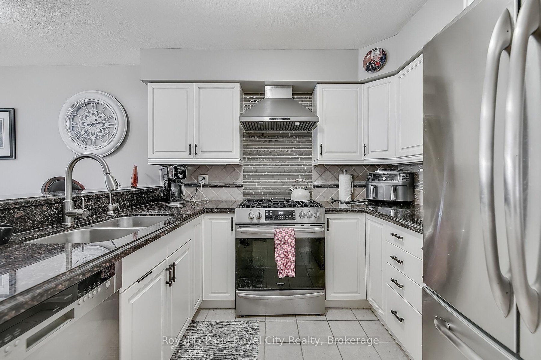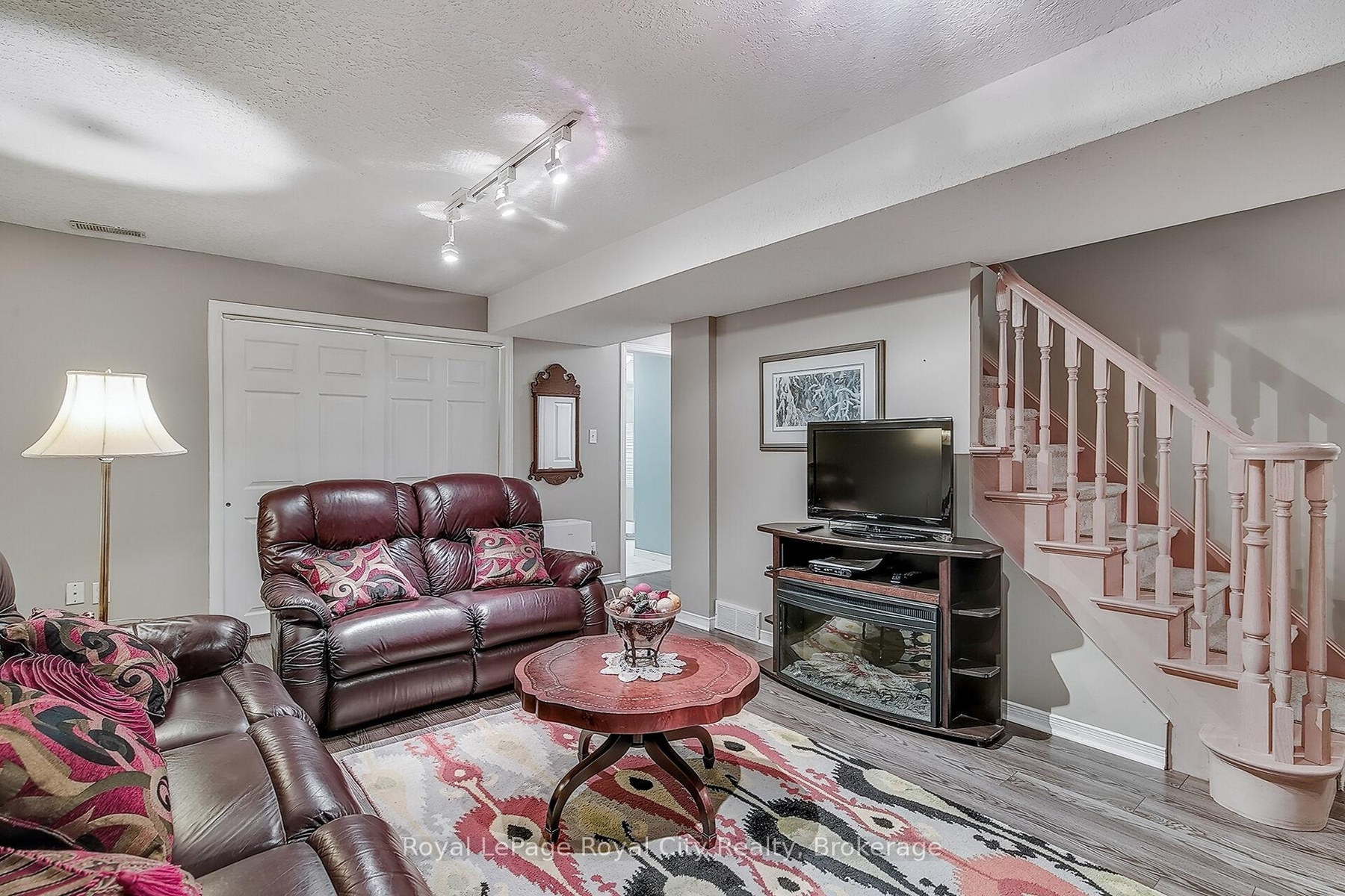 DescriptionWelcome to The Cottages, a friendly, private, highly desirable enclave that has become a favourite for many. Location is everything, and this home offers the perfect blend of convenience and comfort, just minutes from all the amenities Guelphs south end has to offer. Pride of ownership shines throughout this spacious three-bedroom plus den, 3.5-bathroom home. The bright and inviting living room welcomes you with soaring ceilings, while the updated kitchen features granite countertops, a stylish renovation, and overlooks a warm and cozy family room complete with fireplace. A bonus 3 season sunroom is a great place to start your morning coffee or wind down with a good book at the end of the day. The primary suite is a true retreat, boasting a completely updated ensuite with a fabulous walk-in glass shower. Solid oak hardwood flooring has been added to both the main and upper levels, giving the home a timeless, elegant feel. Freshly painted and move-in ready, every detail has been carefully maintained. Additional highlights include: Main floor laundry; Two-car garage; Fully finished basement with family room, bedroom, three-piece bath, and generous storage; New granite countertops in both kitchen and baths; Low condo fees that cover everything from the drywall out; Plenty of visitor parking. With its thoughtful updates, inviting layout, and unbeatable location, this home offers the low-maintenance lifestyle you've been waiting for without compromise.Amenities- Central Vacuum