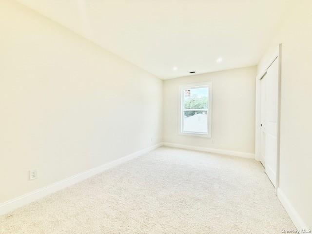 - Unfurnished bedroom with light carpet, a closet, and recessed lighting