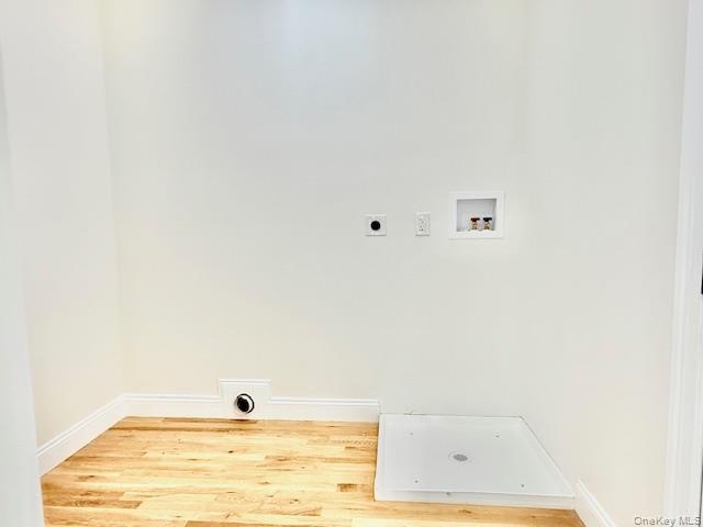 - Laundry area featuring light wood finished floors, hookup for an electric dryer, and washer hookup