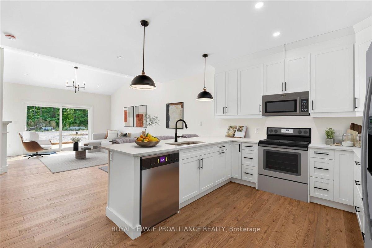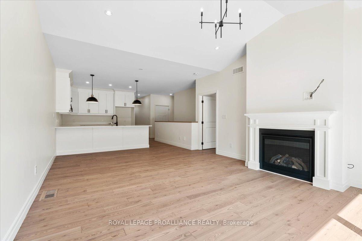 Step into this BRAND NEW custom, 2-bedroom, 2-bathroom townhouse, thoughtfully designed for everyday ease. The main level showcases hardwood flooring throughout, airy vaulted ceilings, a cozy natural gas fireplace, and stylish hardware and lighting that highlight the bright and welcoming layout. The kitchen features quartz countertops, tasteful cabinetry and modern finishes, with the option of an appliance package for added convenience. Patio doors open to a rear deck, an ideal spot for morning coffee or evening unwinding. The primary bedroom features a well appointed ensuite and luxurious walk in closet. while the convenience of main floor laundry makes single-level living a breeze. An attached one-car garage with inside entry and a paved driveway provide everyday practicality. The full unfinished basement includes a rough-in for a future bathroom, along with plenty of potential for additional living space or storage. Located within walking distance to schools, shops, the medical center, and local amenities, this home delivers a balanced mix of style and function perfect for first-time buyers, downsizers, or anyone seeking a simplified lifestyle.