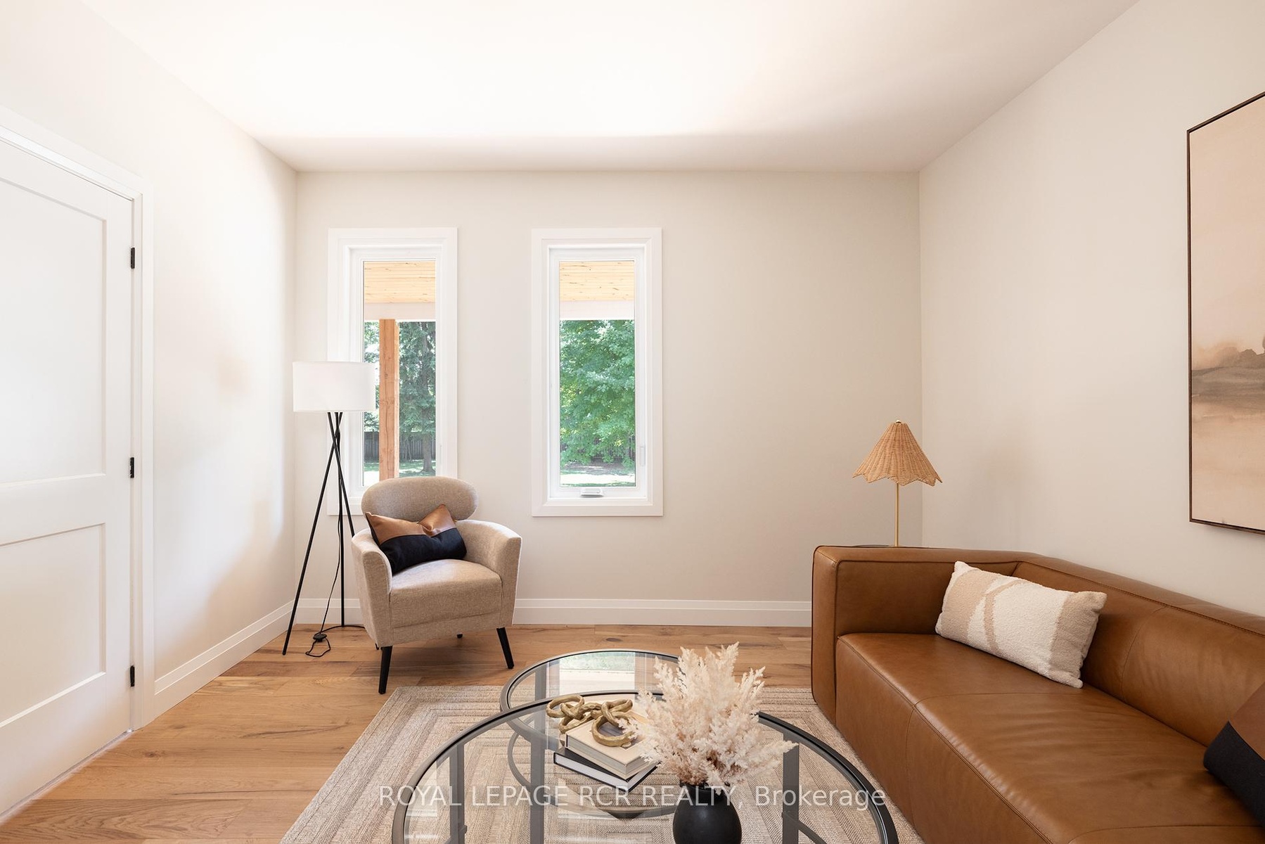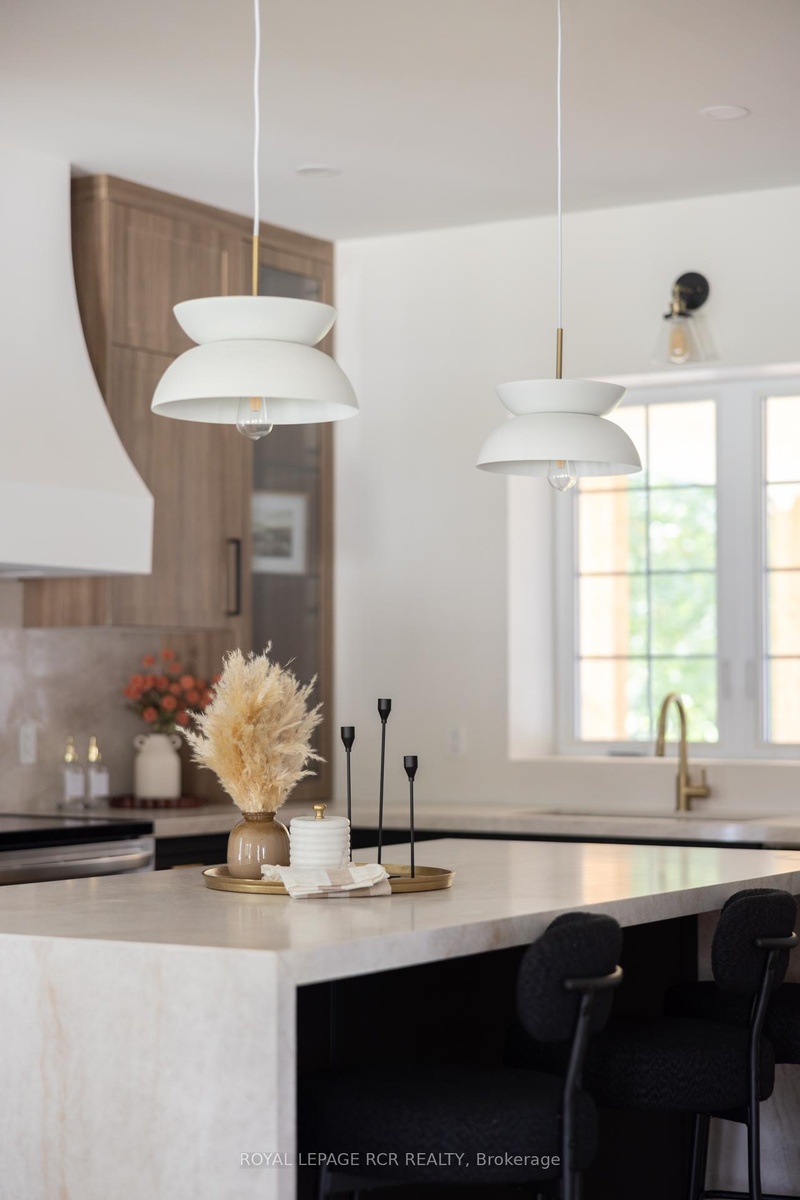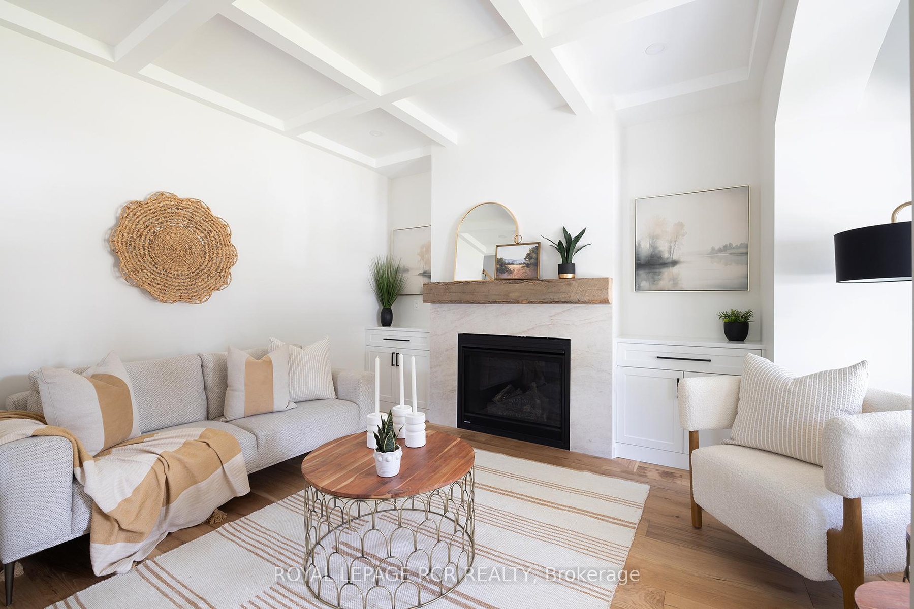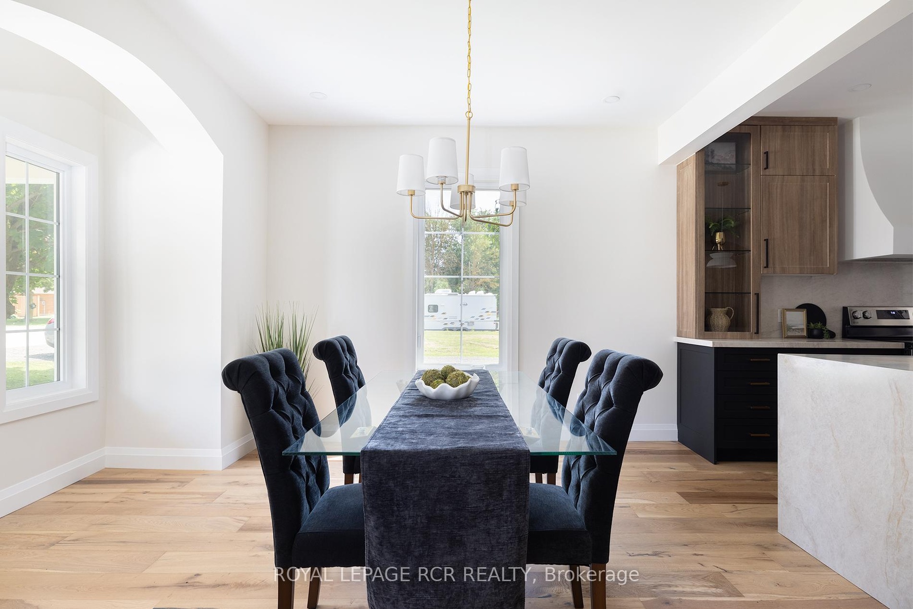 Nestled on an expansive lot in downtown Arthur, this exquisite 4 bedroom, 3 bathroom home has undergone a complete transformation, blending classic architecture with elevated modern finishes. The main level impresses with wide-plank hardwood flooring and a light-filled living room anchored by a gas fireplace clad in Taj Mahal quartz, framed by large windows and a coffered ceiling. The adjacent open concept kitchen and dining area is a showpiece of design, featuring an oversized centre island with a waterfall quartz countertop and breakfast bar, pendant lighting, a custom plaster range hood, pot lighting, and full-height Taj Mahal quartz backsplash and counters that carry the stones elegant detailing throughout. Arched windows throughout the principal rooms add a graceful architectural touch, while a beautifully appointed mudroom at the rear of the home offers built-in storage and striking herringbone brick tile underfoot. A versatile main floor room provides the option for a family room or fifth bedroom, complemented by a stylish 4 piece bathroom and convenient main floor laundry. The upper level is equally impressive. The primary suite offers a walk-through closet and an elegant 5 piece ensuite with a curbless walk-in tiled shower, stationary glass, soaker tub, and double vanity. Three additional bedrooms provide generous proportions and share a modern 4 piece main bath. Outdoors, a wraparound covered back deck extends your living space, ideal for entertaining or relaxing while overlooking the spacious, private yard. A brand new detached 1.5 car garage adds functionality to this truly turnkey property. From curated finishes to thoughtful functionality, every detail of this home has been carefully considered offering a rare opportunity to own a truly exceptional home in one of Arthur's most established neighbourhoods.