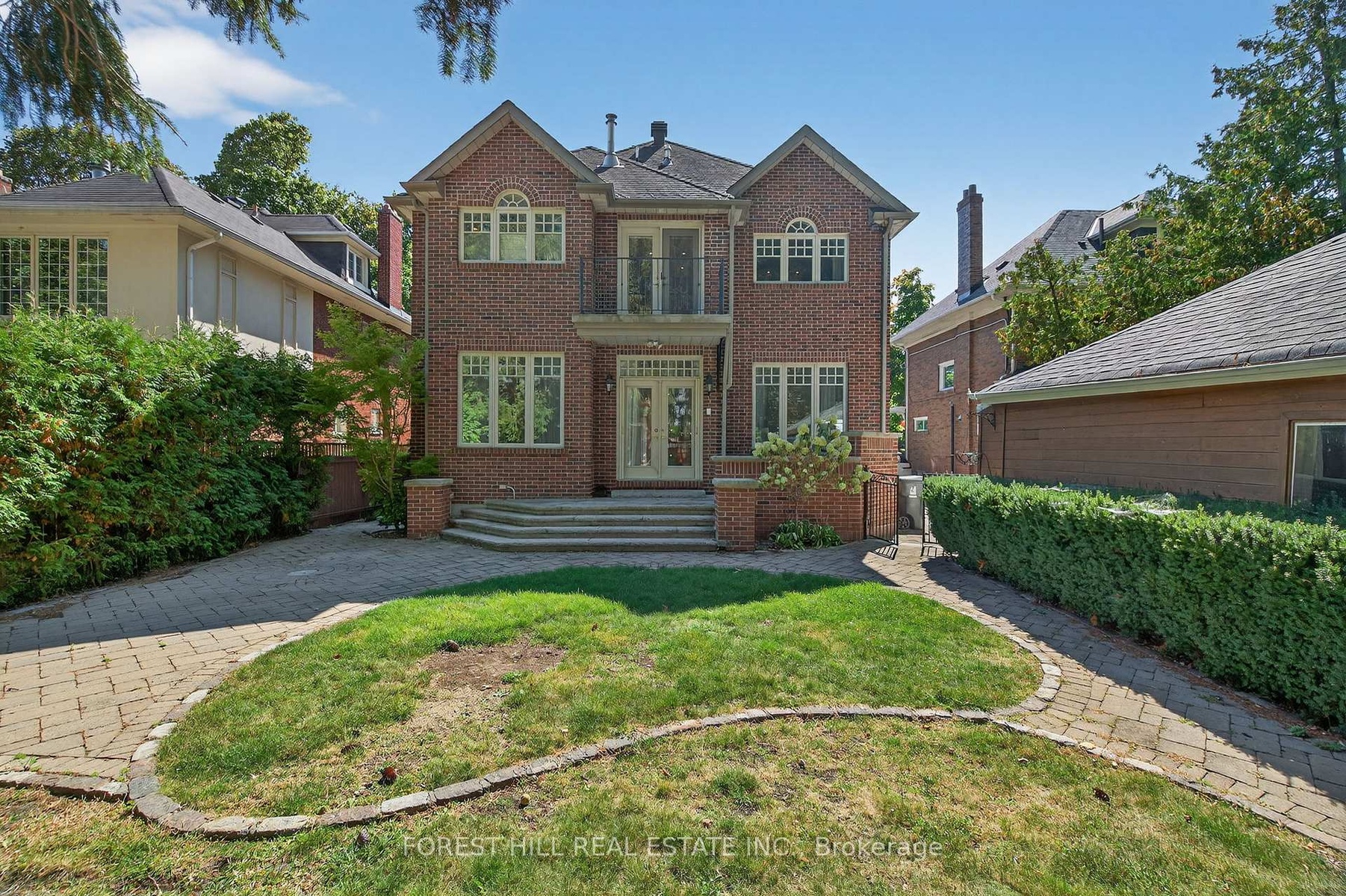 Locally known as "The Flag House" this one of a kind century home in Prestigious Lawrence Park North is a great opportunity for wise buyers. Majestic 2 1/2 story 6 bedroom 4 bath executive home with 3 story addition sitting on a 50X123 foot private lot with 4 car drive and 1 car garage. Modern custom kitchen with 9' ceilings, huge granite topped centre Island, generous breakfast area open to Family Room with gas fireplace, walkout to garden and outdoor kitchen with built in BBQ. Massive living room and separate wood paneled dining room with butler's servery and pantry. Elegant prime bedroom retreat with soaring cathedral ceilings fireplace, 5 pc ensuite with double sinks, separate shower and soaker tub walk-in closet and walkout to private balcony. 5 more bright and spacious bedrooms with tons of built ins, large closets & vaulted ceilings. Study nook on 3rd floor. Laundry chute on every floor. Walkup basement with separate entrance, spacious rec room 7th bedroom and office room. Fully fenced and landscaped lot with stone walkways and patios and custom built garden shed. This unique luxury residence is great value for wise buyers.