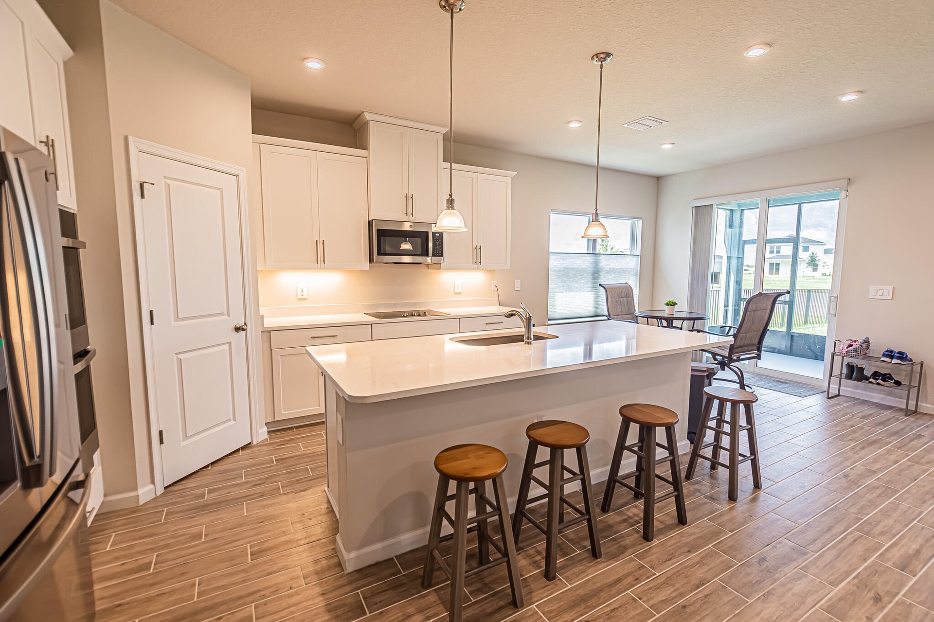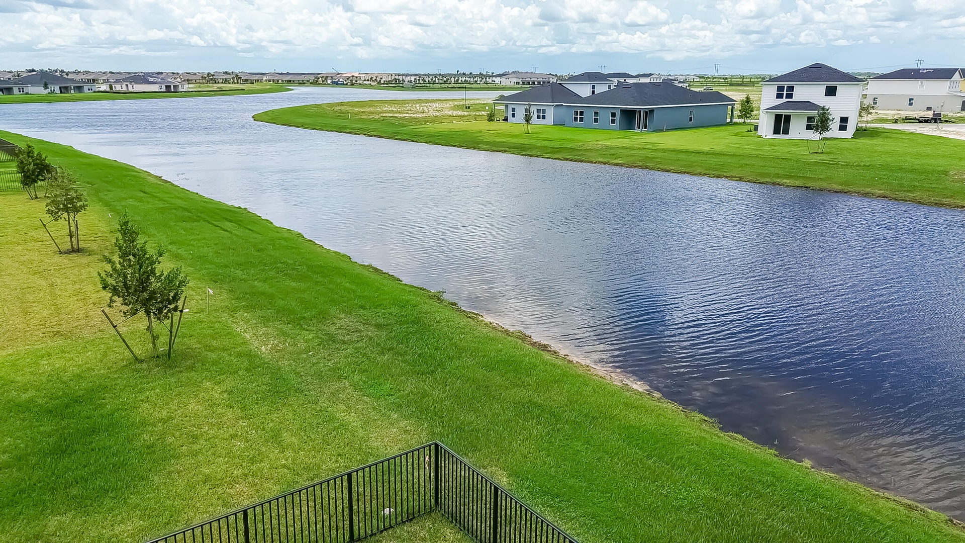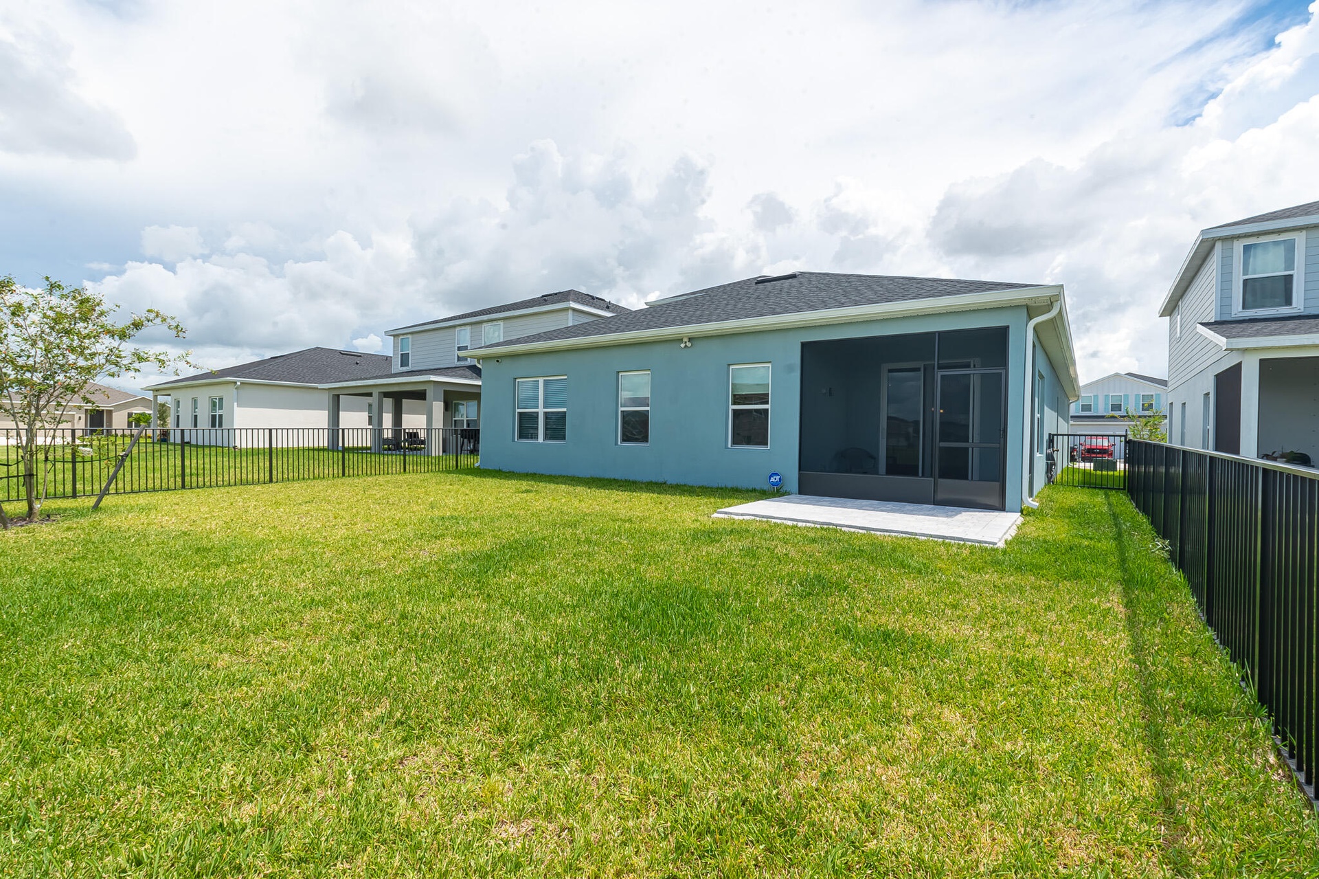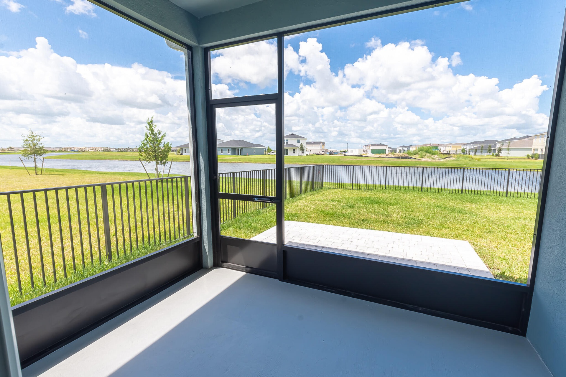 Central Park! this stunning 3-bedroom, 2.5/2 Den & 2nd floor Flex Room lakefront home is move-in ready. Upgraded kitchen features quartz countertops, a cooktop, double oven, and stainless steel appliances. The open-concept living area offers breathtaking lake views and abundant natural light. The flexible floor plan includes a home office with elegant French doors, easily convertible into a 4th bedroom. Upstairs, a versatile bonus room with a half bath provides endless possibilities. High impact windows & doors. Spacious fenced yard with screened and covered lanai are perfect for relaxation. Inspiration Park, a 10-acre recreation complex, offers community pool, dog park, play areas, low HOA dues. Near I-95, shops, dining, Tradition Towncenter, medical minutes away!