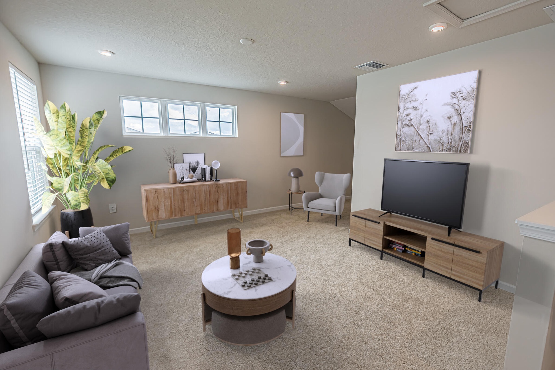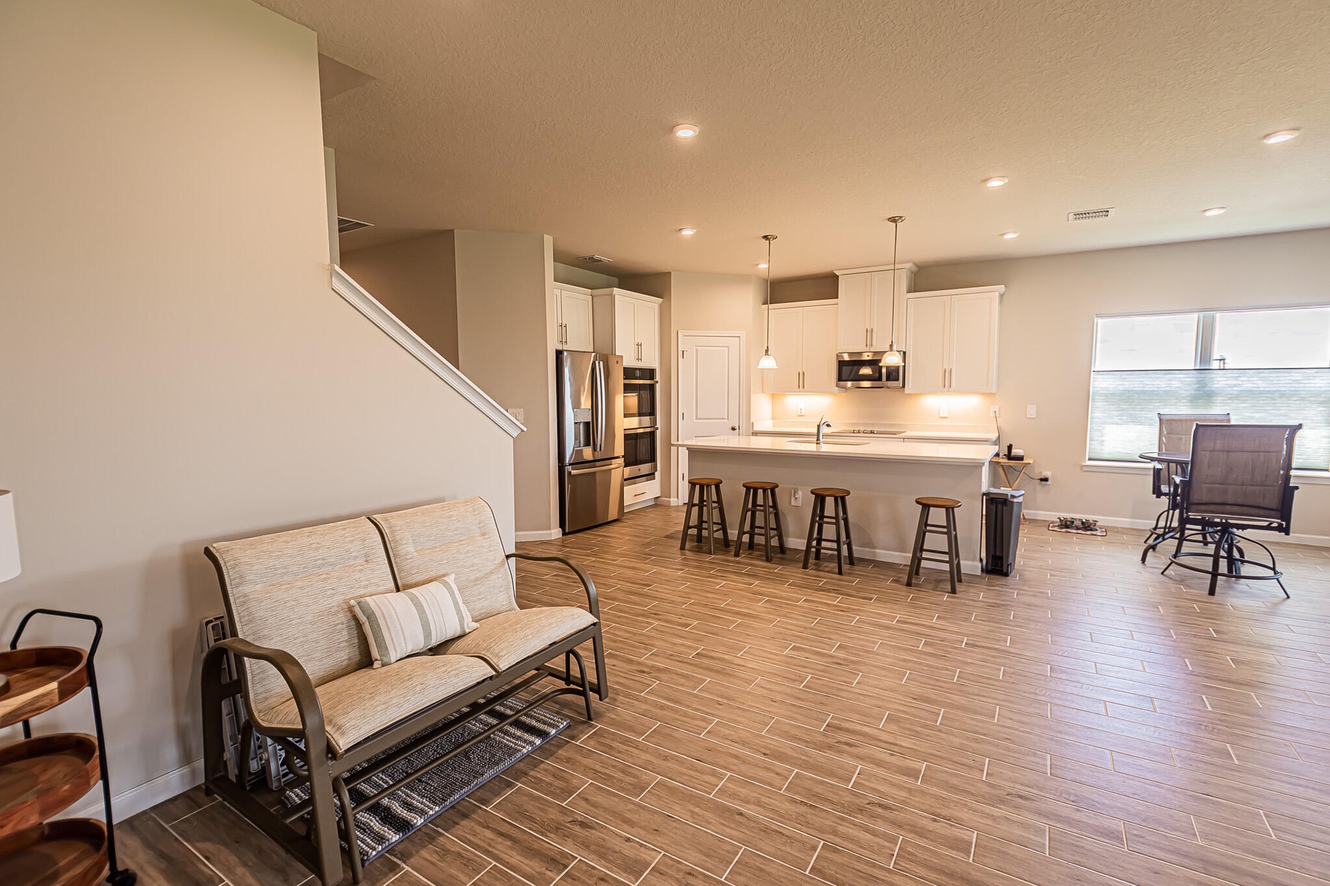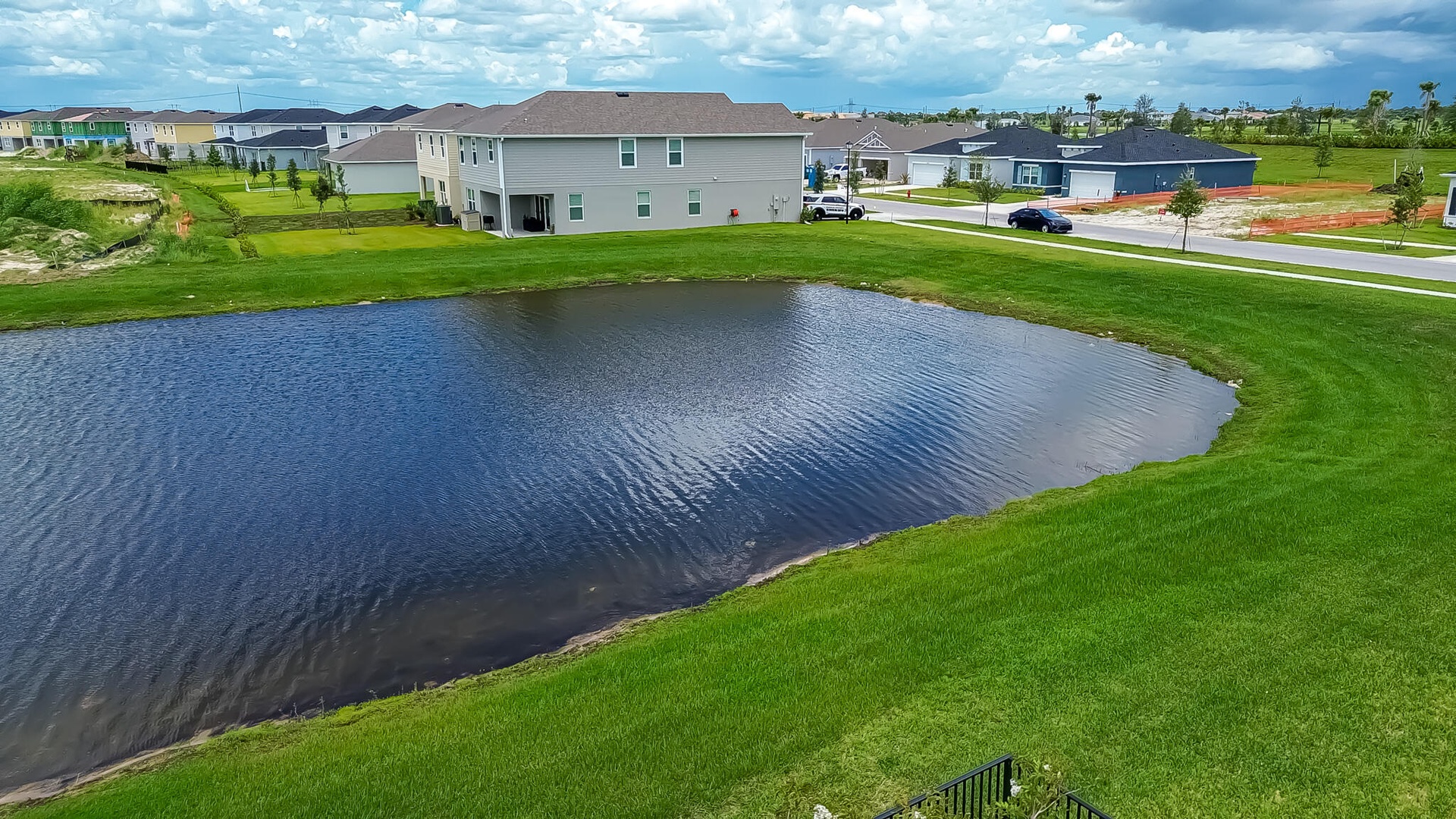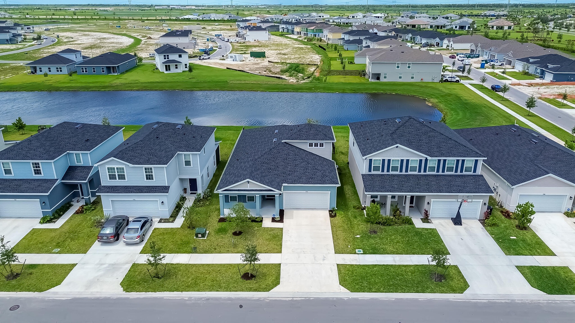 Central Park! this stunning 3-bedroom, 2.5/2 Den & 2nd floor Flex Room lakefront home is move-in ready. Upgraded kitchen features quartz countertops, a cooktop, double oven, and stainless steel appliances. The open-concept living area offers breathtaking lake views and abundant natural light. The flexible floor plan includes a home office with elegant French doors, easily convertible into a 4th bedroom. Upstairs, a versatile bonus room with a half bath provides endless possibilities. High impact windows & doors. Spacious fenced yard with screened and covered lanai are perfect for relaxation. Inspiration Park, a 10-acre recreation complex, offers community pool, dog park, play areas, low HOA dues. Near I-95, shops, dining, Tradition Towncenter, medical minutes away!