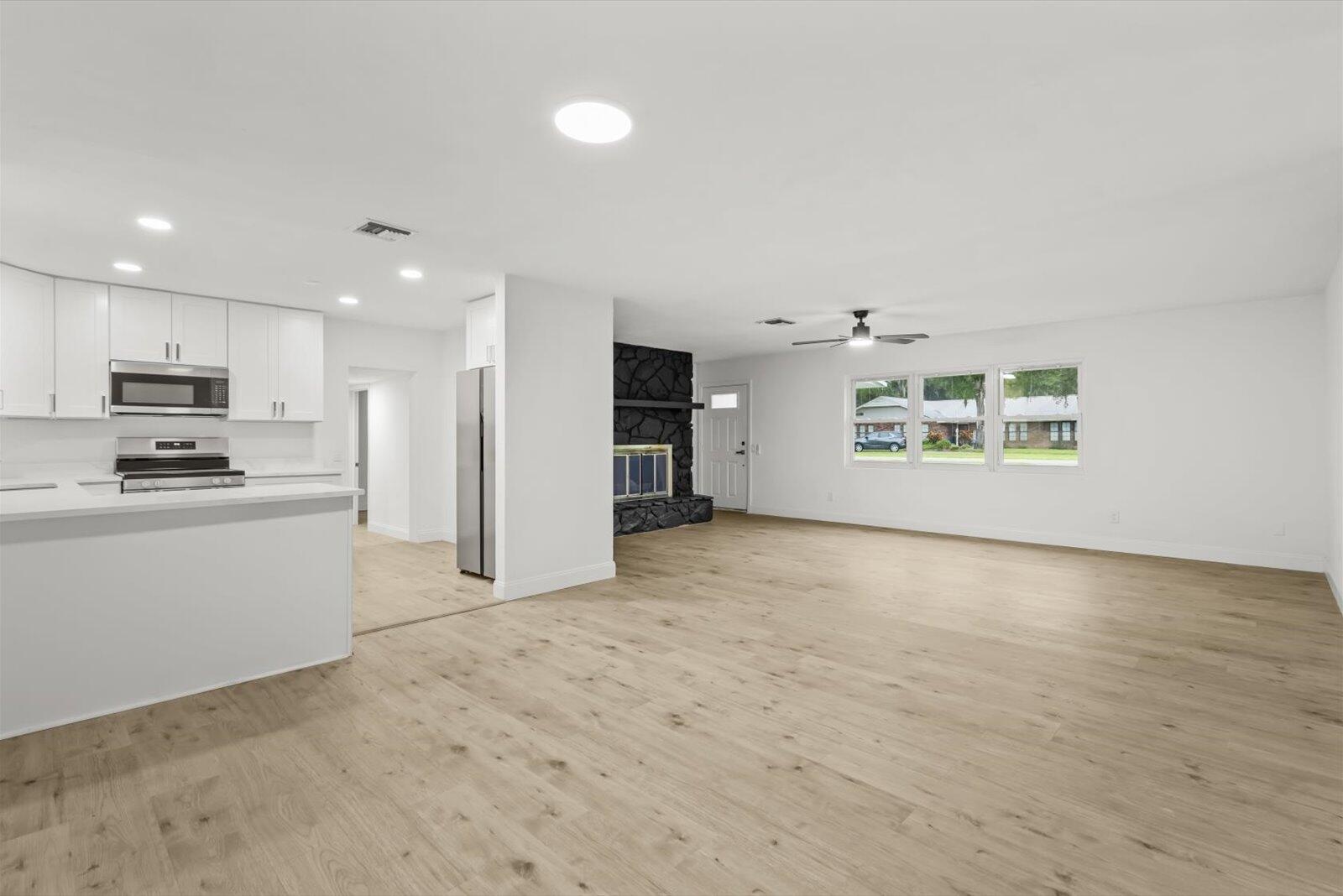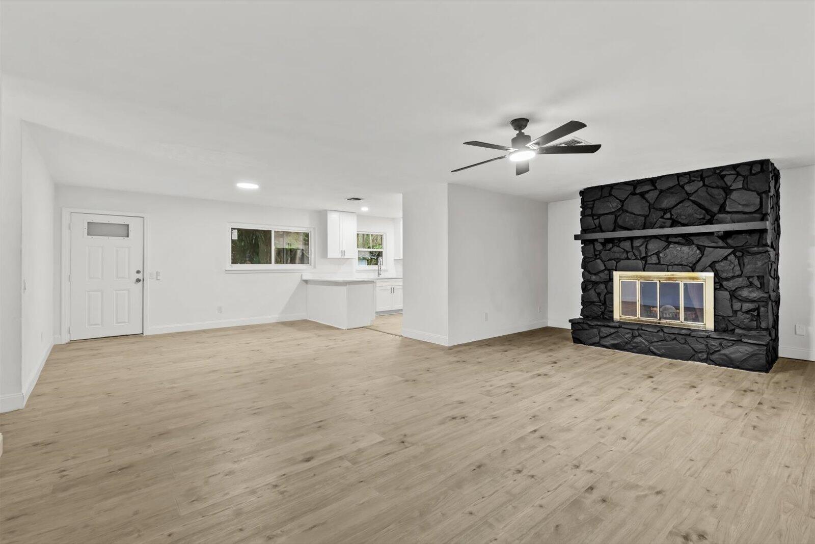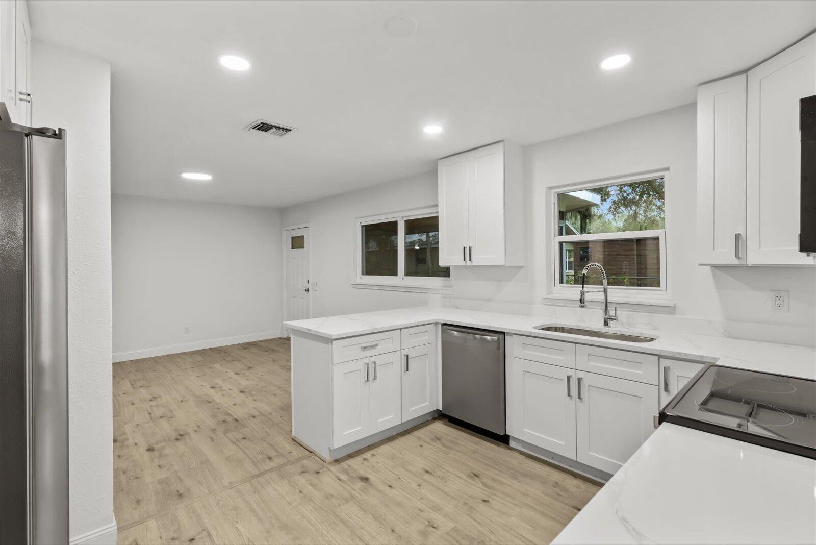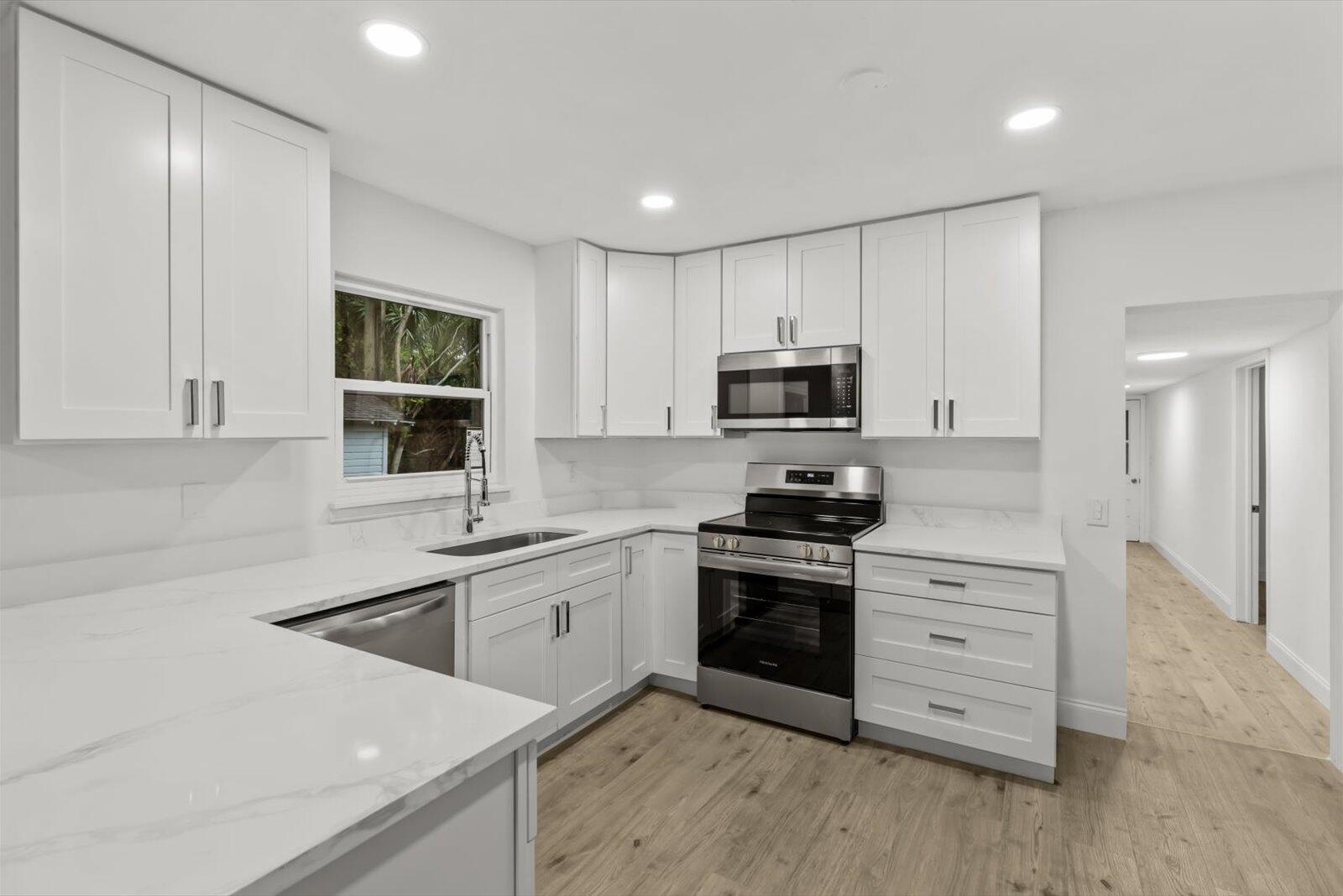 Large price improvement! Showings must be scheduled with Showingtime or Sentri. Exquisite 3-bedroom, 2-bathroom residence on large .41 acre property. Split floor plan. The gourmet kitchen boasts luminous Calacatta quartz countertops, bespoke soft-close shaker cabinetry, and premium high-end finishes, designed to inspire culinary excellence. Luxurious spa-inspired bathrooms, gorgeous vanities, and contemporary fixtures. Impeccable waterproof laminate flooring, freshly painted interiors and exteriors, and brand-new, top-tier appliances blend style with functionality. Enjoy effortless access to I-95, premier shopping, and dining, with the freedom of no HOA restrictions. Metal Roof 2016, Solar panels 2018, HVAC 2022. Solar panels paid off. Please see broker remarks.