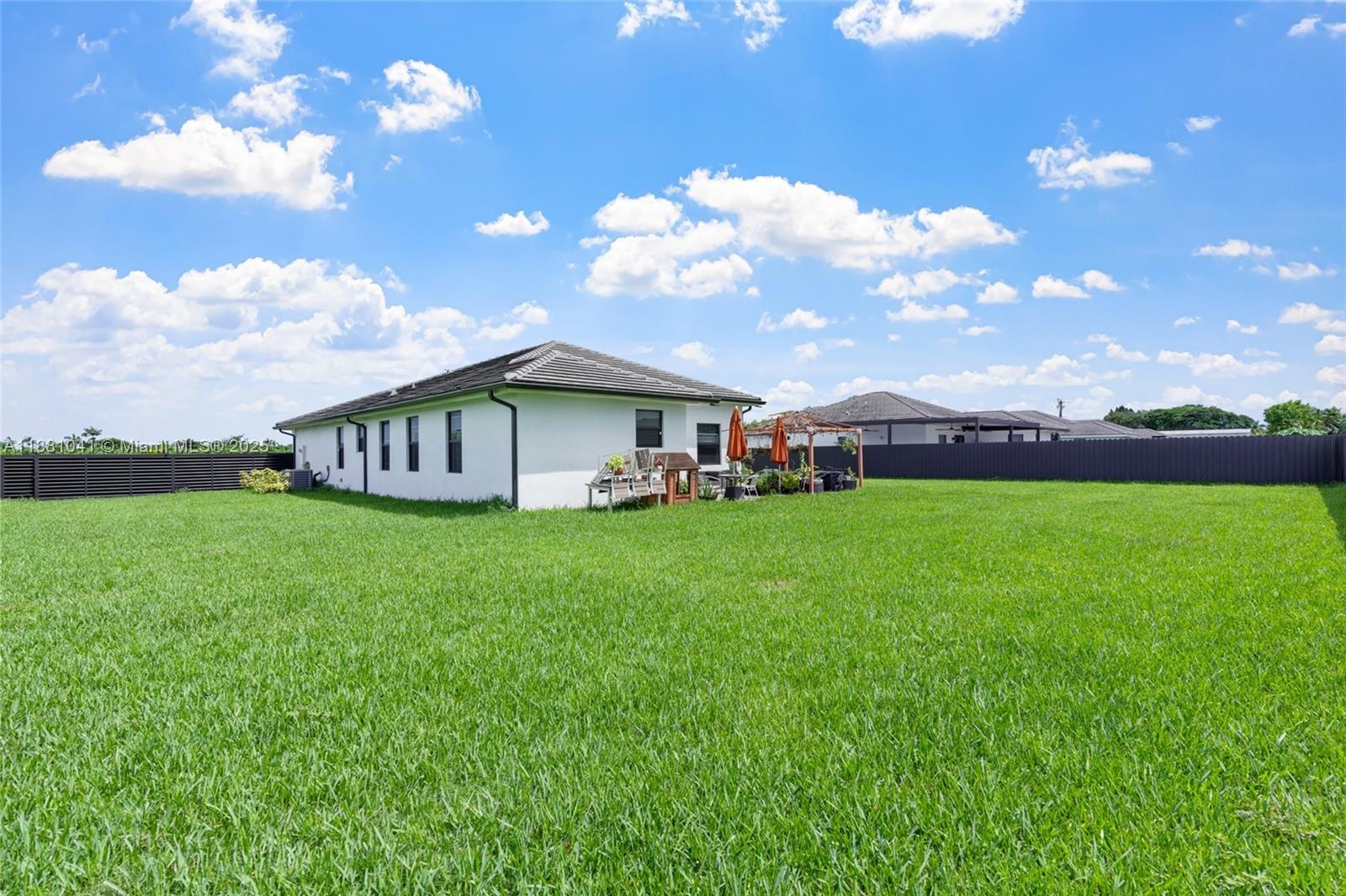 Price improvement, Seller willing to contribute toward buyers closing costs. One-story single-family home featuring 3 beds, 2 full bathrooms, plus a 1/1 private in-law suite with its own laundry and private entrance—ideal for extended family or income-producing rental. NO HOA & NO CDD. Built in 2023, this home offers a tile throughout, new stainless steel appliances, impact windows and doors, high vaulted ceilings, and a customized louver roller fence for added privacy. Situated on an oversized 14,000 sq. ft. lot with ample space for a boat, RV, commercial vehicles, and trucks or your dream pool. Conveniently located near Homestead-Miami Speedway, Biscayne National Park, Homestead Air Force Base, FL Turnpike, and just 30 minutes from the Florida Keys. Schedule your private showing today!