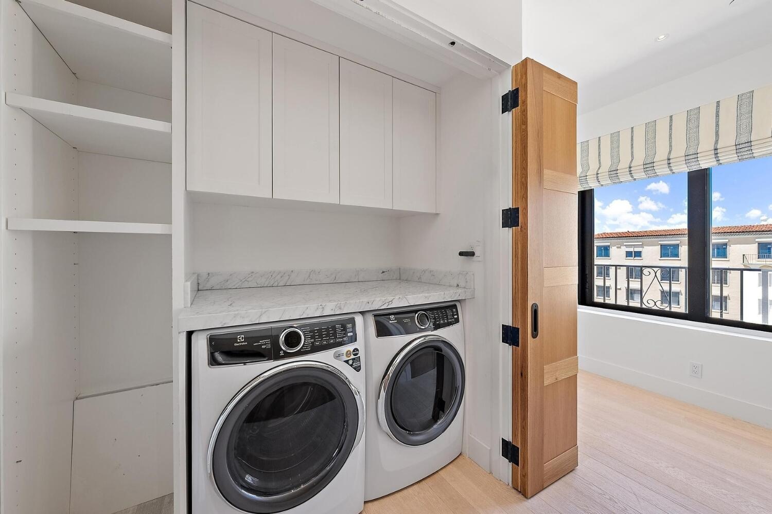 Residence 712 at the Palm Beach Biltmore is a newly gut renovated residence of the highest caliber. offering 2 bedrooms, 2.5 bathrooms, and nearly 2,000 square feet of living space with sweeping views of the Intracoastal. Featuring custom wood flooring and high ceilings, this residence boasts  a thoughtfully designed split-bedroom floor plan that blends open living, dining, and kitchen areas. A beautiful built-in dining space includes a custom banquette with seating for eight, perfect for hosting gatherings. The chef's kitchen is outfitted with Wolf appliances, custom cabinetry, and a built-in bar with a wine refrigerator. Both bedrooms are graciously sized and feature custom en-suite baths with separate soaking tubs and glass-enclosed showers, creating a private, spa-like retreat.