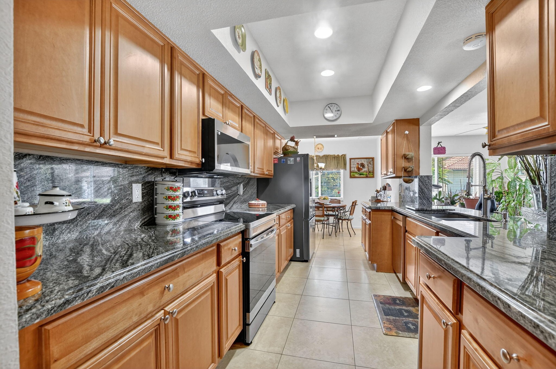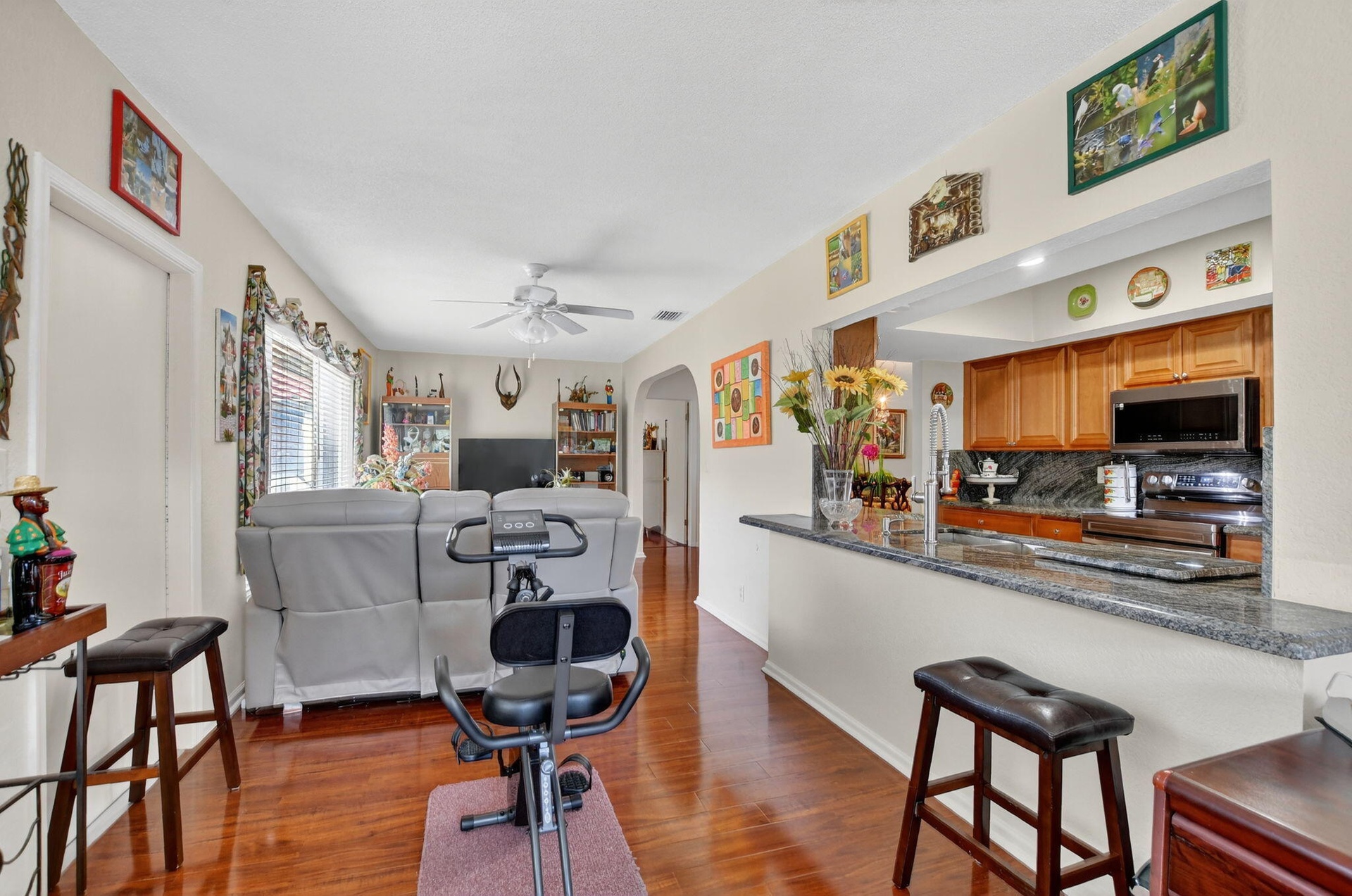 Rare opportunity in East Boca Raton! This beautifully updated and fully furnished 2-bedroom, 2-bath single-family home is available for annual rental in the desirable Knob Hill 55+ community. (Personal items and photos will be removed prior to occupancy.) Offering a spacious and flexible floor plan, this residence features a Florida room, a separate living and family room area, a breakfast nook, and a more formal dining space. Updated kitchen showcases granite countertops, stainless steel appliances, and modern finishes, while both baths have been tastefully renovated. Additional highlights include walk-in closets, impact windows and doors, beautiful laminate flooring with tile in the kitchen, and a 2-car garage. HOA requires 700 credit score.