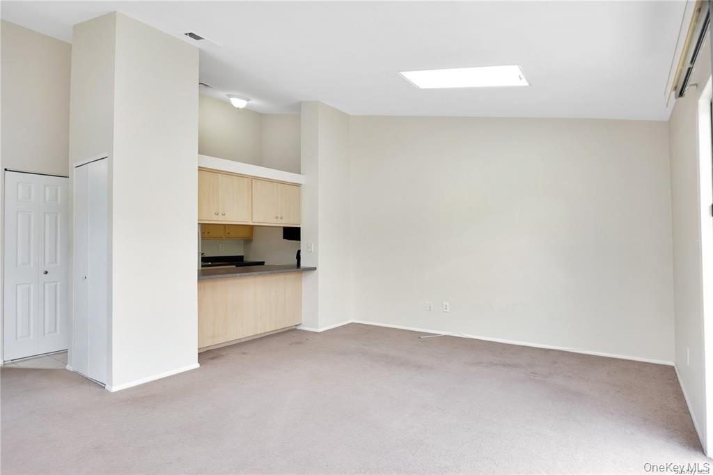 - Unfurnished living room with light colored carpet and a towering ceiling