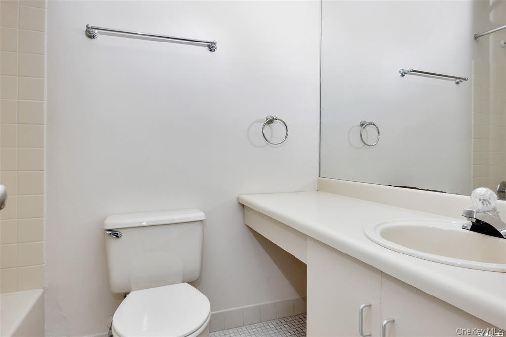 - Bathroom with vanity, shower / tub combination, and tile patterned floors