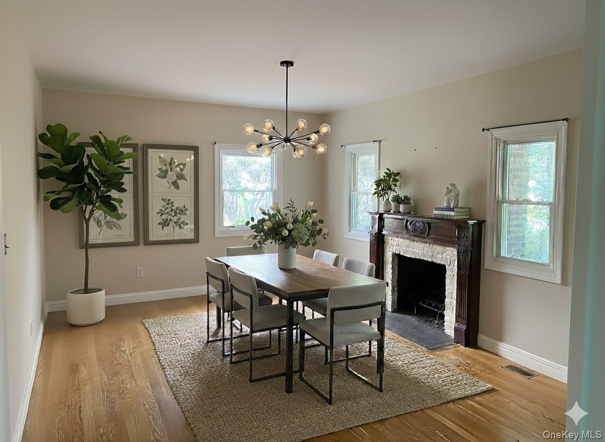 An expansive front porch welcomes you to this stunning 4,400 sq. ft. residence at 4 Skunk Hollow Road, featuring five king-size bedrooms and 3.5 bathrooms. Step into the impressive two-story grand foyer, leading to a formal dining room and a living room with a charming turret, high ceilings, and custom moldings. Cozy up by the fireplace in the inviting den, or enjoy cooking in the chef’s kitchen with a scullery, center island, and stainless steel appliances. The luxurious primary suite includes a turret sitting area, ensuite bathroom, multiple walk-in closets, a dressing area, office, and balcony. Set on a flat, usable property with room for a pool, this home also features a covered breezeway to the two-car garage. With central AC, gas heat, hardwood floors, second-floor laundry, and a full basement, this home combines elegance and modern convenience. Recently updated with a new roof and overflow cesspool in 2025, it’s nestled in a picturesque country setting, just minutes from downtown Huntington Village, Huntington harbor, and beautiful local beaches.
