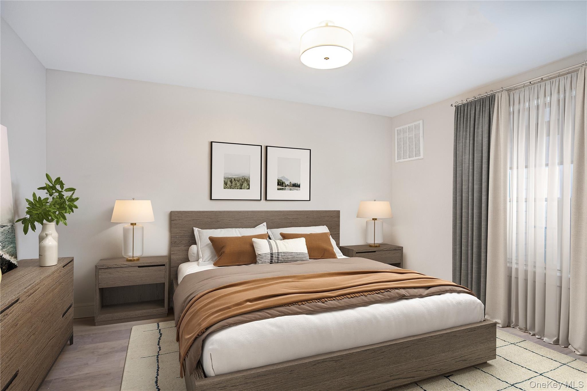 The primary bedroom suite is a true retreat. Generously sized and designed for comfort, it offers plenty of room for a king-sized bed and additional furnishings. The suite also features two spacious closets, providing abundant storage and helping to keep the space organized.