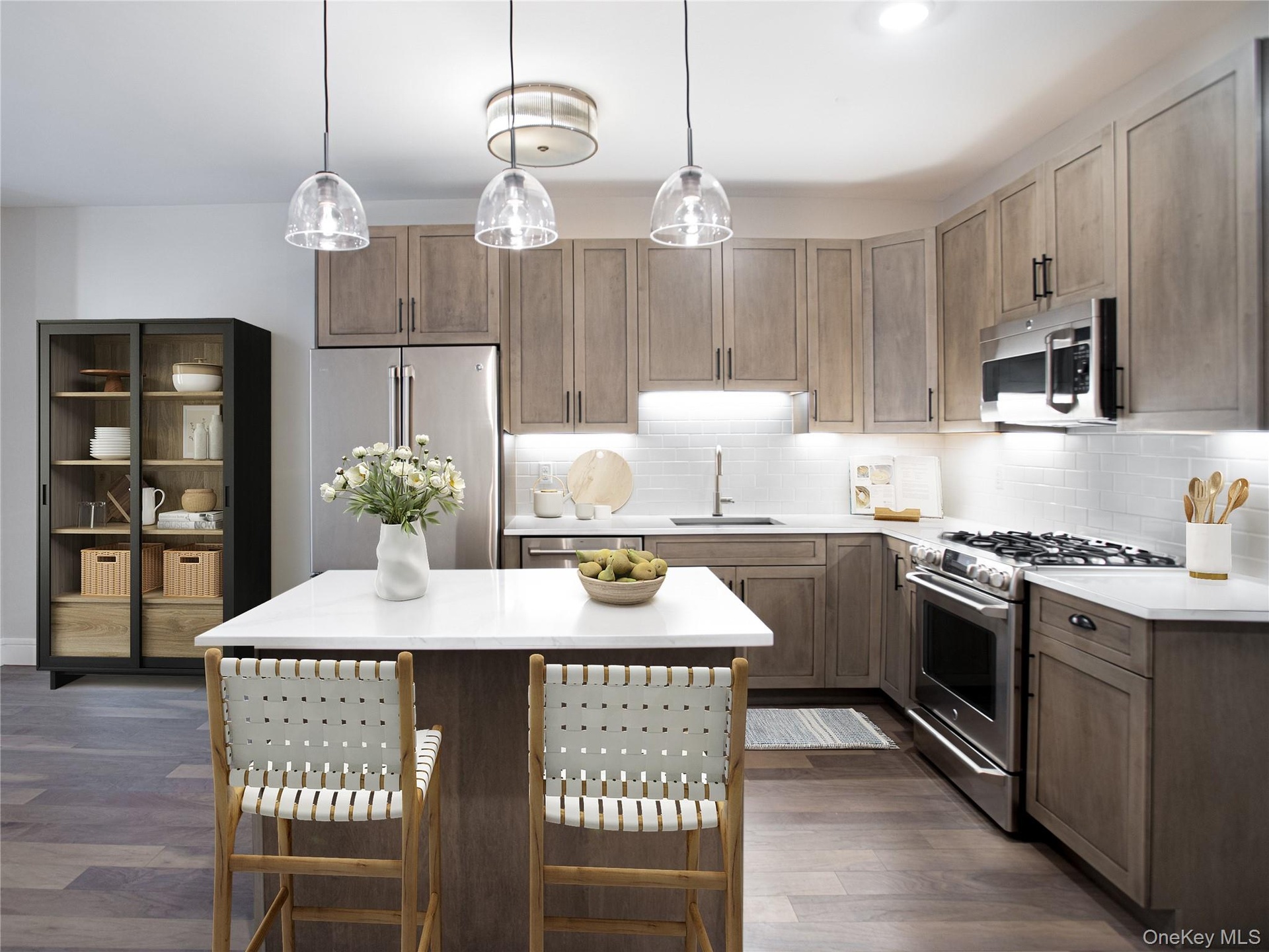 The kitchen is intelligently designed for both cooking and entertaining. Complete with modern appliances, ample cabinetry, and counter space that enhances meal preparation, it seamlessly connects to the living and dining areas, allowing you to remain part of the conversation while preparing meals.