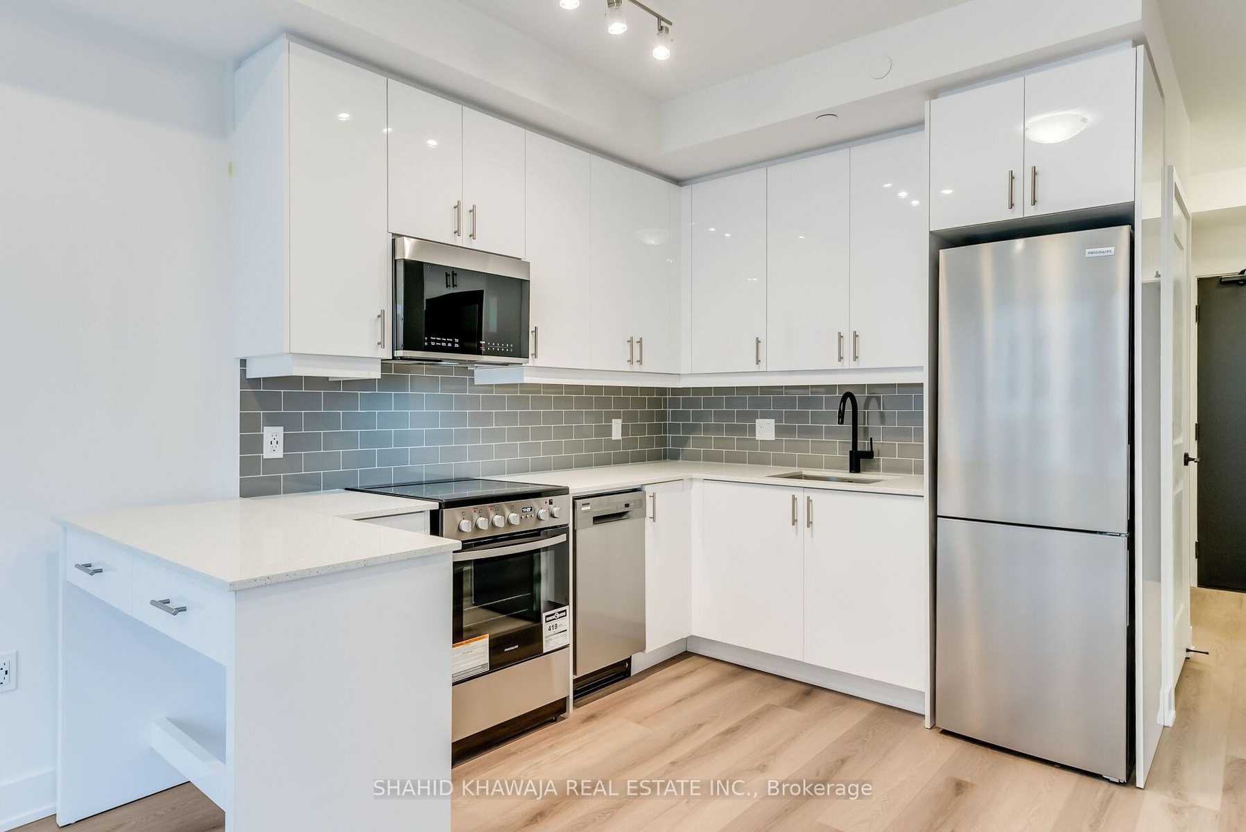 A brand new unit *NEVER LIVED IN BEFORE* in the luxurious Nuvo Condos built by Fernbrook Homes. This unit offers modern living with contemporary design with 1+1 bedrooms, 2 bathrooms, a private balcony, 1 parking and a locker. This unit features 1 spacious bedroom with a private ensuite, a spacious closet, stunning views of the cityscape + 1 den that can be used as an at home office, additional living/dining space, playroom, or transformed as a bedroom for additional guests. An open concept kitchen for hosting large gatherings overlooks the living/dining area. Living room with walk out the private balcony perfect for unwinding no matter what time of day. Building amenities include indoor pool, fitness centre, party room, game room, media room, car wash station for added convenience. Close to Oakville Hospital, parks, trails, schools, supermarkets, and restaurants. A few minutes drive from the QEW, Highway 407, and Bronte GO Station for easy commute.