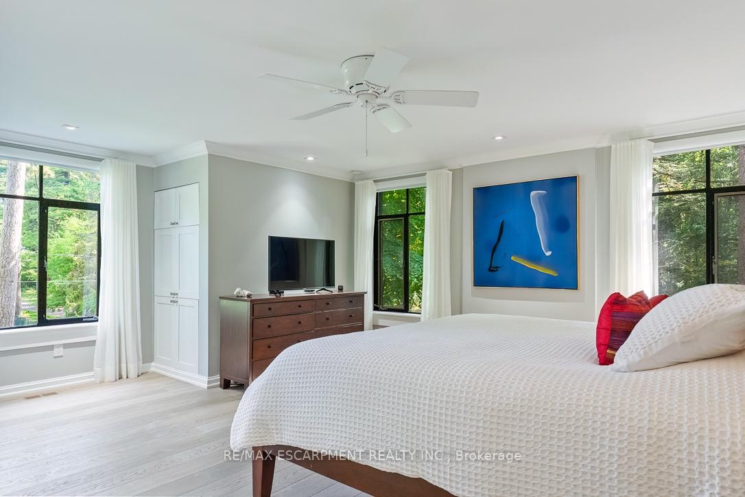 Completely remastered & set in prestigious Lorne Park Estates, this award-winning home combines modern Cape Cod finishes w/contemporary elegance. Relish in the exclusive amenities of this private enclave w/access to 40 acres of preserved forest, tennis/pickleball courts, trails, beach access & playgrounds. Offering 6,000+ sqft of liveable space, this home highlights floor-to-ceiling glass walls & expansive windows showcasing panoramic views of the landscaped grounds while flooding the interiors w/natural light. Chef-inspired kitchen w/premium appliances & lrg island opens to bright living areas. Luxurious primary suite offers a private sundeck, spa-like ensuite & dual w/i closets. Third level loft adapts as an office, studio or guest retreat. Finished w/u basement provides spacious living & entertaining space. Outdoors, terraces & gardens create serene settings to unwind. This prestigious homes accolades include Toronto Life's Best New House & an urban design award from Mississauga.