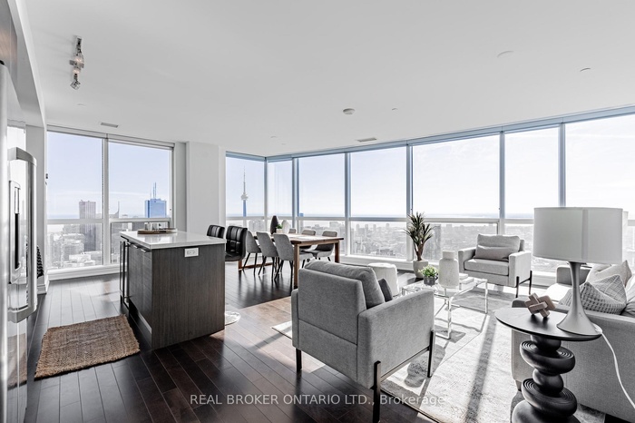 Wake up to floor-to-ceiling windows of the best view in Toronto. Designed to capture the breadth of the downtown landscape without being so far away to miss out on the detail and vibe of this great city. This luxury property sits atop one of Canada's tallest skyscrapers in the separate exclusive 388 Yonge St address and has great maintenance fees for a 1475 square feet unit. It's layout is unique within the building and offers an over-sized primary bedroom with huge windows, a large walk-in closet and dual sink ensuite bathroom. Perfectly ideal for entertaining your party in the large main space with a nice bottle of wine from your climate controlled wine fridge built into the island or retreat back to your office in the den and have guests stay in a second bedroom with two closets for storage. No searching for your locker downstairs because it is located right outside the unit on the same floor. Don't have to walk far to your car because the extra-wide parking space is right beside the elevator. The building has hotel like amenities with a games room, theatre room, terrace, party room, billiards room, resident membership to the gym and a well-staffed concierge to accept your packages. Truly a must see in-person!