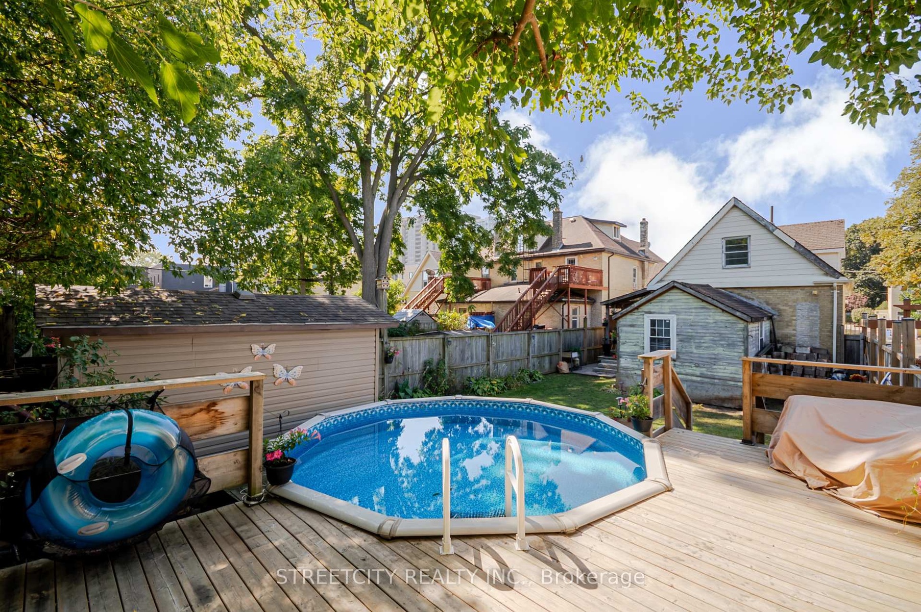 Endless Potential Meets Charm & Income Opportunity! This beautifully updated and utterly charming main-floor 2-bedroom unit is "cute as a button" and offers the convenience of main-floor laundry. Upstairs, a separate 1-bedroom unit with its own private exterior entrance presents an excellent rental income opportunity. Step outside to a backyard oasis featuring a covered patio, a spacious yard, and a newer above-ground pool perfect for relaxing or entertaining. Ideally located within walking distance to a variety of amenities and the exciting, up-and-coming Kellogg's redevelopment, this property is a rare gem with both lifestyle and investment appeal!