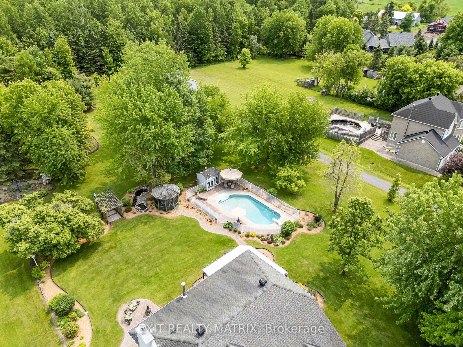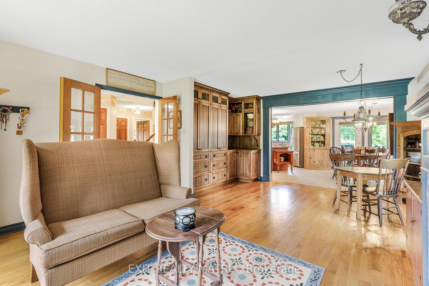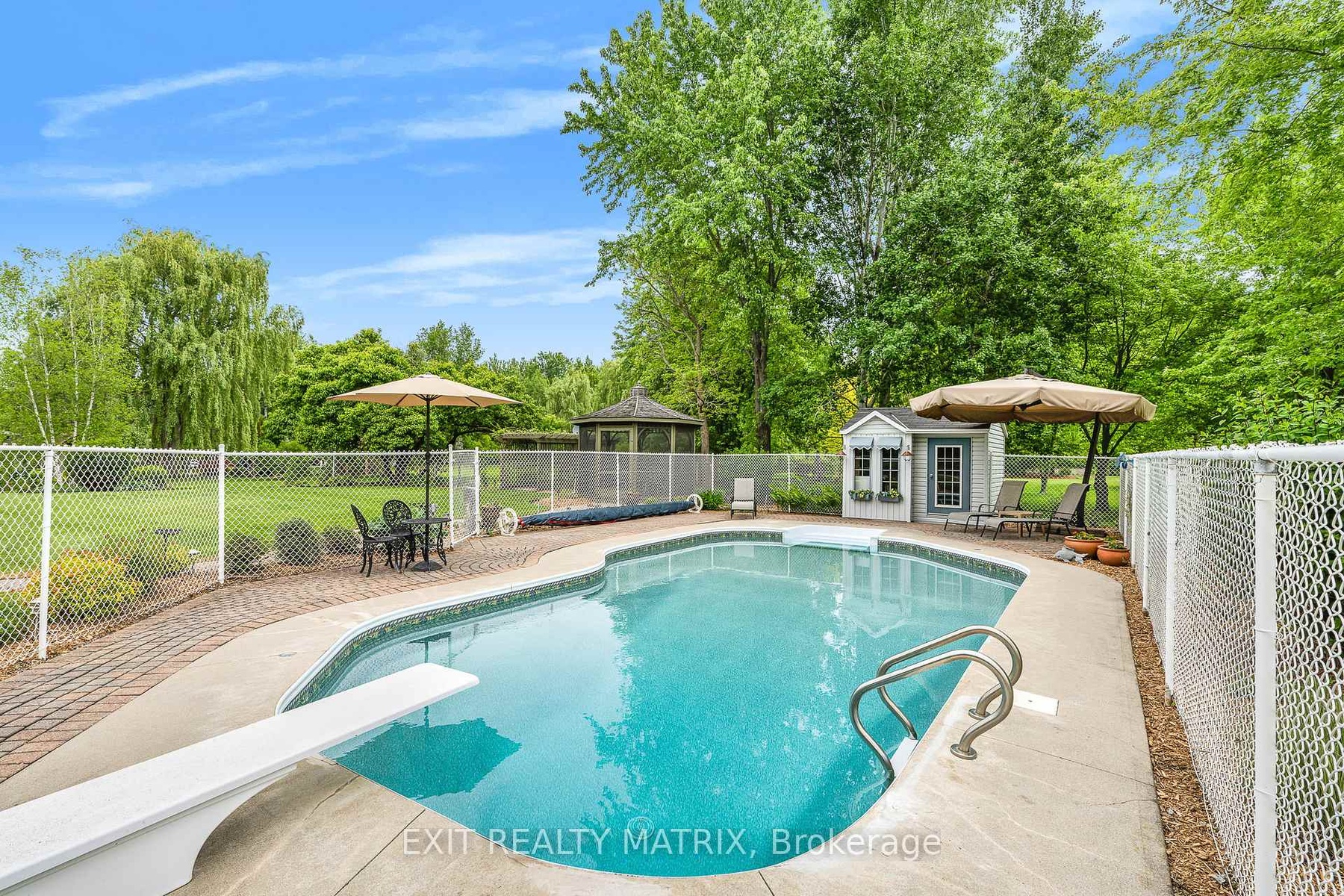 OPEN HOUSE Sep 21, 2-4pm. Welcome to this stunning home, perfectly situated on a beautifully landscaped 1.84-acre lot on municipal water! From the moment you step inside, you'll be captivated by the warmth and elegance of the interior, featuring gleaming hardwood floors and a bright, welcoming family room with large windows and direct access to a spacious deck. The family room flows seamlessly into a formal dining area, perfect for entertaining, while the charming kitchen offers a lovely eating area with expansive glass doors leading outside. A cozy living room with a fireplace adds to the inviting atmosphere. Upstairs, you'll find three generously sized bedrooms and two full bathrooms, including a serene primary suite complete with a private ensuite and a comfortable sitting area. The fully finished lower level provides ample additional living space with a large rec room and games area, ideal for family fun or hosting guests. Step outside and enjoy your own private oasis with a large covered deck, a fenced inground pool, a serene path leading to a gazebo, and a spacious backyard with room to roam. The impressive two-storey detached garage adds even more value and versatility to this exceptional property. Don't miss your chance to own this rare gem, where space, comfort, and lifestyle come together.