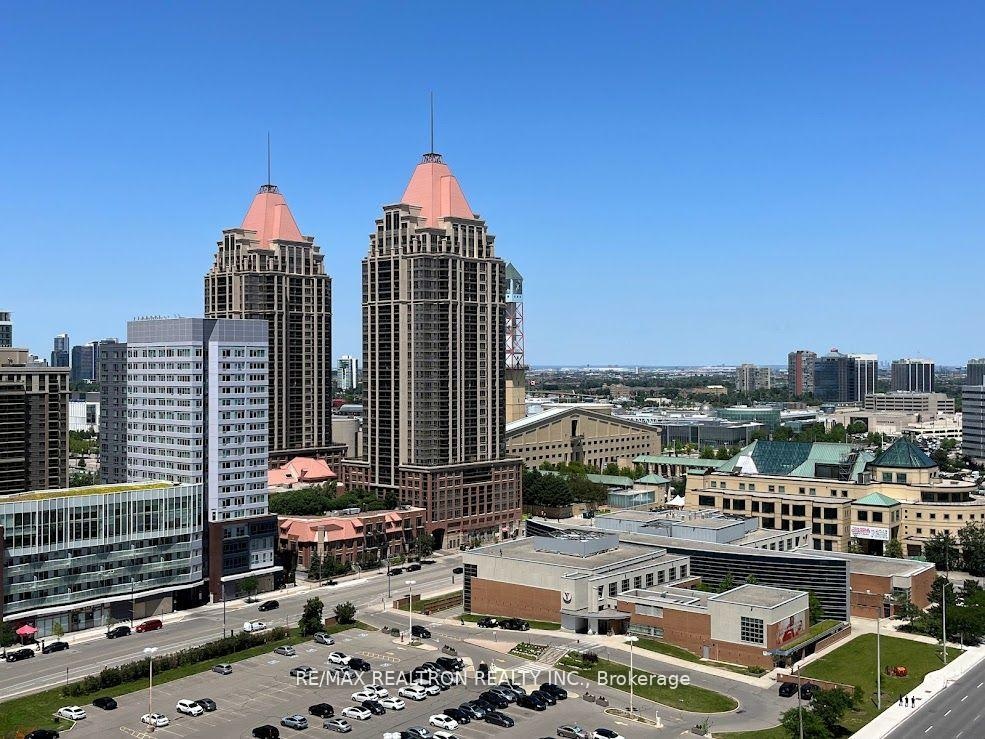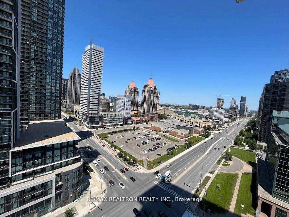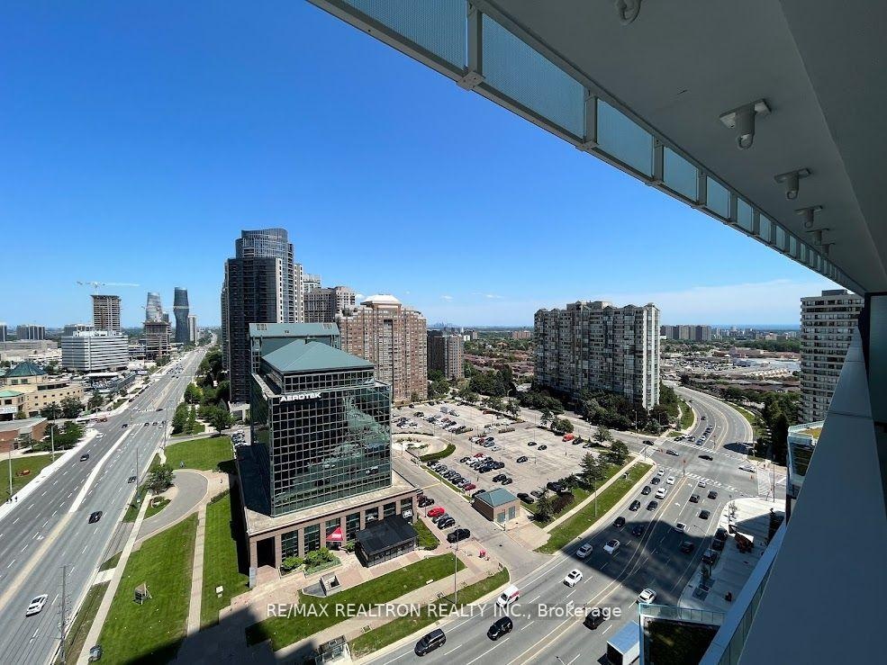 Welcome to this newer 1-bedroom plus den corner unit at M City Tower 1, located in the vibrant Mississauga City Centre. This 698 sq. ft. condo offers a functional layout with no wasted space, including a 182 sq. ft. wrap around balcony that provides breathtaking, unobstructed panoramic views of Mississauga and even the downtown Toronto skyline with the CN Tower. The versatile den is a separate room with its own window and walkout, making it the perfect space for a home office or a second bedroom. The bright, sun-drenched bedroom features oversized windows, and the contemporary kitchen is equipped with built-in paneled appliances, a quartz countertop, and a stylish backsplash. Luxury features continue throughout the unit with floor-to-ceiling windows, smart lock technology, and a smart thermostat.This prime location is just steps away from Square One, Celebration Square, Sheridan College, and the Central Library. With easy access to major highways (403, 401, 407, and 410) and a short drive to the University of Toronto Mississauga, this condo is a commuter's dream. Enjoy the convenience of nearby grocery stores, restaurants, parks, and banks. Amazing Amenities In The Building Include Fitness Room, Party Room, BBQ Station, Outdoor Skating Rink, Outdoor Pool, Kid's Zone, 24-Hour Concierge etc.