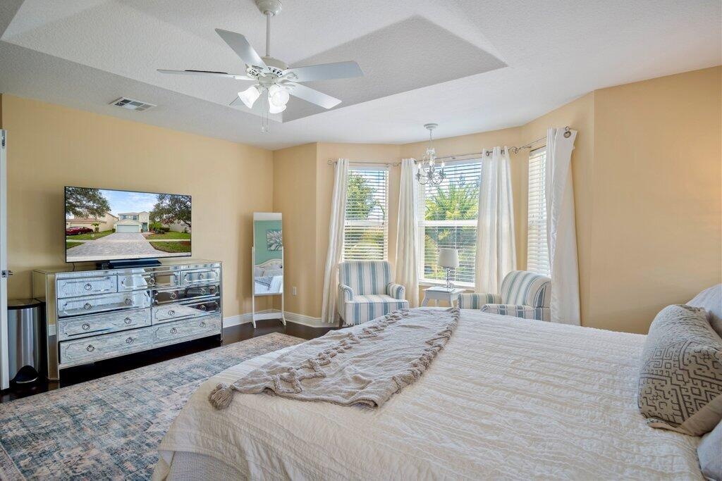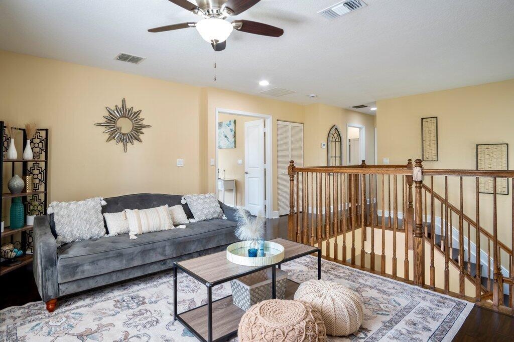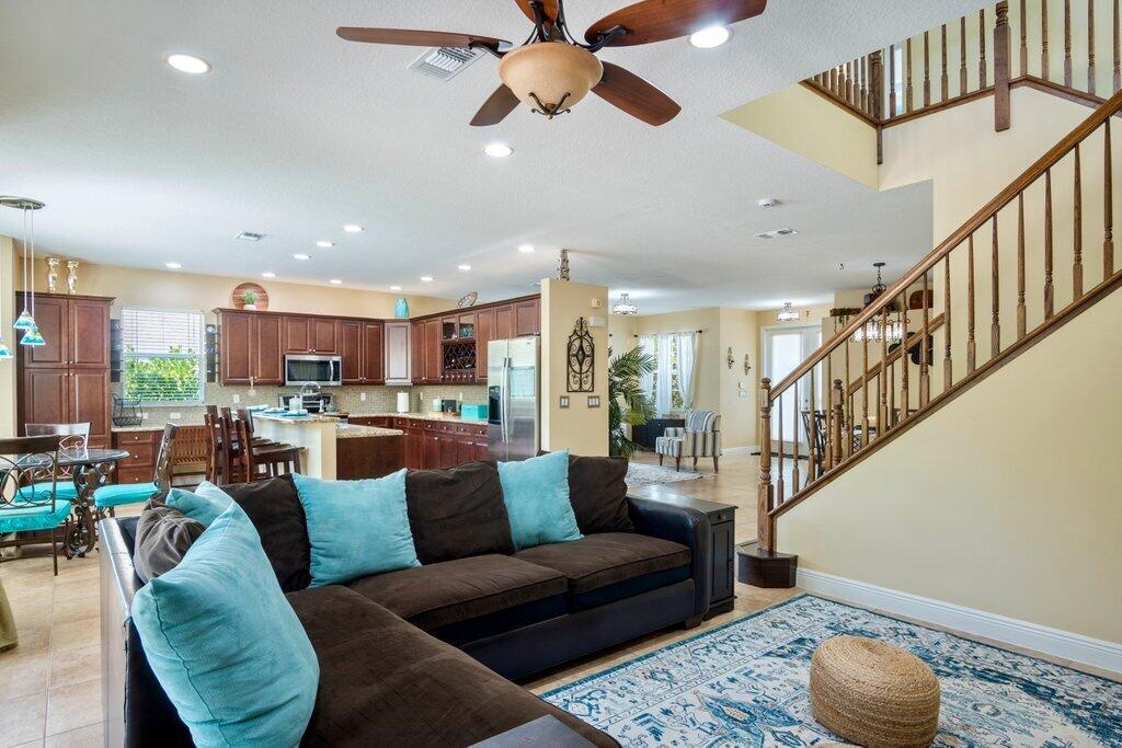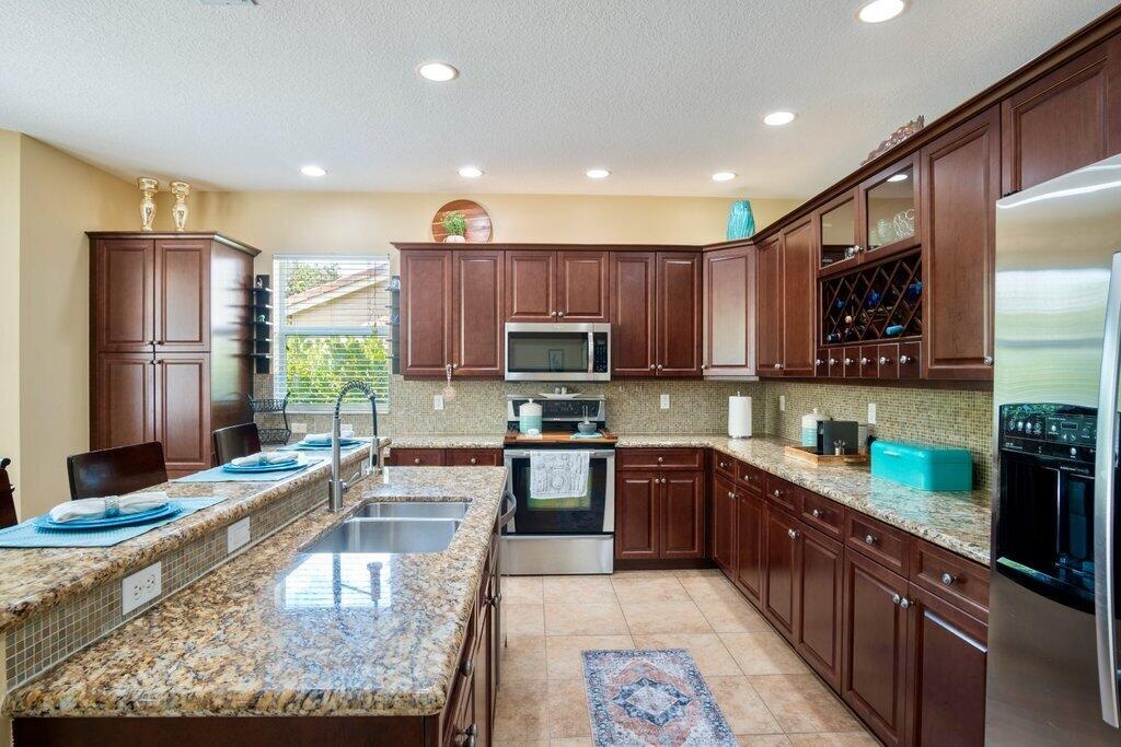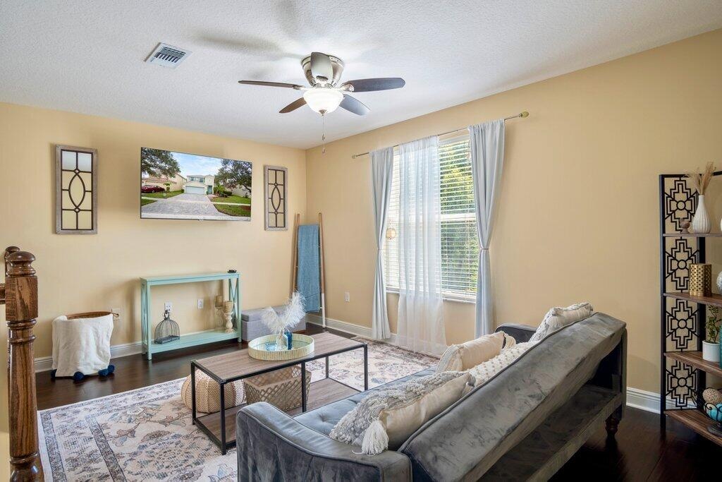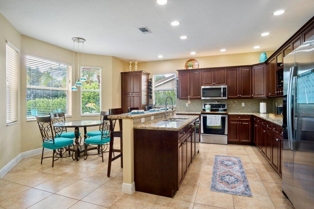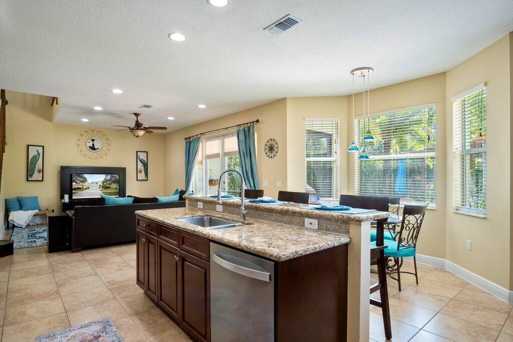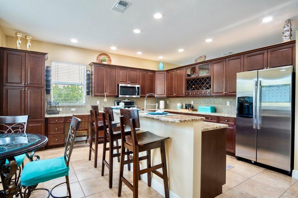 DescriptionThis charming two-story home is ready to welcome you and may be sold completely furnished if a buyer is interested! With a spacious floor plan designed for both everyday living and entertaining, you'll find plenty of room to spread out and enjoy. The first floor boasts stylish neutral ceramic tile, while the staircase and entire second floor are finished with rich dark wood-look laminate, adding a modern touch throughout. The heart of the home is the bright and airy kitchen, featuring abundant storage, a center island, and a cozy breakfast nook that overlooks the inviting family room. From here, step outside to the screened-in patio, perfect for outdoor dining or relaxing. The backyard is your own private retreat! Fully fenced for privacy, it offers a serene, oversized space