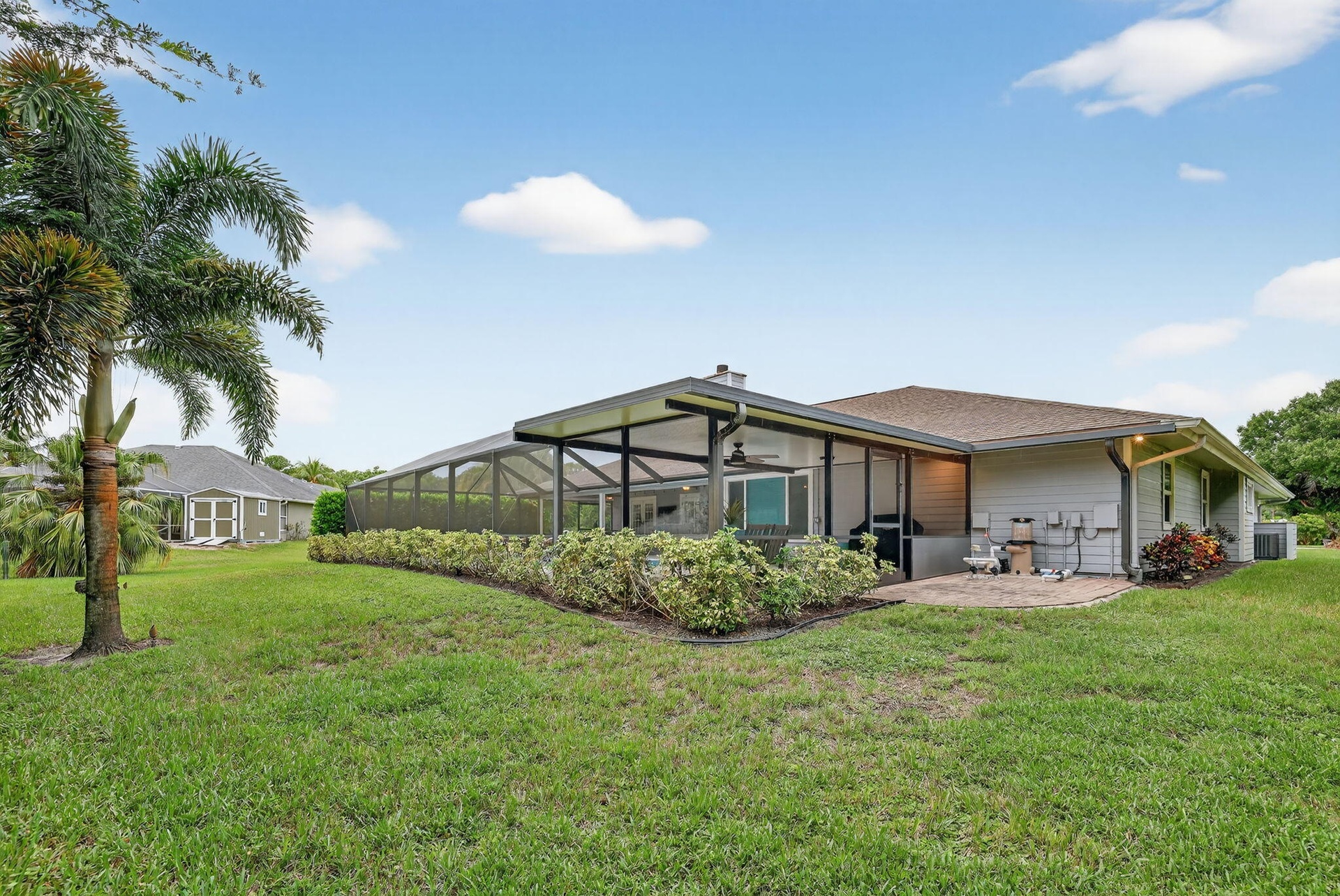 Welcome to your dream home in the heart of Stuart, Florida! This beautifully updated 3-bedroom, 2-bathroom single-family residence is nestled on a spacious half-acre lot within a quiet, gated community offering privacy and peace of mind. Enjoy Florida living at its best with a screened-in pool perfect for relaxing or entertaining year-round. The home features a bright, open floor plan, updated finishes, and ample outdoor space. A fence can be added once approved by the association. Beautifully done kitchen with soft close cabinets and a large pantry. There is a dining area that can be used as second den or easily converted into an office space. EV charging station has been added.
