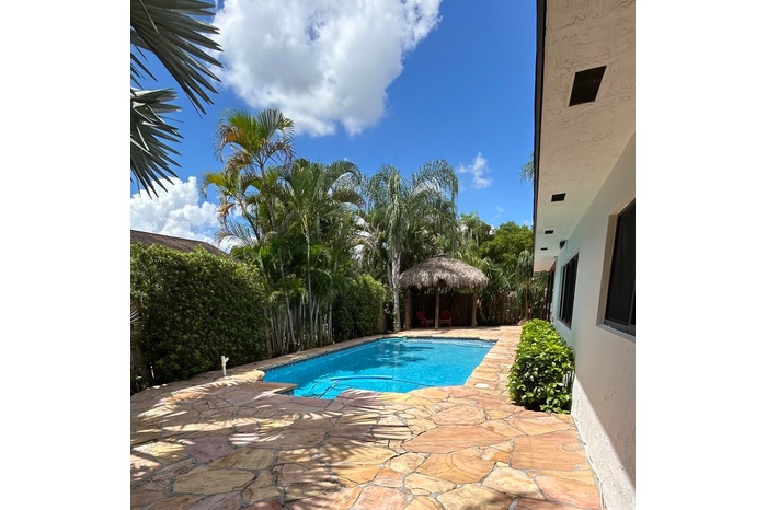 DescriptionWelcome to this updated 3-bedroom, 2-bath pool home in desirable Pembroke Lakes. With 1,749 sq ft on an 8,580 sq ft lot, this home offers a remodeled kitchen with large island, all natural gas, custom built in bar with dual wine coolers, and gas stove with pot filler. The open layout flows into the living area with a cozy wood-burning fireplace. Impact windows, built-in closets, new treatments, a (2016) AC , and (2021) gas water heater provide comfort and peace of mind. Enjoy a resurfaced pool, rock-paved patio, tiki hut with electrical, and a mango tree. The two-car garage features in-wall AC, cabinets, and sink for added versatility. Centrally located near shopping, dining, parks, and highways.