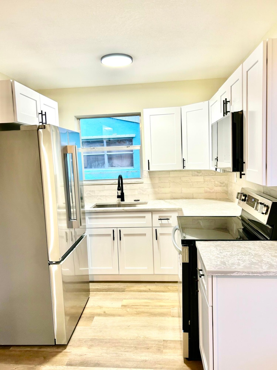 DescriptionMove-in ready and beautifully updated, this 2-bedroom, 1-bath home has it all. Features include a 3-car carport, brand new central A/C, new kitchen with cabinets, countertops, microwave, stove & refrigerator, plus new washer/dryer and tankless water heater. Bathroom fully upgraded with new tub, vanity & toilet. Fresh new flooring throughout and great curb appeal with new grass & flowers in the front yard.Seller is willing to give credits towards a new roof contingent of the sale price!Also features a mango tree in the back yard.Every detail is brand new--just minutes from the beach, shopping, and dining. Don't miss this turnkey gem!