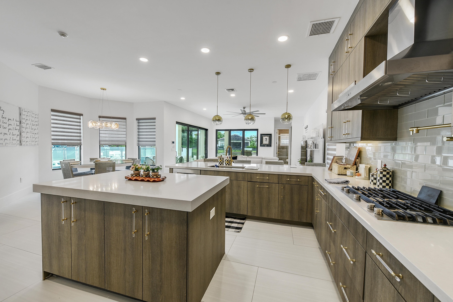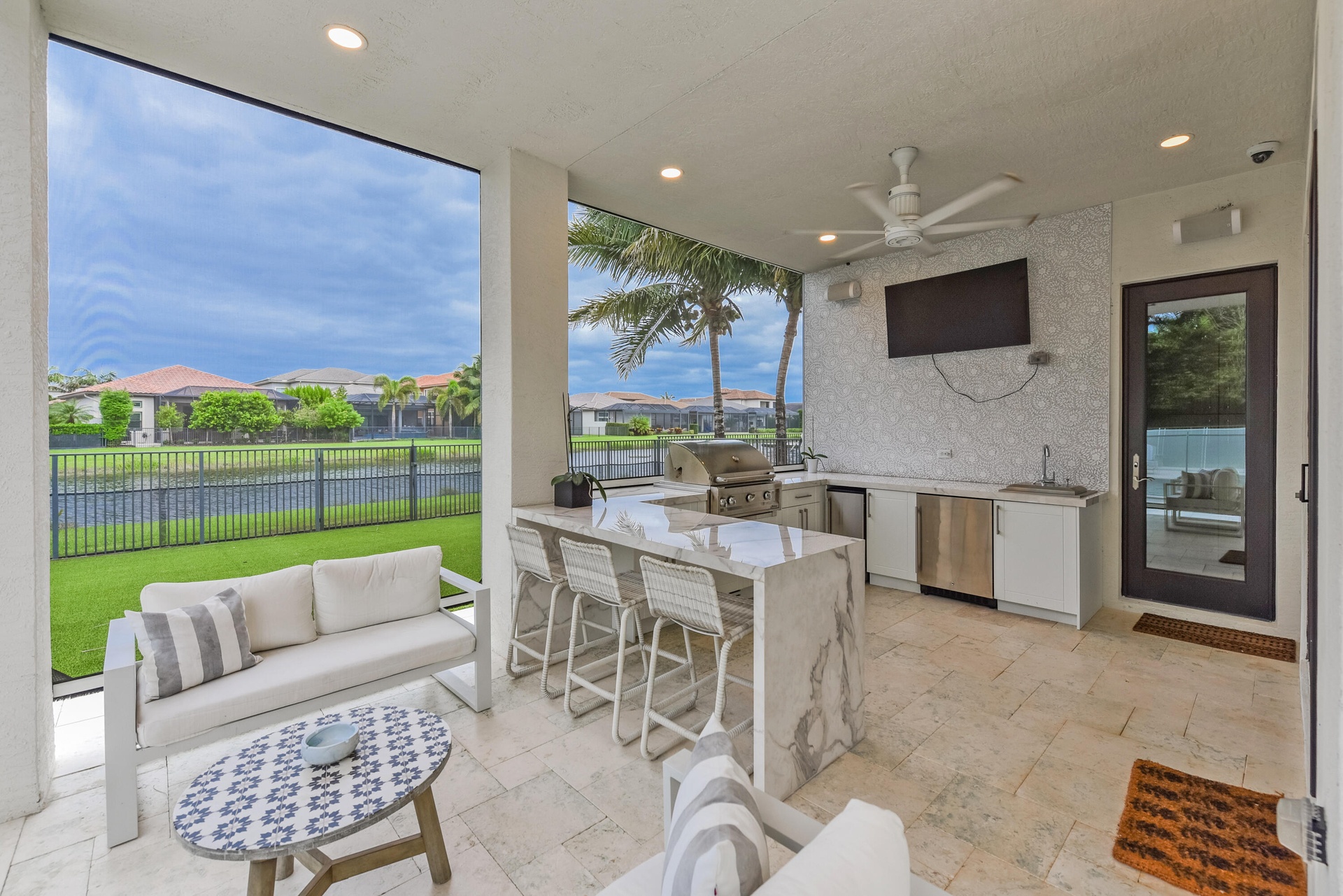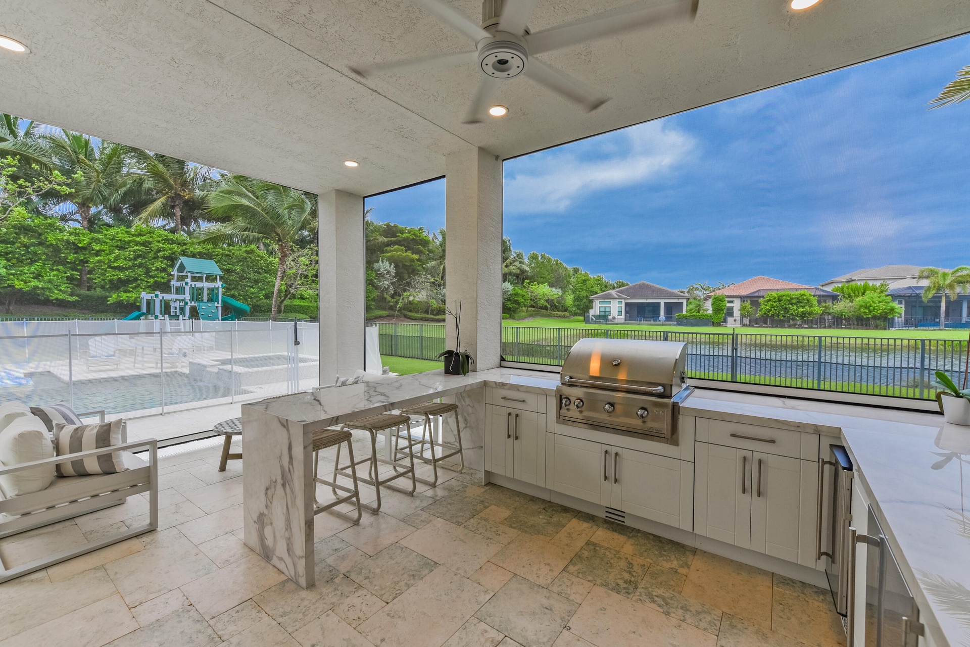 This Stunning upgraded Mediterranean style pool home is an entertainer's dream. Located in the amenity-rich community of Seven Bridges in Delray. Situated at the end of the cult-de-sac with a water view allowing for lots of privacy. Enter into the spacious living area where you will find a floor to ceiling fireplace as well as impact windows which allow for plenty of light. The guest Bedroom and Bath are conveniently located on the first floor along with 2 Baths that are situated in the Office and Family room. There are Five full Bedrooms on the second level all with adjoining Baths. The Kitchen is a Chefs delight complete with an upgraded Jennair Refrigerator, Gas Stove, and a Uline Beverage Refrigerator. An extra large Pantry and plenty of Counter space completes this fabulous Kitchen
