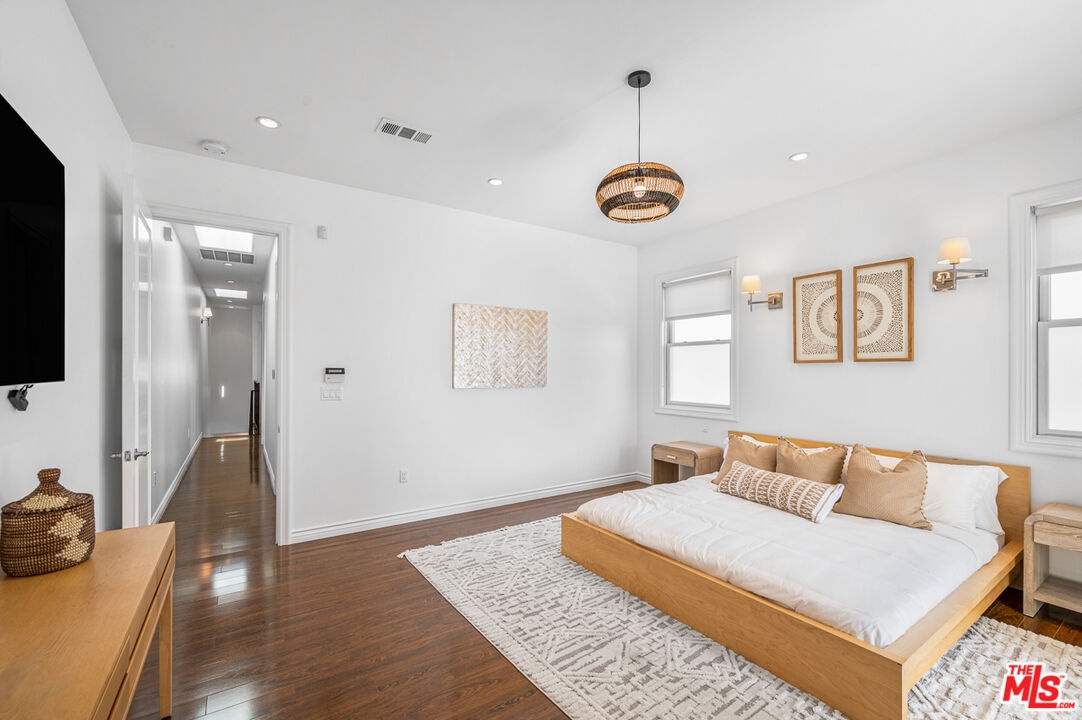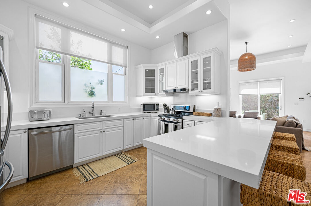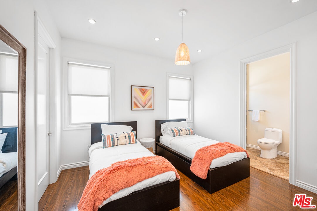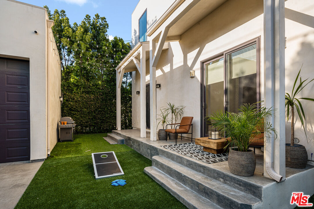 Fully furnished and turn-key. This property is available for short and long-term rental! LOCATION LOCATION LOCATION!! Stunning 2012 construction in the most desirable la area, walking distance to some of the hottest West Hollywood restaurants & Cafes. Amazing duplex with 2400 sq.ft., 2-story 3bd 3.5ba spacious town-home style unit. Separated entrance. Magnificent windows throughout creating lots of natural light. Dramatic custom-made white kitchen offering all stainless steel appliances and custom sink with white caesarstone counter tops. Large living area as well as family room with 12 foot high ceilings and a fireplace. Stone floors on bottom level and hardwood floors throughout upstairs and bedrooms. All bedrooms with large and walk-in closets and their own private baths. Master bath is custom-made with double sinks and double shower/tubs. Detached gated garage with one parking spot in the back of the property. Beautiful landscaping and much more. No expense spared when constructing or designing this unit.