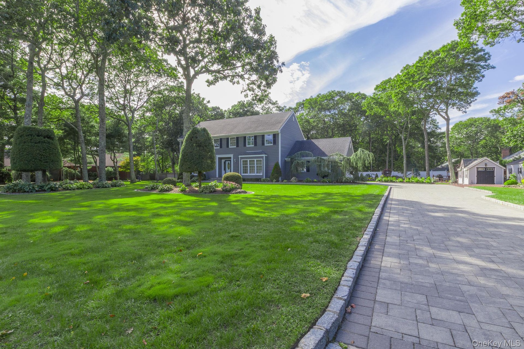Welcome to this beautifully maintained 4-bedroom, 2.5-bath Colonial nestled in the sought-after Smith Point Estates of Shirley. Set on a lush, 1-acre lot, this home offers 2264 square feet of inviting living space and an outdoor oasis that feels like a private park! Enjoy manicured grounds featuring stone patios, tranquil ponds, flowing creeks, flowering beds, and charming gazebos that is perfect for relaxing or entertaining. A covered deck provides year-round enjoyment of your natural surroundings. Enjoy the convenience of Sheds for storage, additional workspace and car storage. Inside, the home offers a spacious layout with generously sized rooms, a full basement for storage or future finishing, and a 2-car side-entry garage with openers. Recent upgrades include new vinyl siding with eye catching cedar shake impressions on the front, New Gutters with guards, New propane Water Heater and a updated central air conditioning system for year-round comfort. Some additional features include CVAC and Fireplace! Ideally located just minutes from Smith Point Beach, shopping, and local restaurants, this home combines the best of convenience and peaceful living.