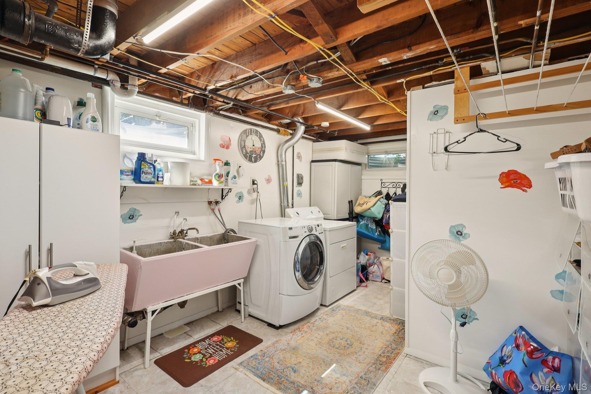 - Laundry area featuring separate washer and dryer and light tile patterned floors