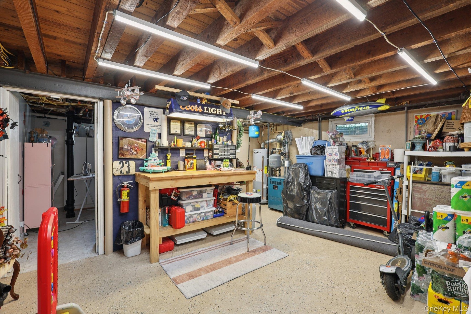 - Partially finished TV room featuring carpet flooring, recessed lighting, and wooden walls