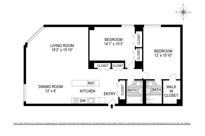Chef's kitchen has been extended and features a pass thru to the living room, ample cabinet storage, and stainless steel appliances. Primary suite with a large walk in closet and updated bathroom. Second bed has 10 feet of custom closet storage, and an adjacent full bathroom with a tub.