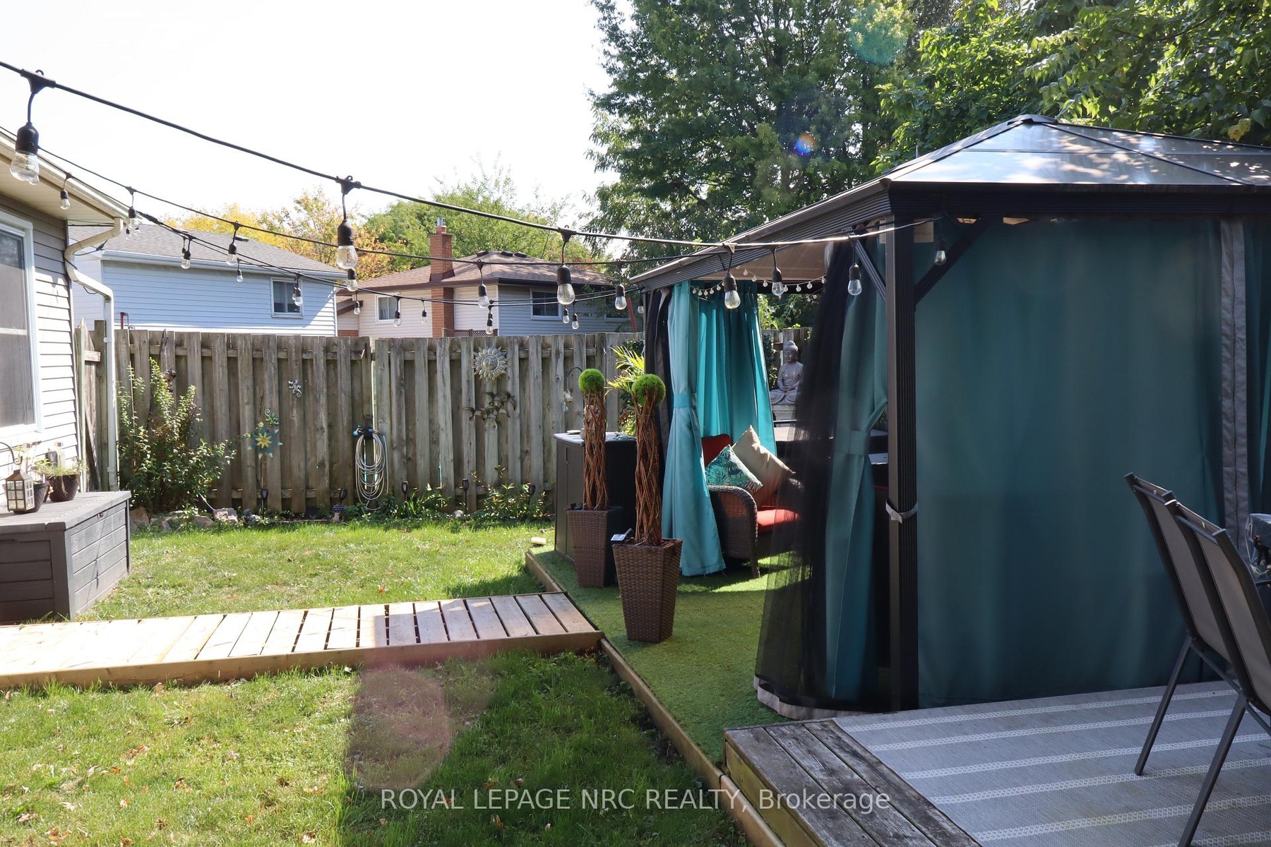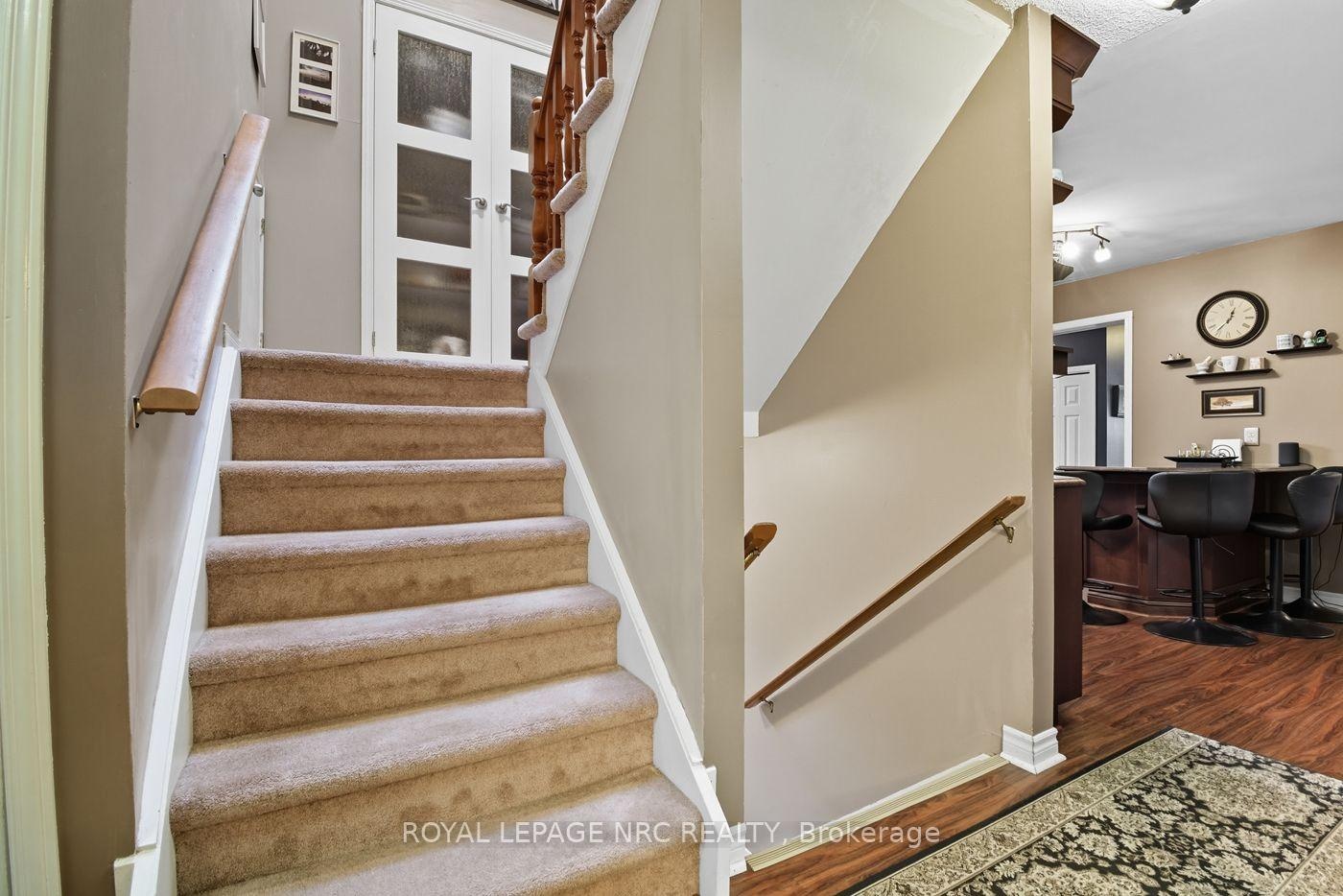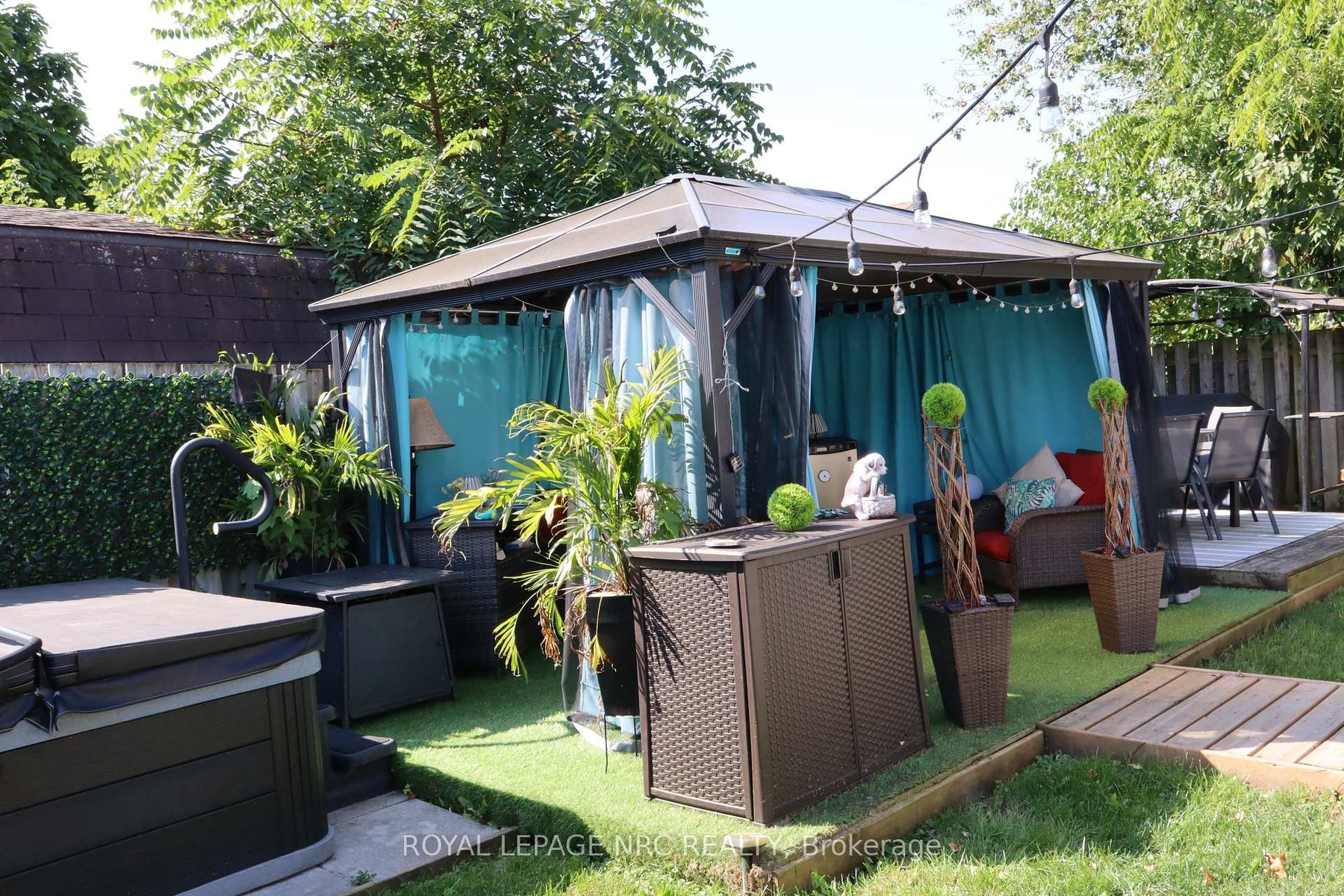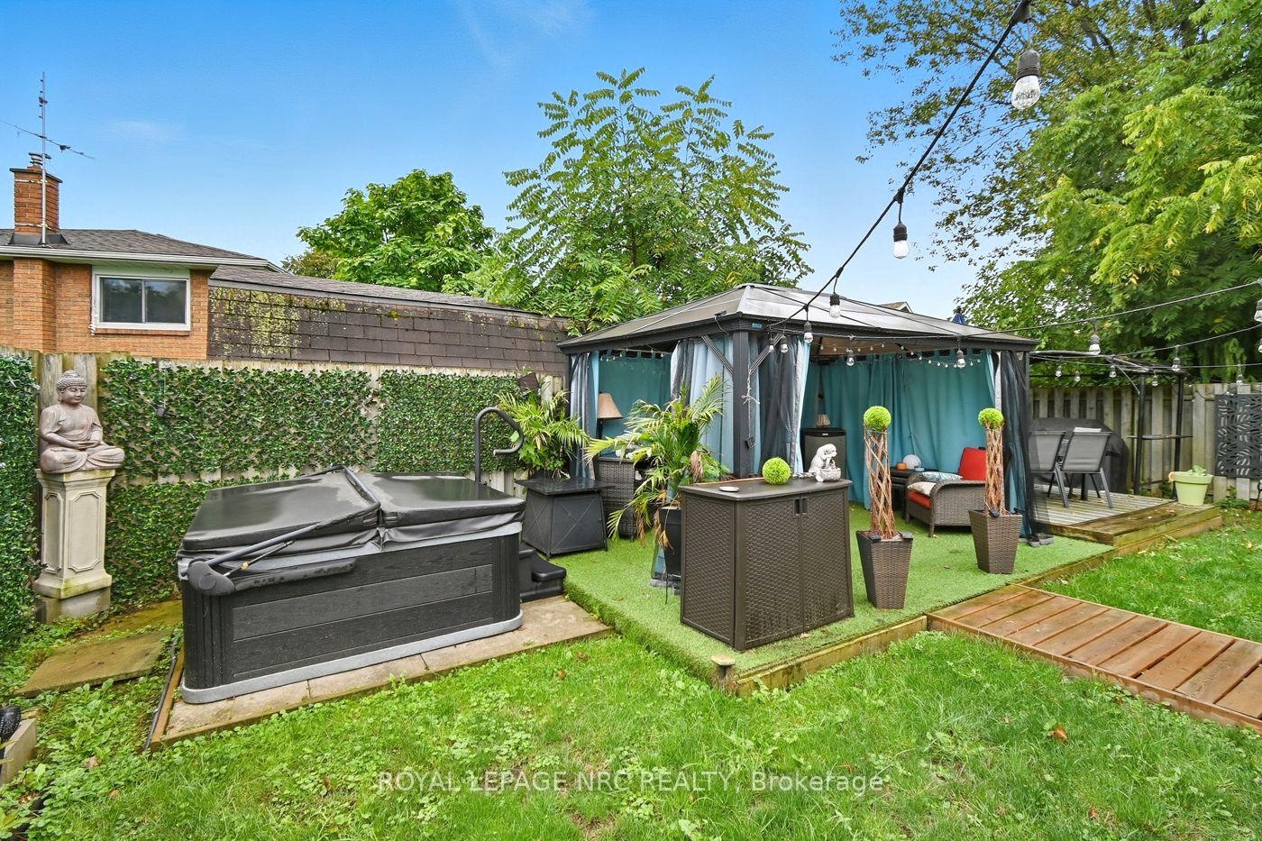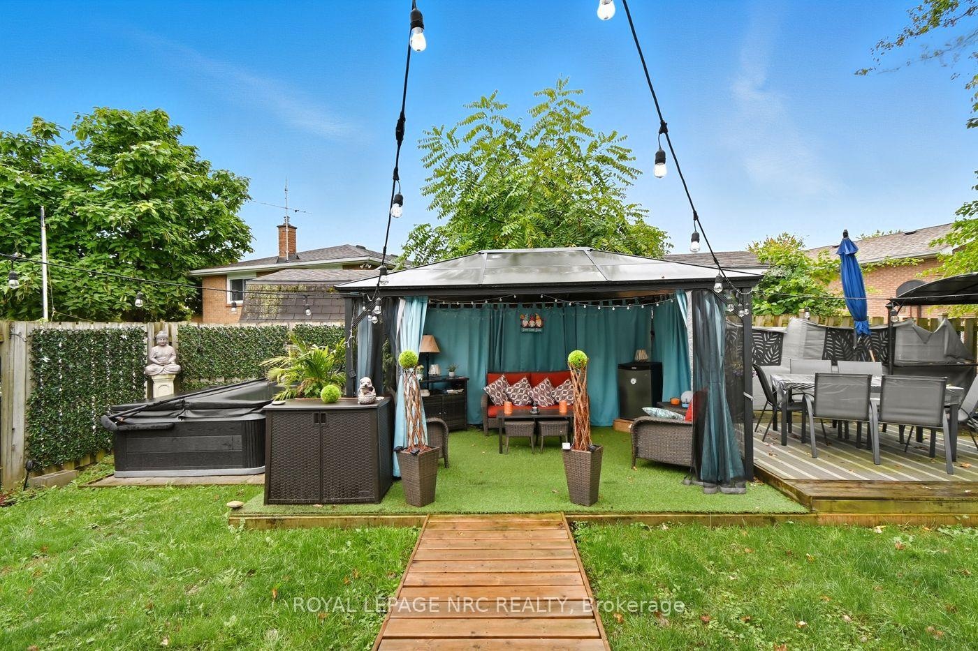 Welcome to this stylish and spacious 2-storey home, perfect for families or anyone looking for comfort and convenience. This home exudes pride of ownership.3 bedrooms up and one in the basement, 4 bathrooms, one being the master BR ensuite, a finished basement with laundry, office, storage space, bedroom as previously mentioned and extra storage under the landing.This home offers over 2200 sq. ft. of thoughtfully designed living space including a huge MF family room addition with a gas fireplace, 3pc bath and patio doors to the fenced in backyard with gazebo and hot tub (4.5 years old). The main floor also features a dining room, office/pantry, modern kitchen built in 2015 with quartz counter tops an island breakfast bar, built-in dishwasher, s/s appliances and another MF family room with a wood burning fireplace. Let's go upstairs! As we go up the stairs the back wall has this custom designed storage unit that can accommodate many items. The second floor has the large master bedroom with a private ensuite and plenty of closet space, 2 extra bedrooms that are both a good size and an updated 4pc bathroom with a skylight The double wide interlocking driveway leads you to the 1.5 attached heated garage with a garage door opener and the walkway to the front entrance of the home. This home is situated in a desirable Southend location near highway access, shopping, Costco, Niagara Square, Golf courses, schools, trails, parks, restaurants and public transit. HI-EFF FURNACE 2010, C/A 2010, HWT RENTAL 2021, WINDOWS 2014-2015, ROOF 2014, 3 BATHROOMS DONE OVER 2015, KICHEN 2015, HOT TUB 4+ YEARS.GUTTER GUARDS.Don't miss your chance to call this beautiful property home!!!