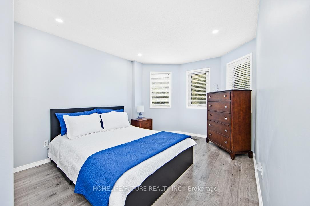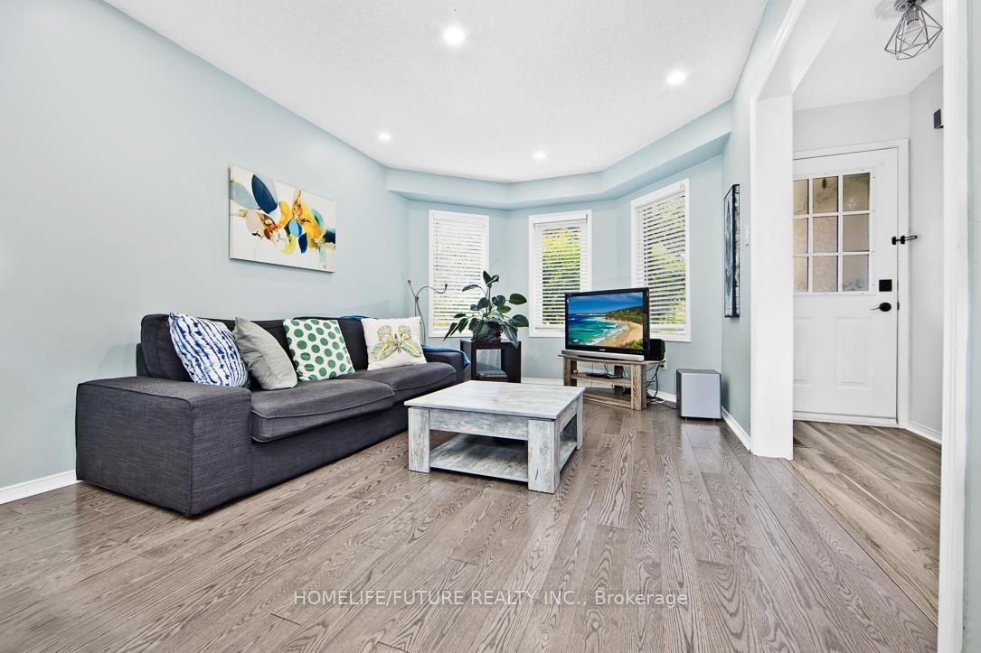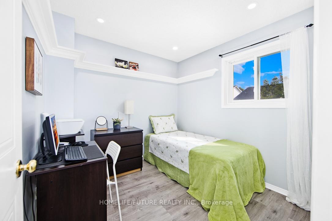 Beautiful Home Located At The End Of A Quiet, Peaceful, Child-Friendly Cul-De-Sac With No Sidewalk, Backing OntoGreen Space And Trails. Features Renovated Main And Upper Bathrooms With New Vanities, Toilets, And Laminate Flooring, Plus A Brand-New Full Bathroom In The Finished Basement. The Upgraded Kitchen Includes New Laminate Floors, New Backsplash, And New Exhaust Fan, With A Walkout To An Extra-Large Deck And Vegetable Garden Oasis. Enjoy A Bright Living Room With New Hardwood Floor, A NewHardwood Staircase With Steel Railing, And A FinishedBasement With A Rec Room, Bedroom With Closet, Custom Bar,Gas Fireplace, Laundry, And Lots Of Storage. IncludesWater Filtration System, New Chandelier, New Garage DoorOpener, New EV Charger With Separate Panel, And SideEntrance To Garage. Offers 4-Car Parking On The Drive WayAnd Is Close To Schools, Daycare, Plaza, And Just 5Minutes To Hwy 401.