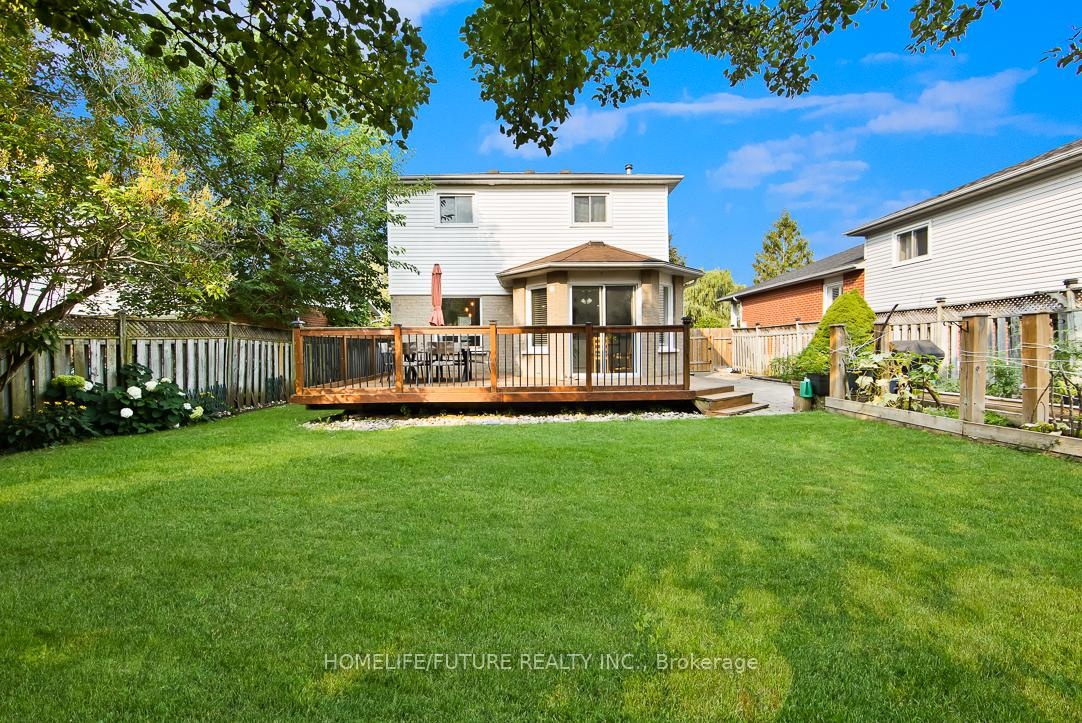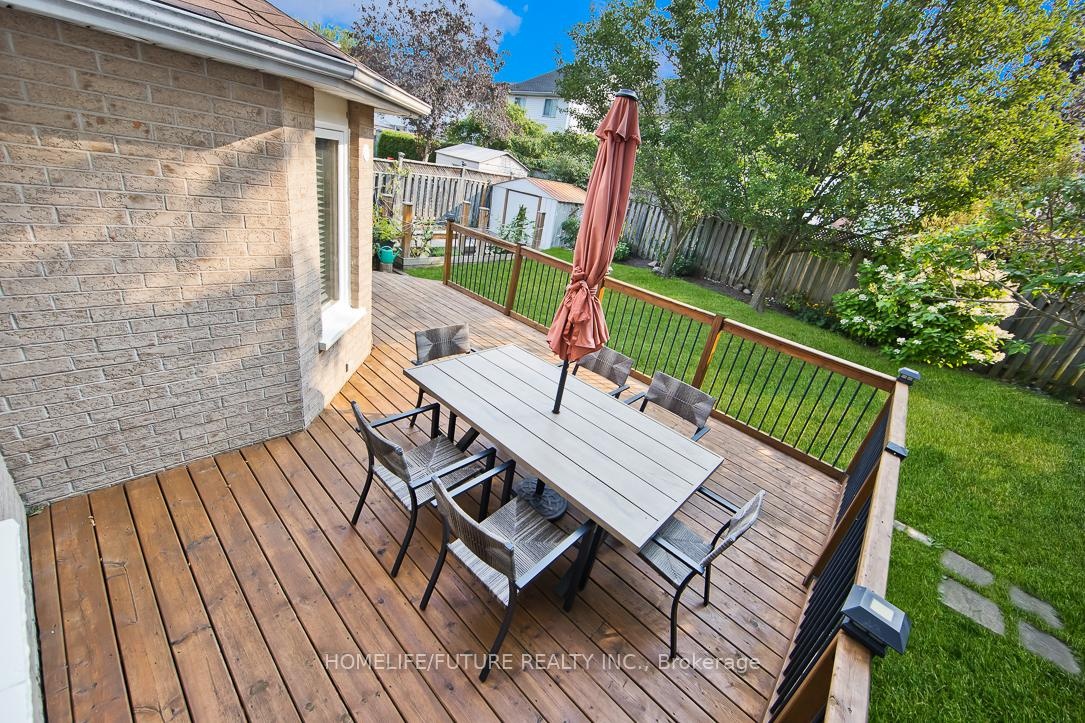 DescriptionBeautiful Home Located At The End Of A Quiet, Peaceful, Child-Friendly Cul-De-Sac With No Sidewalk, Backing OntoGreen Space And Trails. Features Renovated Main And Upper Bathrooms With New Vanities, Toilets, And Laminate Flooring, Plus A Brand-New Full Bathroom In The Finished Basement. The Upgraded Kitchen Includes New Laminate Floors, New Backsplash, And New Exhaust Fan, With A Walkout To An Extra-Large Deck And Vegetable Garden Oasis. Enjoy A Bright Living Room With New Hardwood Floor, A NewHardwood Staircase With Steel Railing, And A FinishedBasement With A Rec Room, Bedroom With Closet, Custom Bar,Gas Fireplace, Laundry, And Lots Of Storage. IncludesWater Filtration System, New Chandelier, New Garage DoorOpener, New EV Charger With Separate Panel, And SideEntrance To Garage. Offers 4-Car Parking On The Drive WayAnd Is Close To Schools, Daycare, Plaza, And Just 5Minutes To Hwy 401.Amenities- Auto Garage Door Remote
