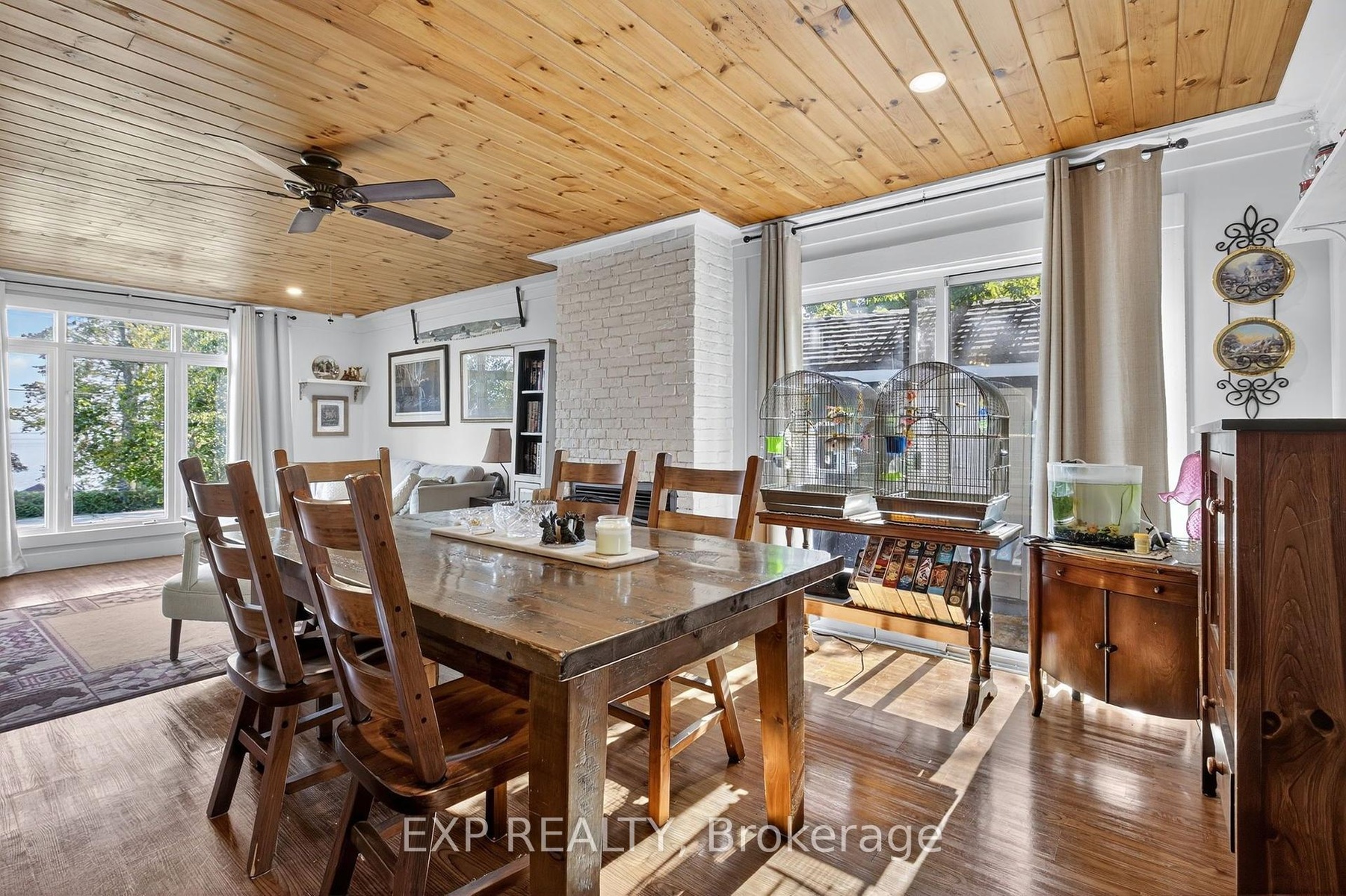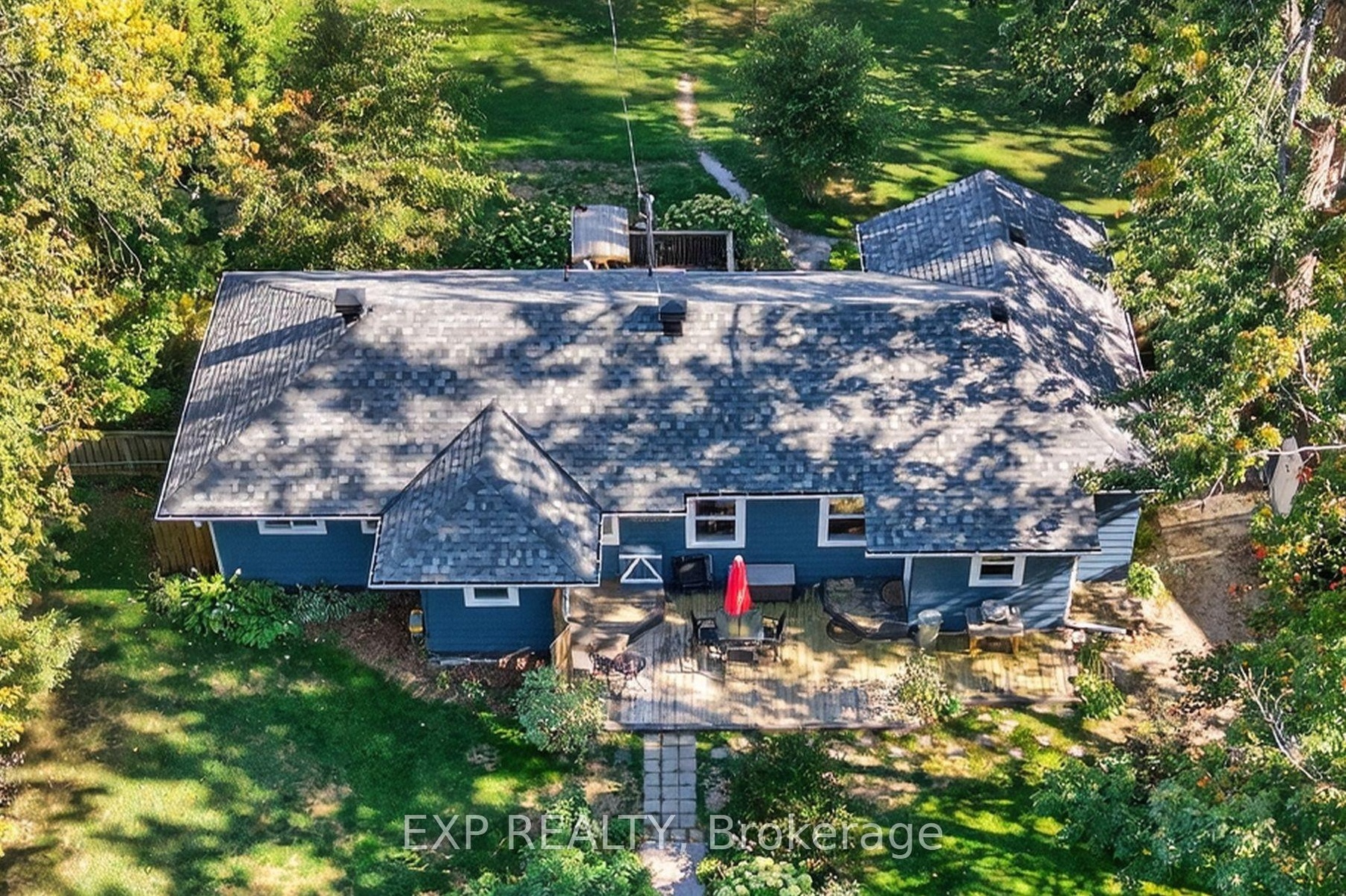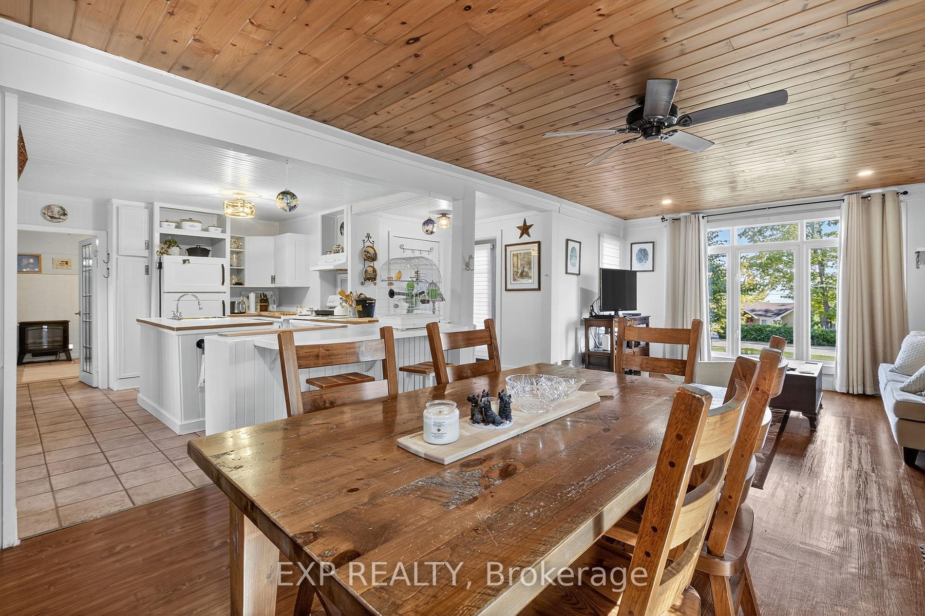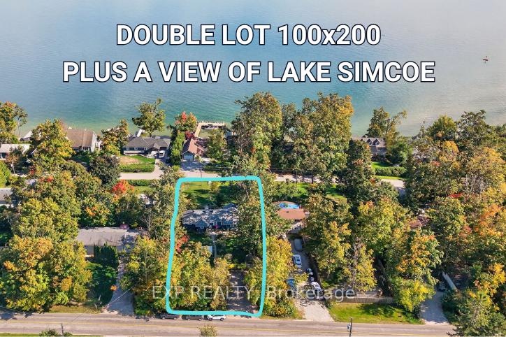 Ranch Style Bunglaw. Freshly painted exterior and brand-new roof (high impact shingles) PLUS all new eavestroughs (Sept 2025). This 69-year-old home is full of character and offers 1,324 sq. ft. of comfortable living space with views of Lake Simcoe. Set on nearly half an acre (one of the few double lots in the neighbourhood) this property gives you the convenience of double road access from both the front and back of the house. Inside, the layout feels warm and welcoming. A living room overlooking the lake, an open-concept kitchen and dining area designed for easy hosting, and two spacious and inviting bedrooms. The home is equipped with electric baseboard heating but the gas fireplace does most of the heavy lifting, a charming focal point of the home. Outdoors, the landscaped front and backyards are something out of a story book, with mature trees and full gardens. Enjoy your morning coffee on the patio, summer barbecues on the deck, and fall evenings by the fire. There's also a detached 10'x8' workshop with hydro and a bunkie/art studio, giving you space for projects, storage, or creative pursuits. The location is hard to beat! Just steps from Lake Simcoe and close to golf courses, beaches, a public park, hiking trails, and a boat launch, this property is ideal for year-round living or a peaceful cottage retreat. BONUS INCLUSIONS: Riding lawnmower, Muskoka chairs, 2 chair swings, firepit, and more, you can step right in and start enjoying the lakeside lifestyle without missing a beat.