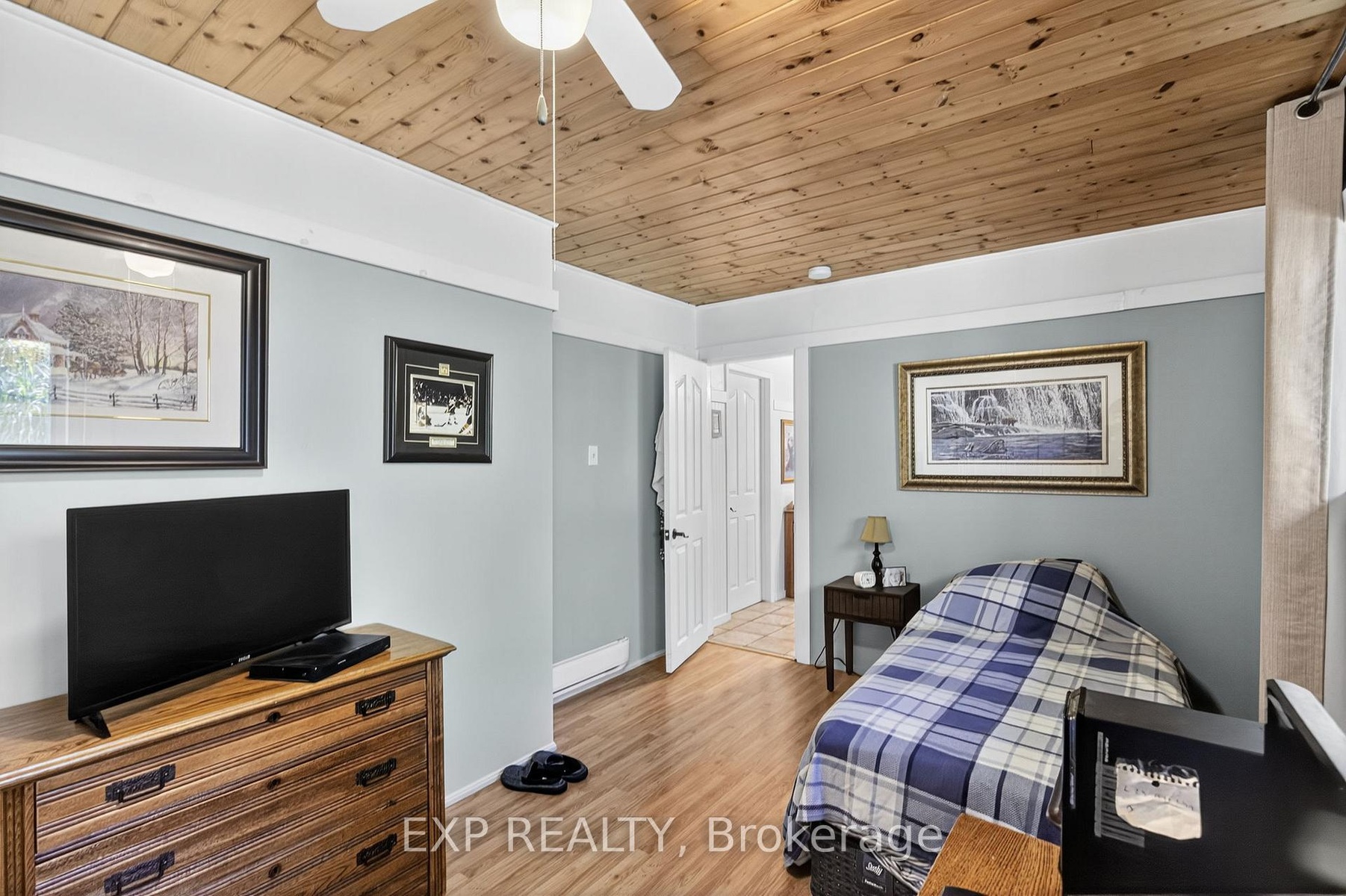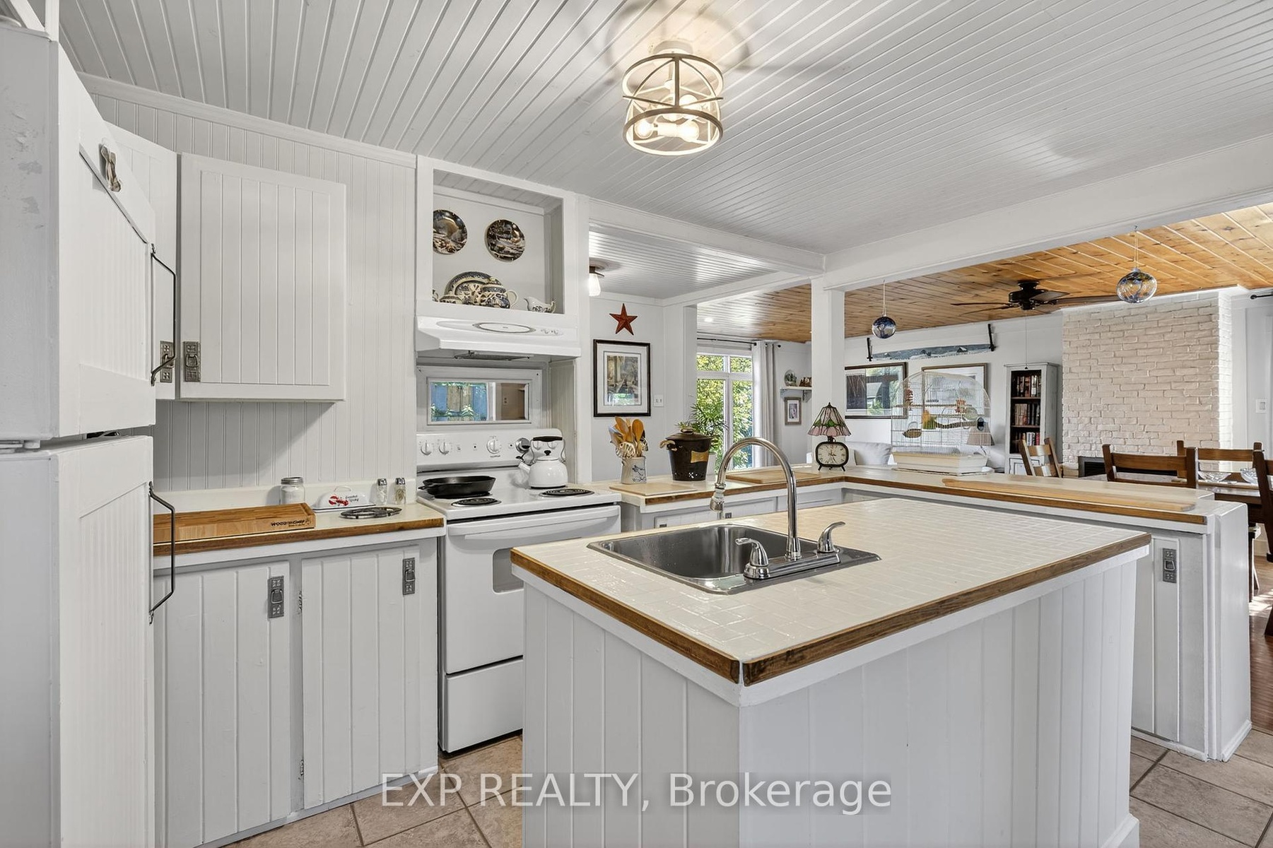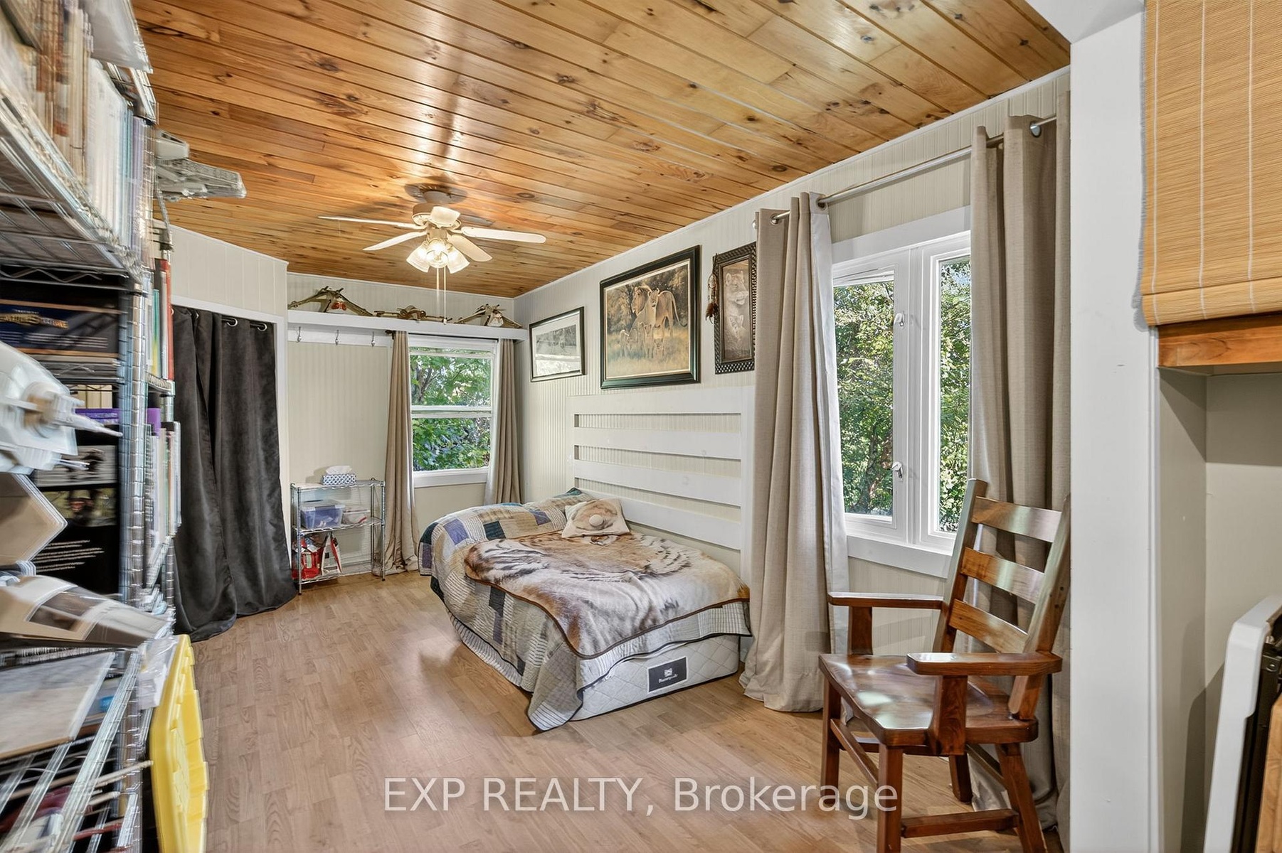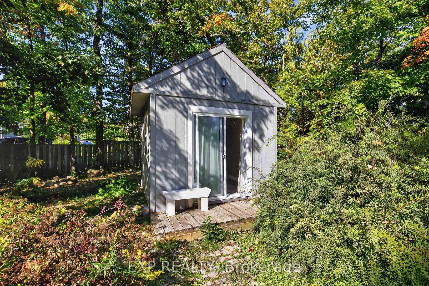 Ranch Style Bunglaw. Freshly painted exterior and brand-new roof (high impact shingles) PLUS all new eavestroughs (Sept 2025). This 69-year-old home is full of character and offers 1,324 sq. ft. of comfortable living space with views of Lake Simcoe. Set on nearly half an acre (one of the few double lots in the neighbourhood) this property gives you the convenience of double road access from both the front and back of the house. Inside, the layout feels warm and welcoming. A living room overlooking the lake, an open-concept kitchen and dining area designed for easy hosting, and two spacious and inviting bedrooms. The home is equipped with electric baseboard heating but the gas fireplace does most of the heavy lifting, a charming focal point of the home. Outdoors, the landscaped front and backyards are something out of a story book, with mature trees and full gardens. Enjoy your morning coffee on the patio, summer barbecues on the deck, and fall evenings by the fire. There's also a detached 10'x8' workshop with hydro and a bunkie/art studio, giving you space for projects, storage, or creative pursuits. The location is hard to beat! Just steps from Lake Simcoe and close to golf courses, beaches, a public park, hiking trails, and a boat launch, this property is ideal for year-round living or a peaceful cottage retreat. BONUS INCLUSIONS: Riding lawnmower, Muskoka chairs, 2 chair swings, firepit, and more, you can step right in and start enjoying the lakeside lifestyle without missing a beat.