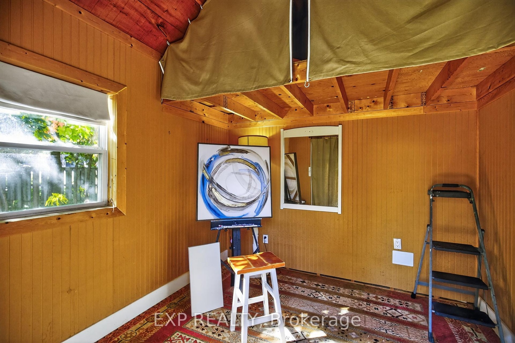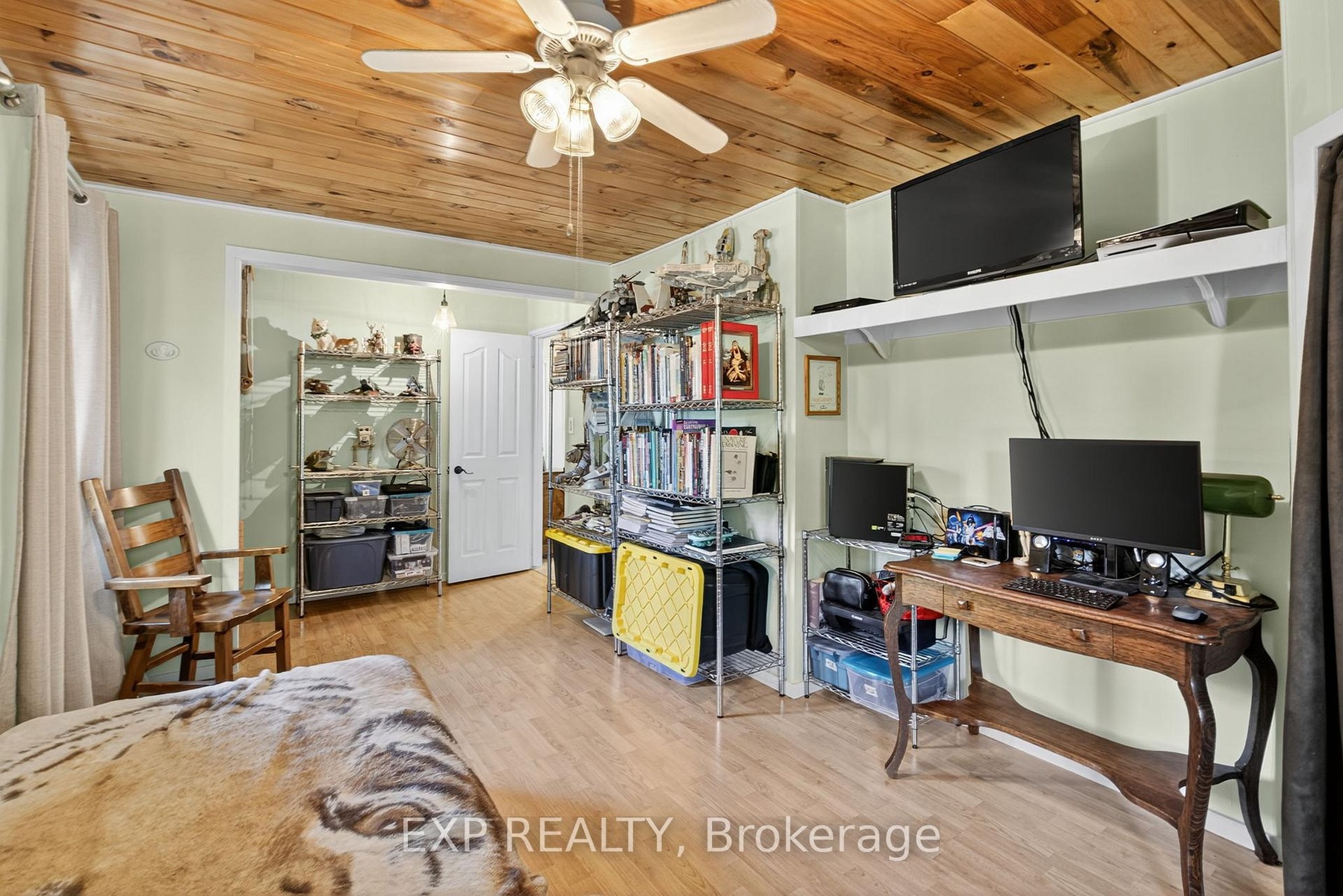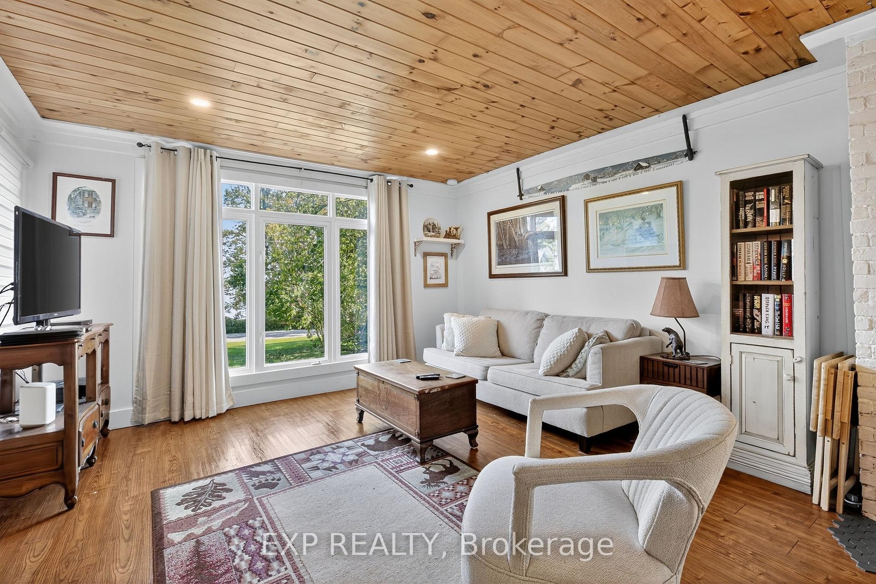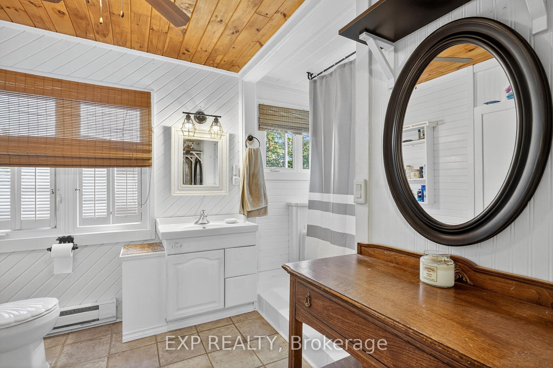 Ranch Style Bunglaw. Freshly painted exterior and brand-new roof (high impact shingles) PLUS all new eavestroughs (Sept 2025). This 69-year-old home is full of character and offers 1,324 sq. ft. of comfortable living space with views of Lake Simcoe. Set on nearly half an acre (one of the few double lots in the neighbourhood) this property gives you the convenience of double road access from both the front and back of the house. Inside, the layout feels warm and welcoming. A living room overlooking the lake, an open-concept kitchen and dining area designed for easy hosting, and two spacious and inviting bedrooms. The home is equipped with electric baseboard heating but the gas fireplace does most of the heavy lifting, a charming focal point of the home. Outdoors, the landscaped front and backyards are something out of a story book, with mature trees and full gardens. Enjoy your morning coffee on the patio, summer barbecues on the deck, and fall evenings by the fire. There's also a detached 10'x8' workshop with hydro and a bunkie/art studio, giving you space for projects, storage, or creative pursuits. The location is hard to beat! Just steps from Lake Simcoe and close to golf courses, beaches, a public park, hiking trails, and a boat launch, this property is ideal for year-round living or a peaceful cottage retreat. BONUS INCLUSIONS: Riding lawnmower, Muskoka chairs, 2 chair swings, firepit, and more, you can step right in and start enjoying the lakeside lifestyle without missing a beat.