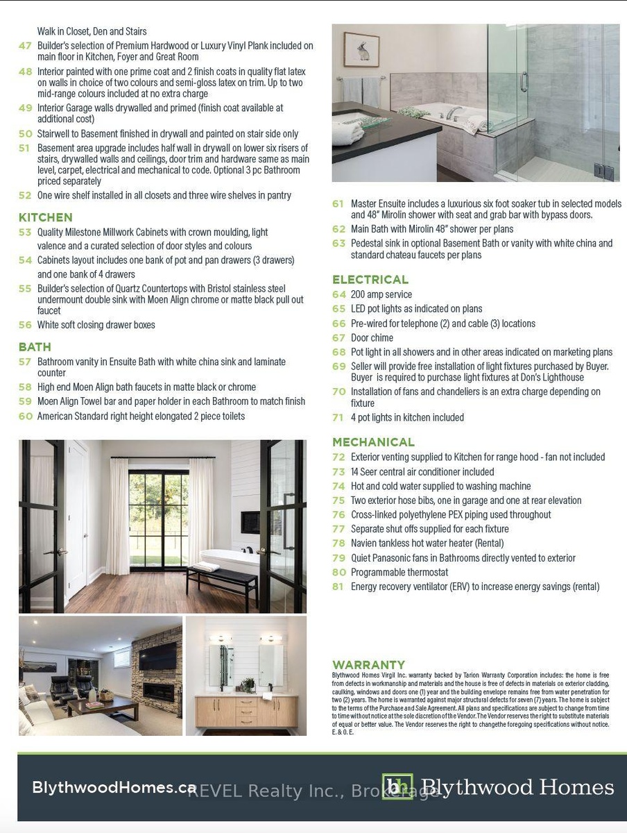 UNDER CONSTRUCTION. Welcome to Tanner Woods, Fonthill's newest community, featuring this custom bungalow by Niagara's award-winning Blythwood Homes. Scheduled for completion at the end of November, the Balsam 33 model offers 1,380 sq. ft. of thoughtfully designed living space with 3 bedrooms and 3 bathrooms. Step inside to soaring vaulted ceilings and bright, open-concept living areas perfect for entertaining or relaxing. The kitchen showcases a large island with quartz countertops, breakfast bar, and dining nook, while garden doors from the great room lead to your backyard. The primary suite includes a 4-piece ensuite and double walk-in closets. The full-height finished basement, with oversized windows and 945 sq. ft. features a recreation room, additional bedroom, and 3-piece bath. Exterior highlights include professional landscaping beds with mulch, a fully sodded lot, poured concrete front walkway, and a double-wide gravel driveway leading to a 2-car garage. Built with efficiency in mind, the home includes a high-efficiency multi-stage furnace, 200-amp service, and a rental tankless hot water system. Situated at the end of Tanner Drive and Stickles Street, this location offers walking access to the Steve Bauer Trail, nearby shopping, schools, and amenities, plus quick connections to the QEW, Toronto, and Niagara Falls. Enjoy the regions finest wineries, golf courses, and outdoor recreation.Theres still time for you to personalize select finishes and features make this home truly your own!