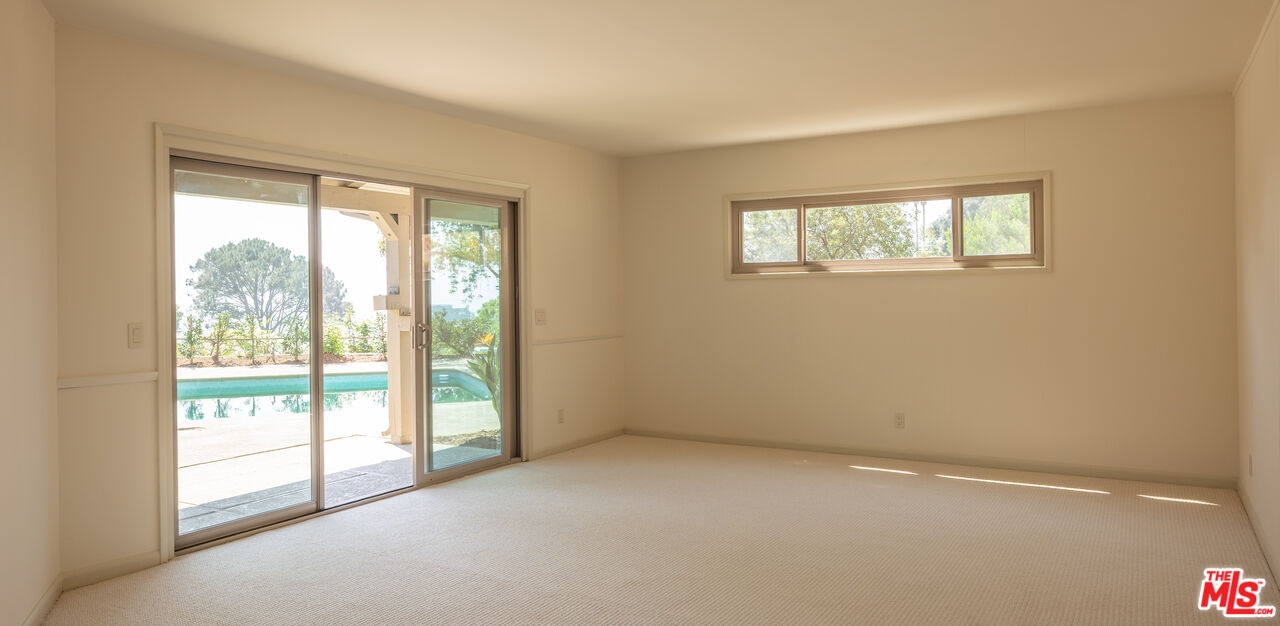 Built the year Elvis Presley bought Graceland this could be your private haven with lots of space, a view over the City of Angels and style all wrapped into one. On the biggest lot at the end of one of the prime streets in the hills while only two minutes from Sunset, the property is private but with a head on view, an extra-large pool, a pickle ball court, mature trees and parking for many. The house opens to a great room open to two stories with a library above, connecting to a kitchen with breakfast area, two bedrooms and bath upstairs and a bar with game room below. Primary Suite with pool access, dressing room and bath, as well as two additional bedrooms complete this jewel. It brims with architectural details like rock walls, built ins, wood floors and more.