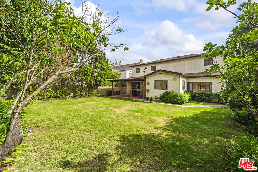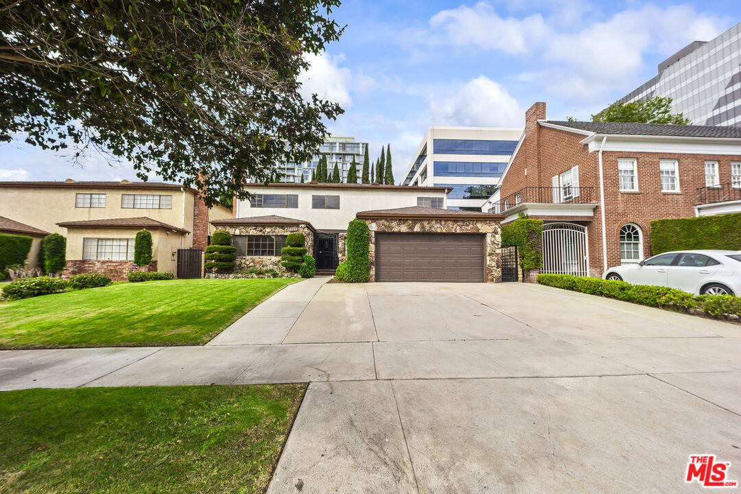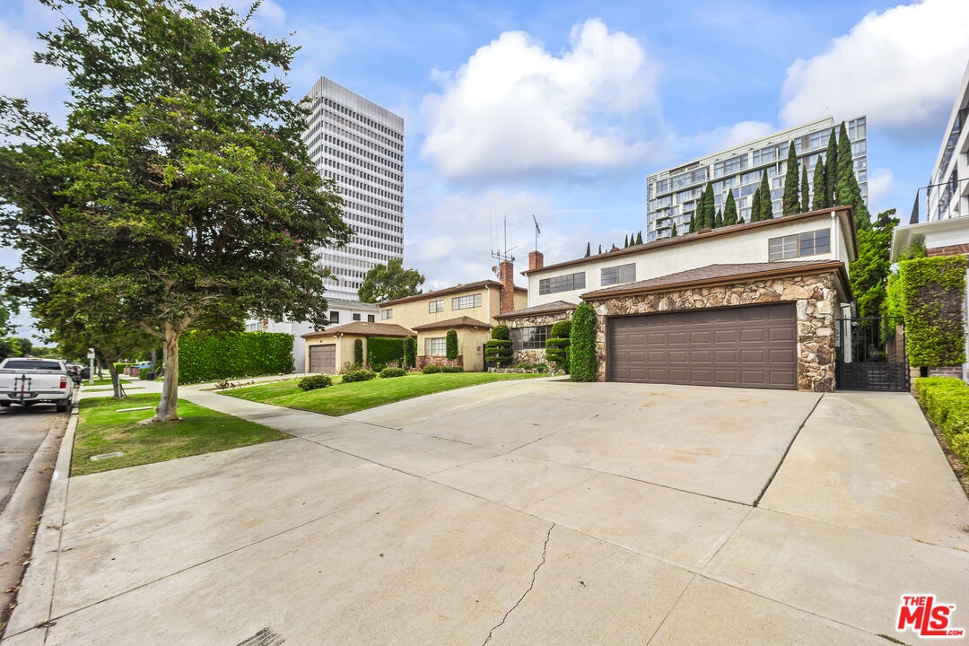 Welcome to this spacious 4-bedroom, 3-bathroom lease offering 3,099 sq ft of comfortable living in Cathay Circle, one of Los Angeles' most coveted enclaves just moments from Beverly Hills and West Hollywood. Enter through a secure gated entry and step into a light-filled residence designed for both entertaining and everyday living. To the right, a warm family/den room with a built-in wet bar invites gatherings, while to the left, a generous living room features a fireplace and flows seamlessly into the formal dining area. The expansive kitchen, with white cabinetry, quartz countertops, and recent appliances (double oven, gas cooktop, dishwasher, built-in microwave), offers ample workspace and includes a sunny breakfast area that opens directly to the covered patio and backyard. A bedroom with adjacent shower bath on this level is ideal for guests, office, or in-laws. Direct access from the two-car garage to the interior provides convenience to the laundry and main living areas. Upstairs, discover three spacious bedrooms and three bathrooms. The primary suite is oversized, with wide windows that fill the room with natural light, a walk-in closet, and an en-suite bath featuring a vanity, a soaking tub, and a separate shower. The two secondary bedrooms are bright and versatile, with generous closet space and new flooring throughout. One includes mirrored closets and a modern ceiling fan, while the other provides flexibility for family, guests, or a home office. Two additional bathrooms serve this level: one full bathroom with a dual-sink vanity and tub/shower combo, the other one is a sauna room with a shower and access to a private cedar sauna, offering a spa-like retreat within the home but no toilet or sink. The backyard is an entertainer's delight with a large, covered patio and a generous grassy lawn framed by mature landscaping perfect for gatherings, play, or relaxation. Nestled in the prestigious Cathay Circle enclave, this home offers the rare balance of privacy and centrality. Minutes to Beverly Hills, Cedars-Sinai, the Beverly Center, Robertson Blvd., Farmer's Market, The Grove the best dining, shopping, and nightlife in West Hollywood.