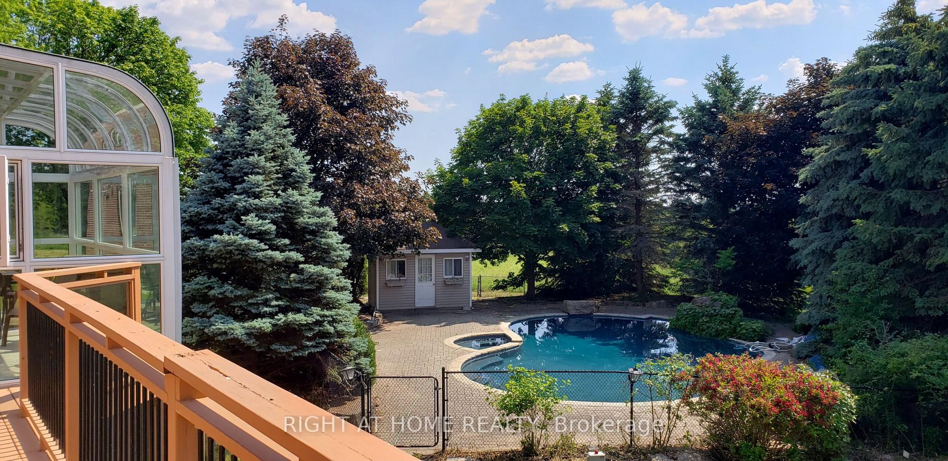 Rare-find Gem- One of A Kind Bungalow with Stone Front. 2 Arce Scenery Land + Approx. 9000 sq.ft. Living Space! Hiding In Quiet Countryside but Close to Vivid City Living. 13' High Cathedral Ceiling in Living Room. Abundant Natural Light via High Windows & Skylight. Four (4) Huge En-suite Bedrooms, Plus Library and Other 3 Bedrooms. Open Concept Kitchen w/ Large Center Island & Granite Countertop. Marble and Hardwood Floor throughout Entire House. Walk-out Basement to Backyard. Inground Heated Pool and Spa Surrounded by Mature Landscaping. Four (4) Car Garage & Circular Driveway. Huge Sun-filled Glass-enclosed Sunroom and Deck Overviewing Beautiful Backyard. 3 Sets of Furnace and Central Air Conditioning. Back-Up Power Supply--Generator for Emergency Electricity. Few minutes to Hwy 404. Close To Shopping Mall, Grocery, Restaurants and Go Station.