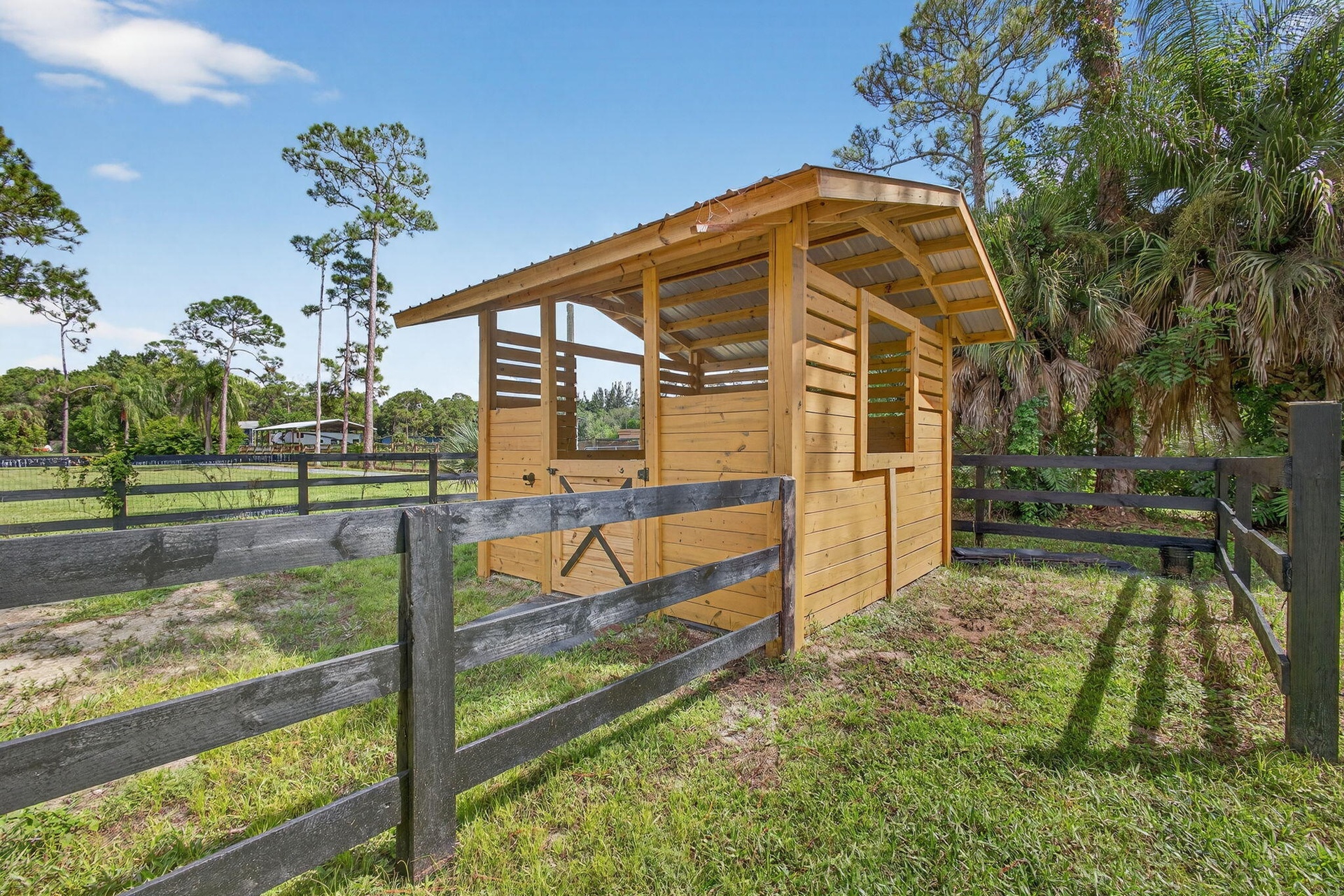 Available Now - Full Equestrian Facility for rent seasonal or yearly. Located in Loxahatchee Groves - about 10 minutes to Wellington International (WEC) & close to White Fences. Property Highlights are9-stall barn (12x14 matted stalls with direct runout each) 1 stall house with individual paddock - good for stallion 6 large paddocks + Collective field lots of shade,Round pen, 100x200 irrigated outdoor arena, private large A/C tack room, laundry room & bathroom, Double wash racks, Feed room, Manure pit, Trailer parking, Gator + drag available. Housing Options:1,500 sq. ft. furnished wood cottage: 4 bedrooms, 2 bathrooms, full kitchen, laundry, screened patio, chimney, WiFi included. 2 optional RV hookups