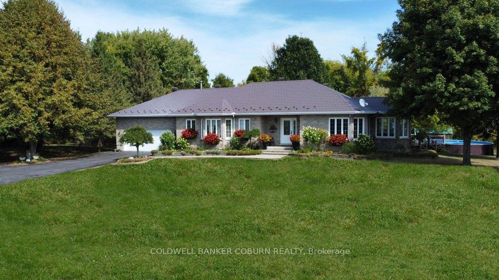 DescriptionWelcome to 11229 Lakeshore Drive, where the beauty of the St. Lawrence River meets the charm of small-town living. This exceptional location offers pastoral views and easy access to boating, fishing, and waterfront recreation. Just minutes away, the Two Creeks Forest Conservation Area provides year-round trails for hiking, skiing, and outdoor enjoyment. The nearby communities of Iroquois and Morrisburg add convenience with marinas, shopping, dining, schools, and cultural attractions. Combining tranquil rural surroundings with modern amenities close at hand, this property offers a rare lifestyle perfect as a full-time residence or a weekend retreat.The home itself is a modern all-stone bungalow capped with Wakefield Bridge steel shingles for long-lasting durability. Elegant interior finishes include solid oak trim, solid oak doors, and four custom doors featuring leaded architectural glass. Light fills the living spaces through two floor-to-ceiling bay windows. The open-concept kitchen, breakfast area, and family room with gas fireplace form the heart of the home, with pocket doors connecting to a media room for flexible living. A main floor laundry room offers ample storage and convenience.The fully finished basement adds even more versatility, featuring a family room with a second gas fireplace, office, bathroom, additional living space, and abundant storage. A dedicated utility room houses HVAC and water systems. Outdoors, a large wraparound TREX deck extends to an above-ground pool, ideal for entertaining or relaxing. Additional features include a garden shed, a large permanent generator for peace of mind, and landscaped surroundings that enhance the propertys appeal. For your dog invisible fencing has been installed. 11229 Lakeshore Drive is more than just a home its a lifestyle defined by natural beauty, thoughtful design, and community connection. Please take the virtual tour and check out the additional photos and floorplans.Amenities- Auto Garage Door Remote