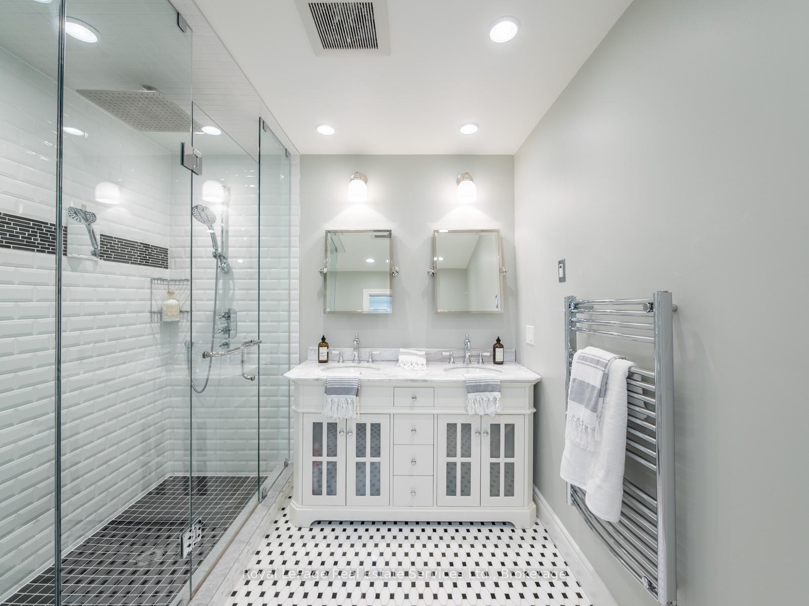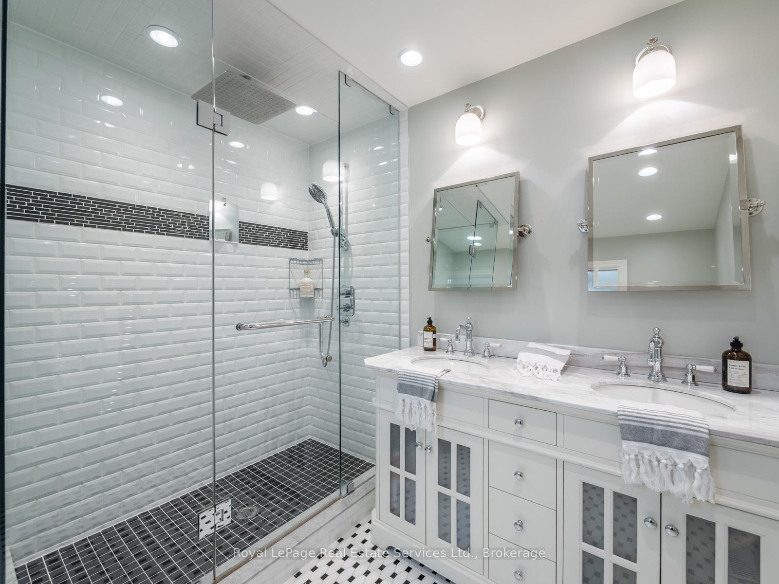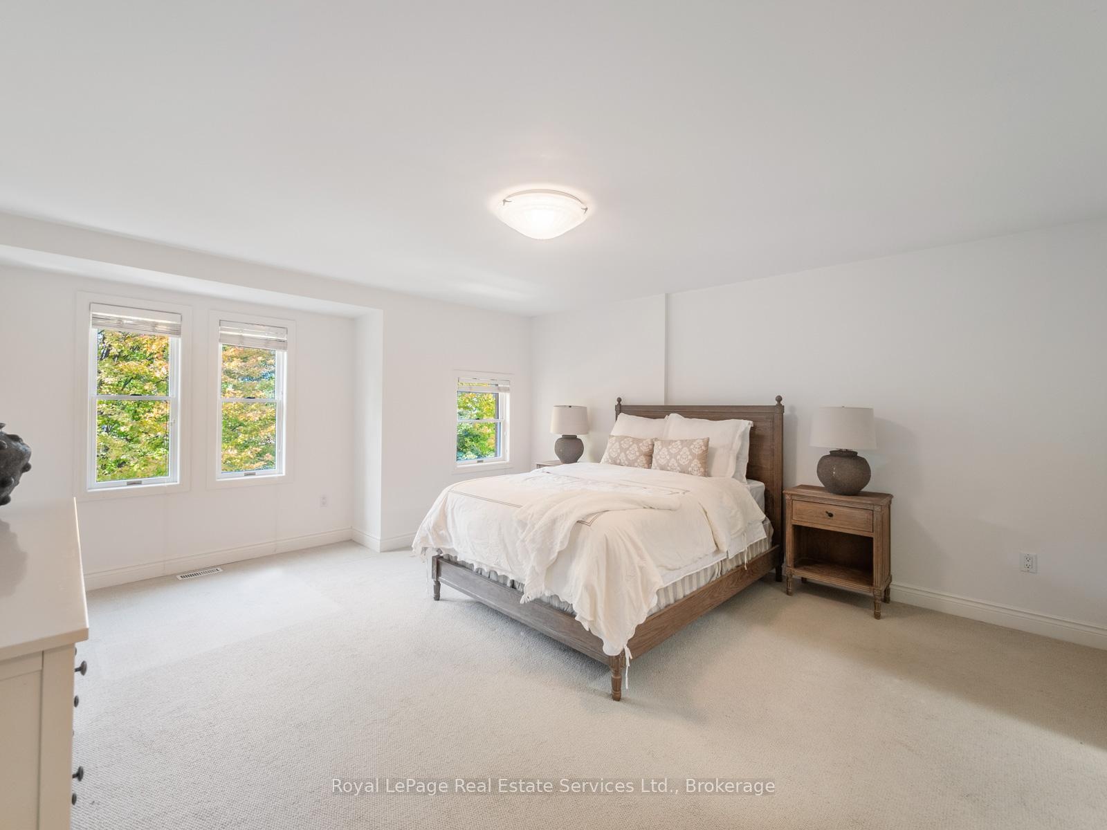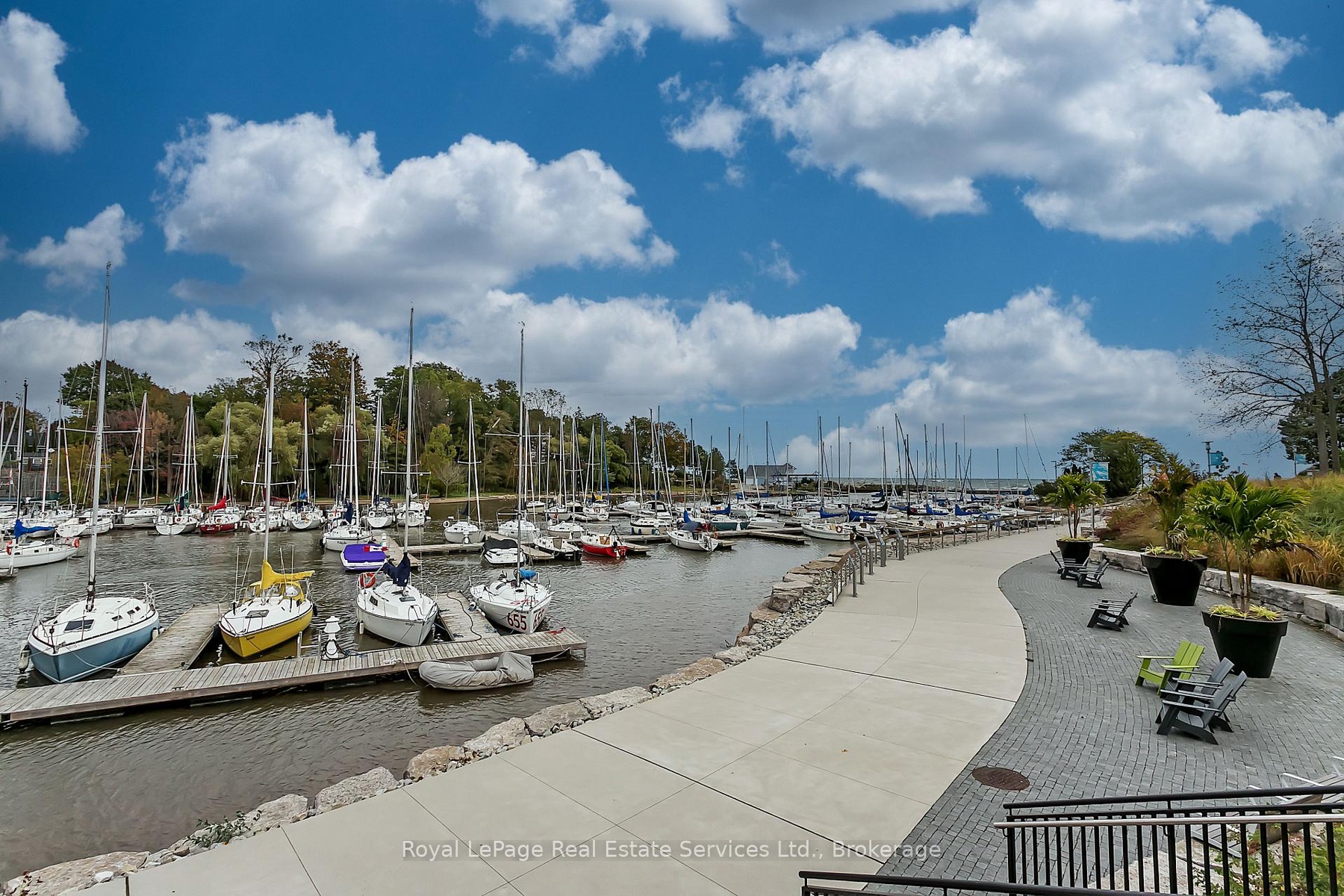 Nestled in Oakville's coveted West Harbour neighbourhood, this beautifully maintained townhome offers over 2,300 total sqft of elegant living space. Freshly painted throughout, the home features 3 spacious bedrooms, 2+2 baths, parking for up to 4 vehicles but you'll be walking to it all from this stellar location! The main floor boasts a gracious family room with a cozy gas fireplace and custom built-ins and walks out to the back deck overlooking the gardens. Expansive eat-in kitchen with a bright breakfast area and a separate dining room complete the main level. Upstairs, the primary suite impresses with a large walk-in closet and a luxurious 4-piece ensuite featuring heated floors, double sink vanity, heated towel bar, and a glass-enclosed shower. Enjoy family movie night in the lower level recreation room. West harbour is where you can start your day at one of the many nearby coffee shops and then stroll along the lake all before the work day begins! In the evening, grab dinner at your favourite local spot - no car required! With its unmatched walkability, historic charm, tree-lined streets, and vibrant village atmosphere, West Harbour isn't just a place to live, it's a place to love. Welcome Home.