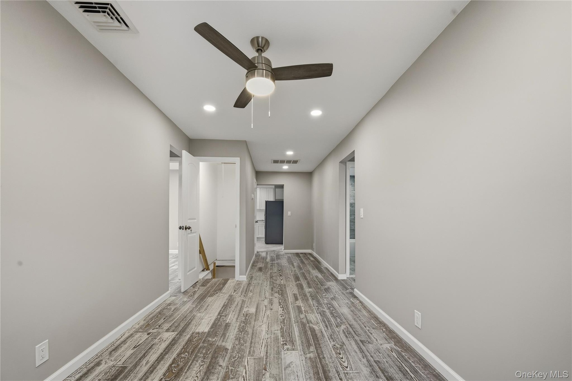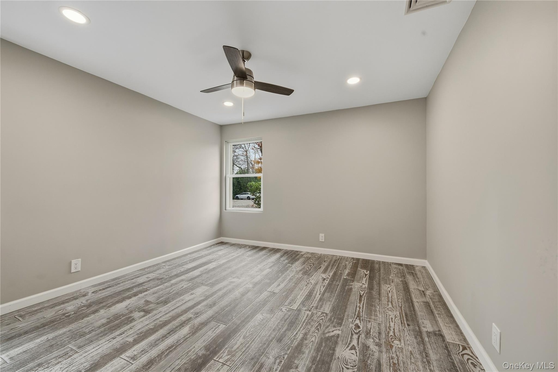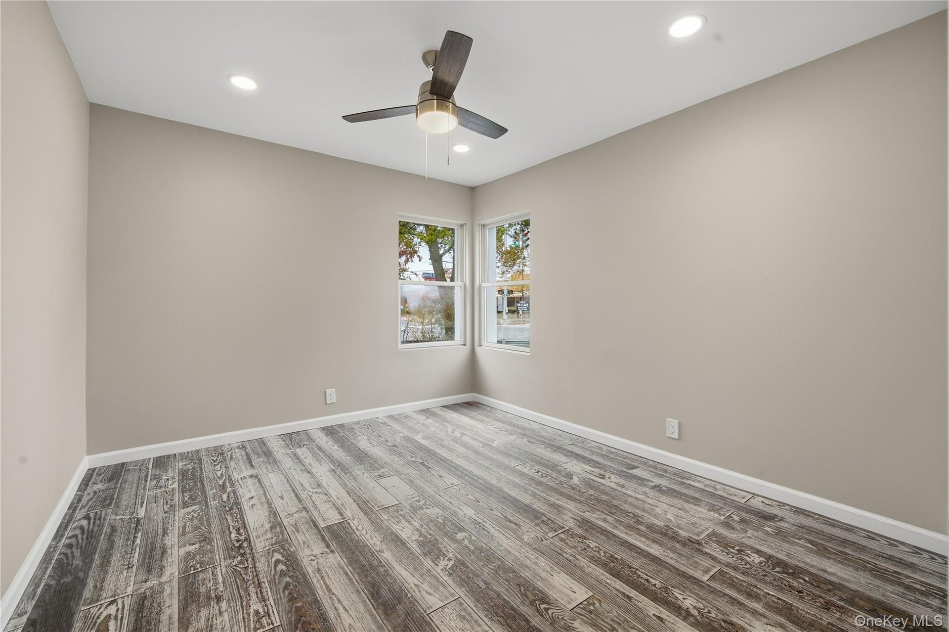 - Unfurnished room with wood finished floors, recessed lighting, and ceiling fan