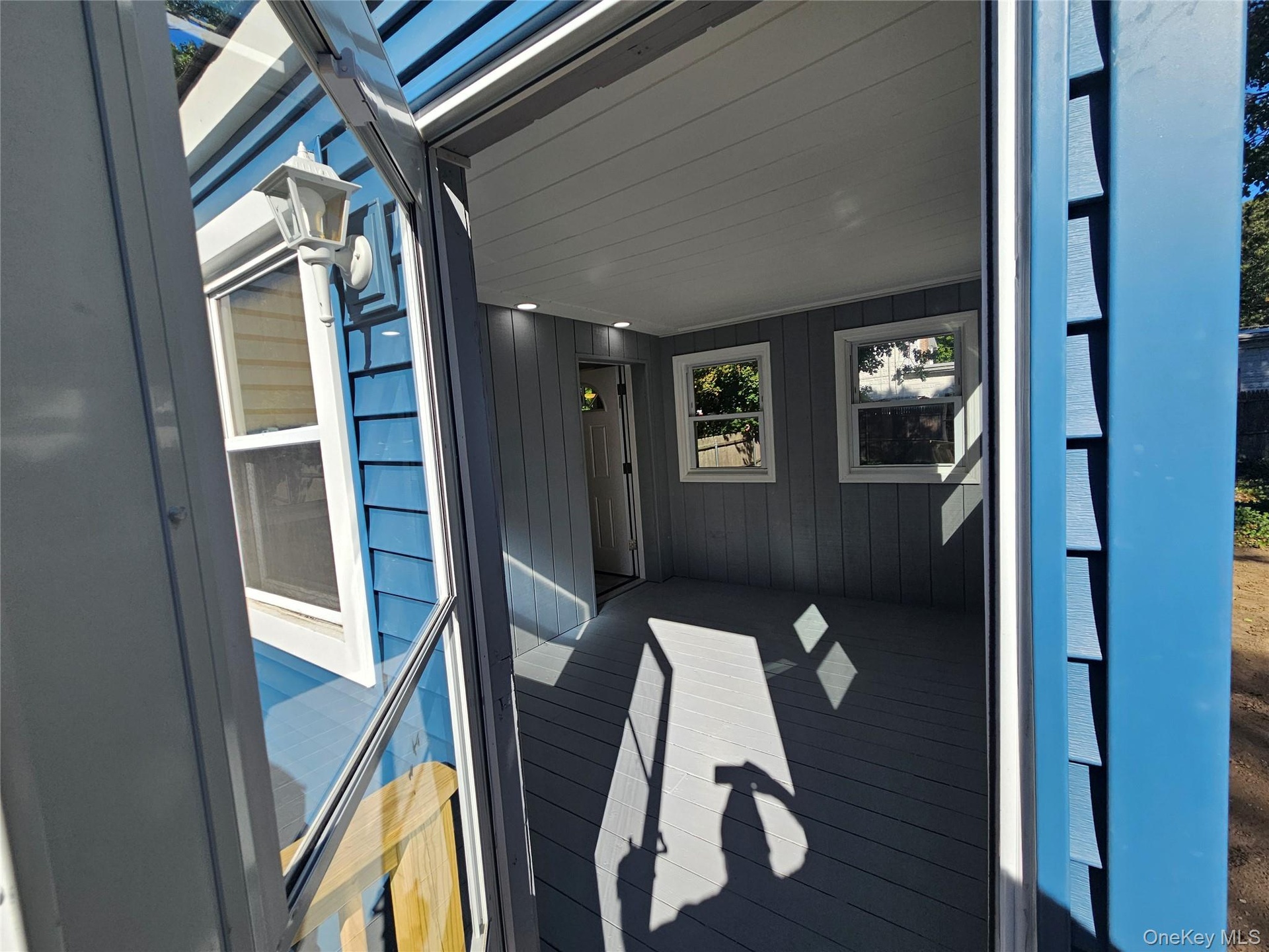 - View of home's exterior featuring chimney, new vinyl siding and cultured stone.