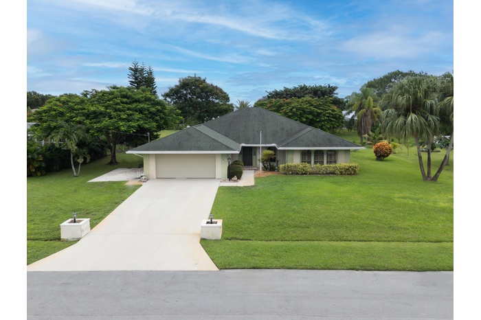 WELCOME TO SANDPIPER BAY! EXPERIENCE THE BEAUTY OF FLORIDA WITH THIS SPACIOUS & OPEN 3 BEDROOMS, 2 FULL BATHROOMS, POOL & 2 CAR GARAGE ON .43 OF AN ACRE ON A PRIVATE SETTING. LARGE EAT-IN KITCHEN WITH AMPLE CABINETRY, HUGE SNACKCOUNTER AND NEWER APPLIANCES, ALL OVERLOOKING FAMILY ROOM WITH LARGE DOORWALL ONTO POOL/ PATIO AREA TO MAXIMIZE OUTDOOR LIVING. WOW! MAIN BEDROOM SUITE AND BATHROOM WITH DOORWALL TO POOL/PATIO, SPACIOUS GUEST BEDROOMS. GUEST BATHROOM HAS ACCESS TO POOL/PATIO AREA. THIS LOVELY HOME FEATURES A WHOLE HOUSE GENERATOR(GAS) IN 2016 & CENTRAL VACUUM. ROOF 2018. A/C 2023. LOCATED NEAR HOSPITALS, SHOPPING RESTAURANTS, GOLFING AND HISTORIC DOWNTOWN STUART. PROPERTY CARD INDICATES 2339 UNDER AIR. POOL HAS LINE LEAK. GARAGE FRIG AND GARAGE FREEZER TO CONVEY.